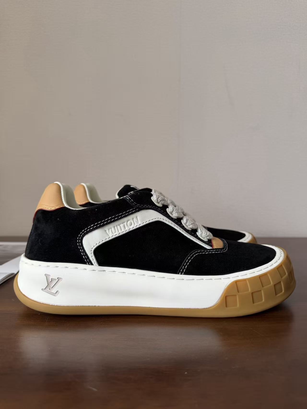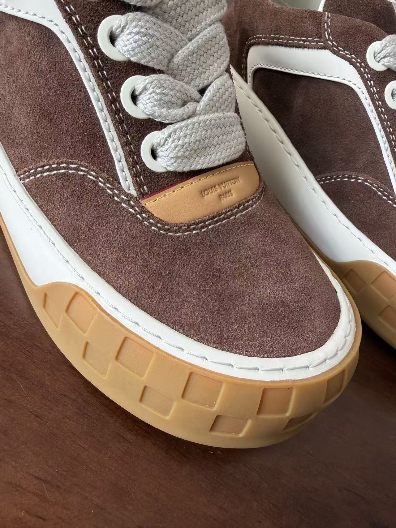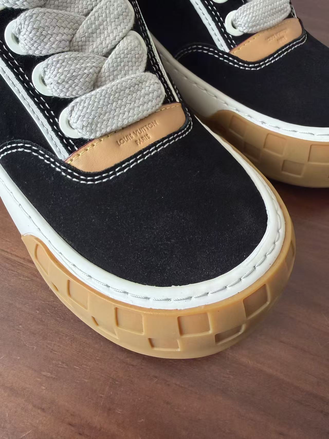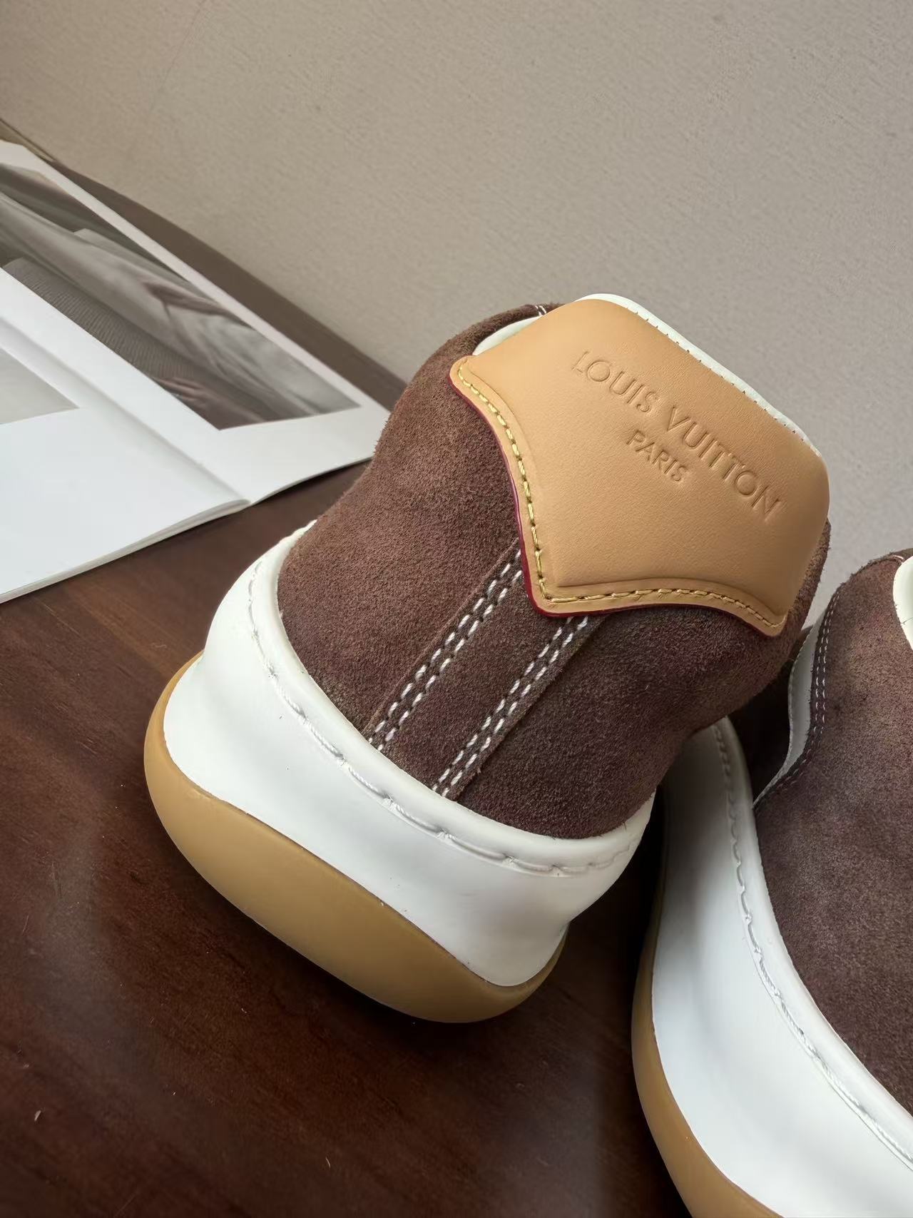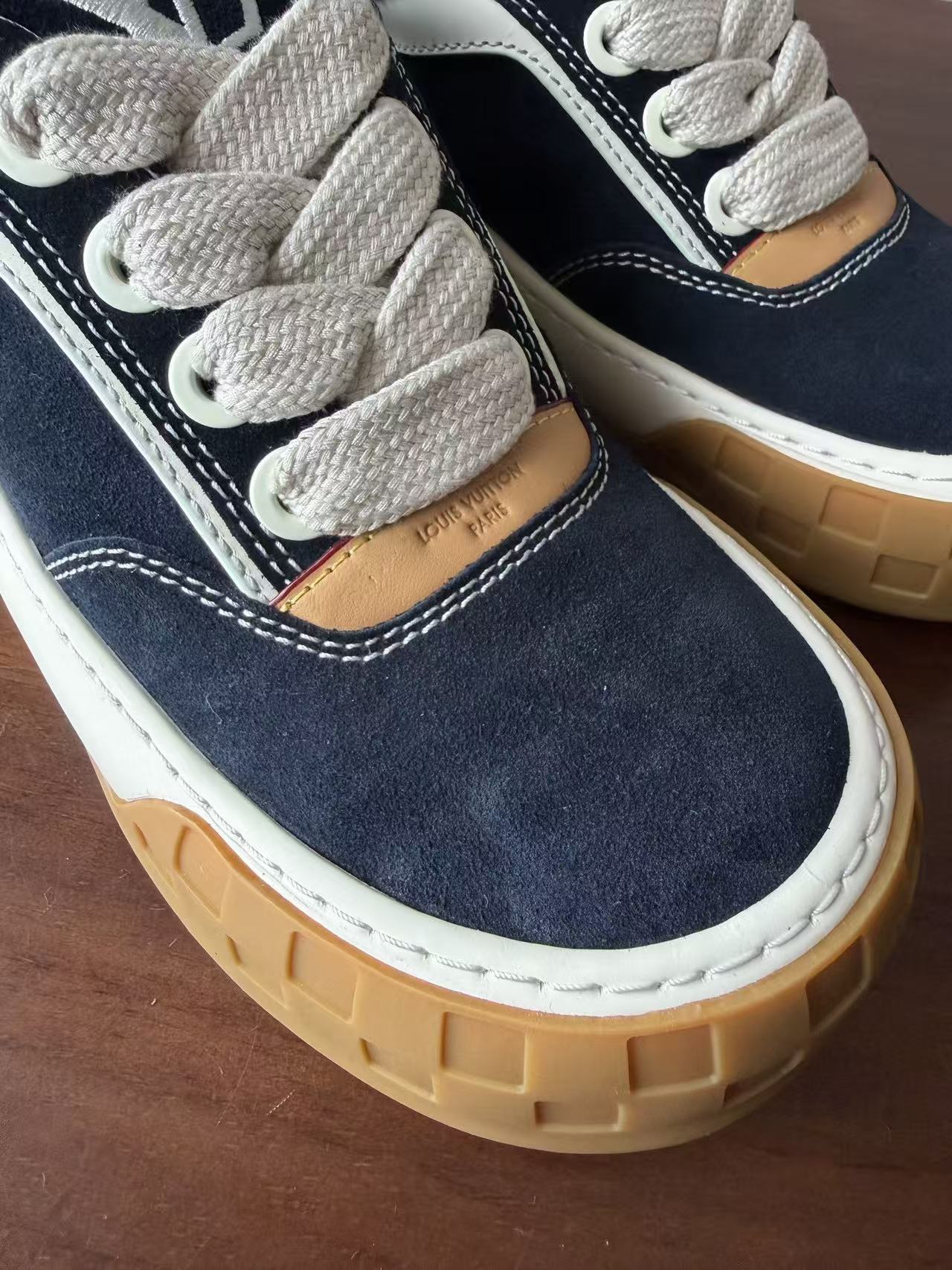 Damier 與 Monogram 元素融合: 於鞋頭與外底處精準佈置品牌標誌,讓經典設計語彙以更現代、街頭的形式呈現。