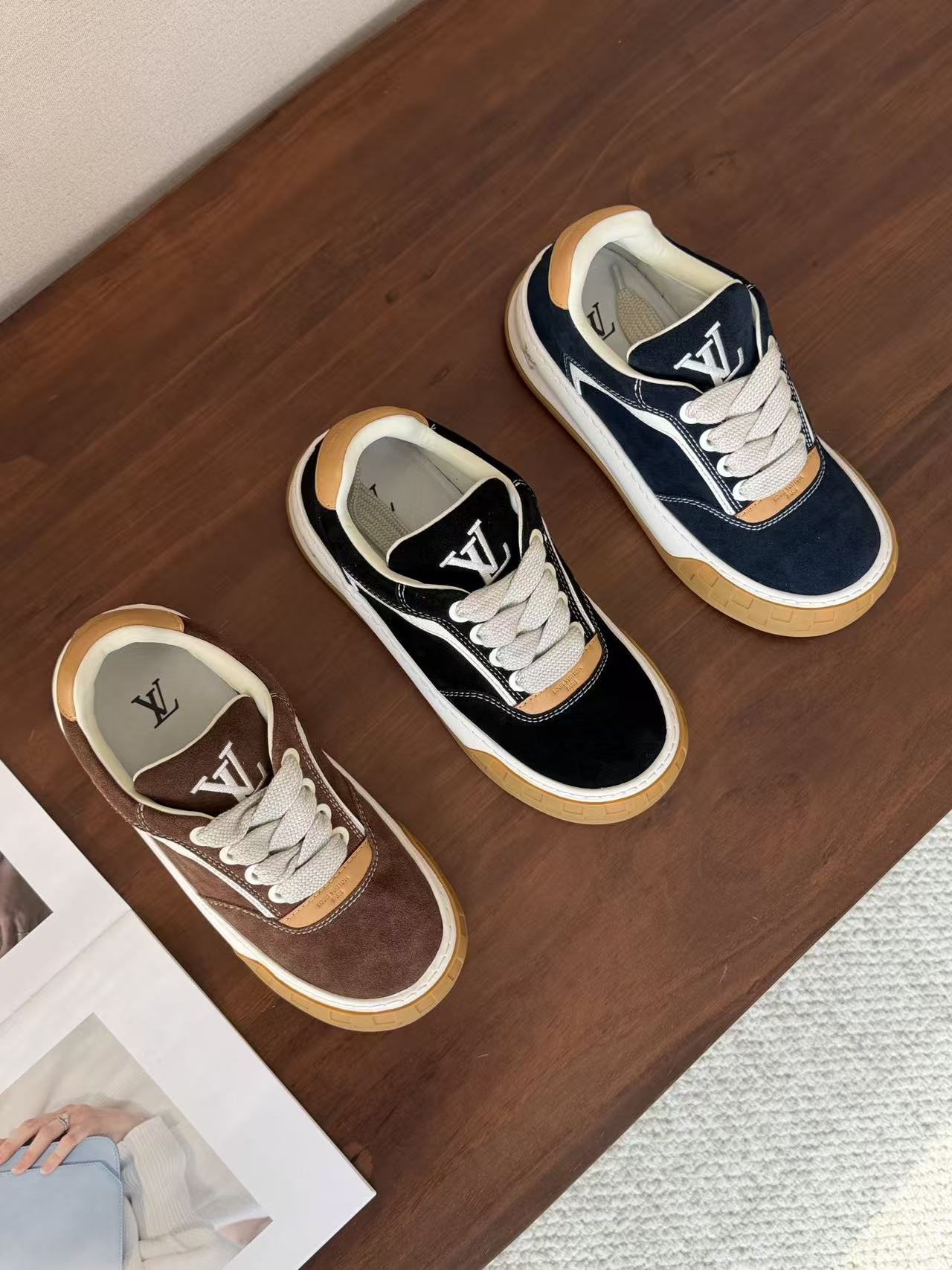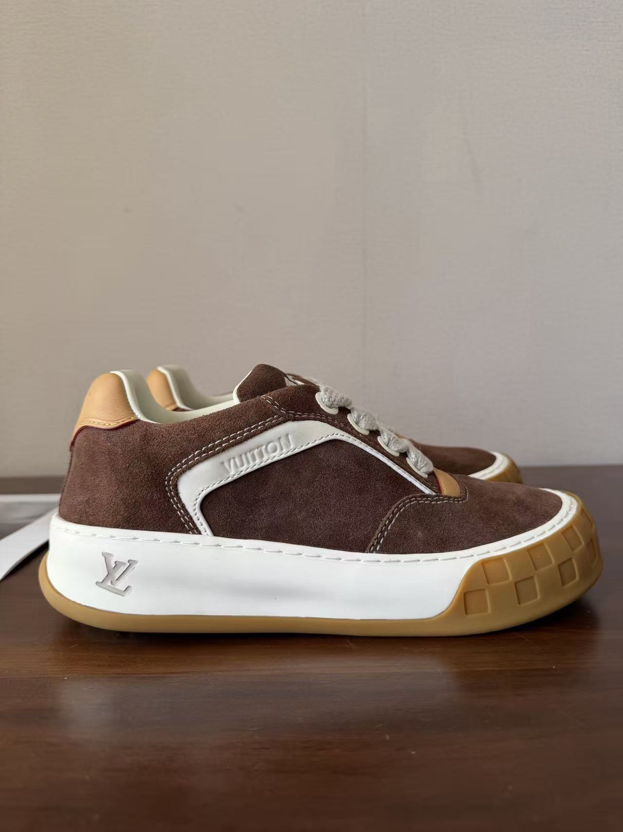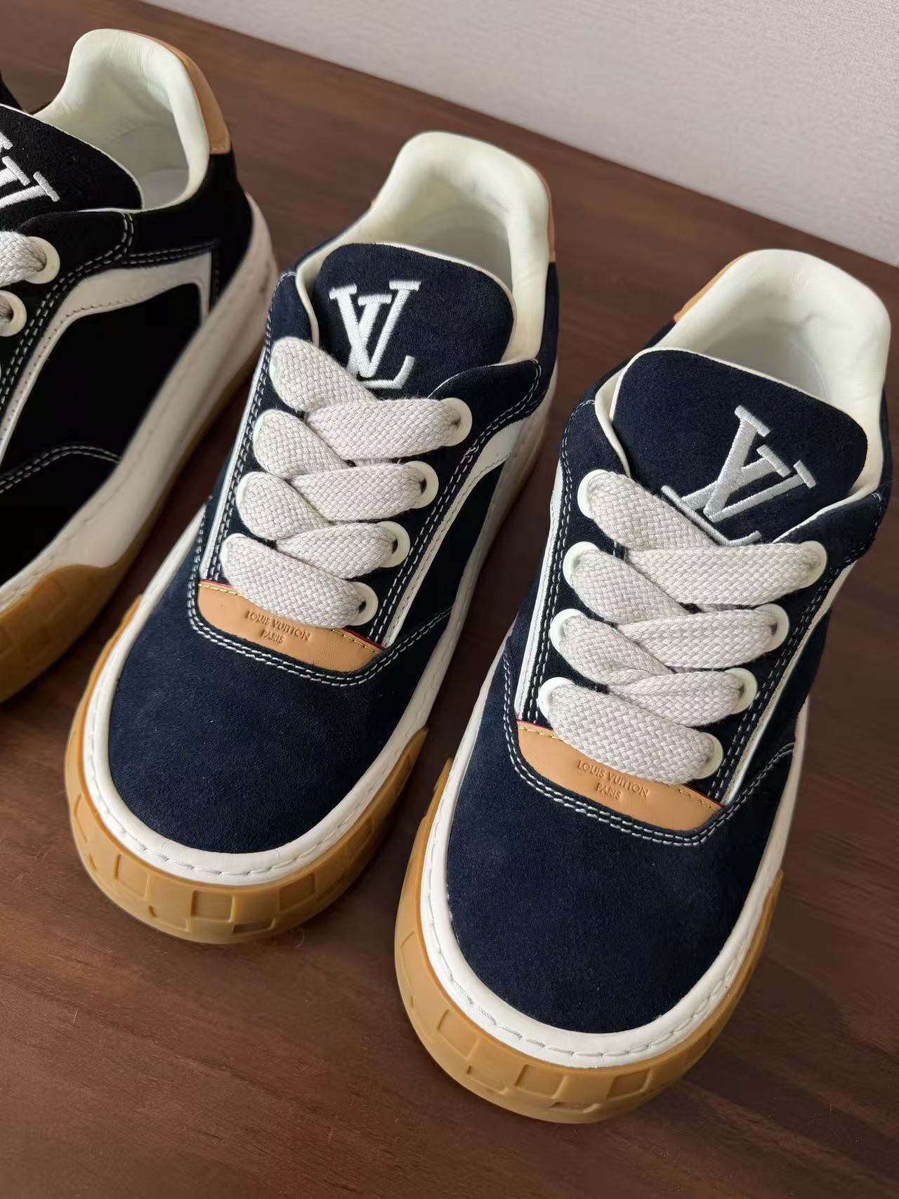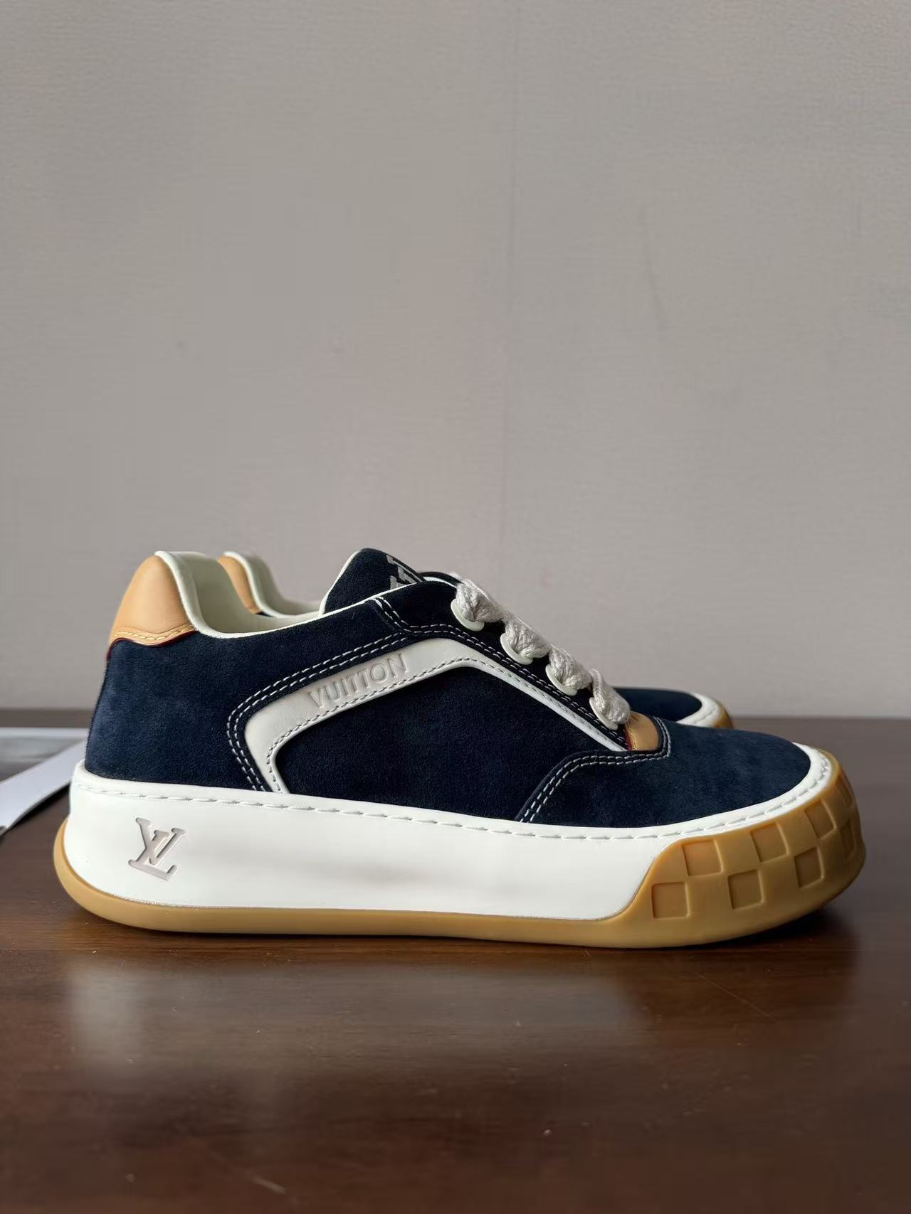 Damier 與 Monogram 元素融合: 於鞋頭與外底處精準佈置品牌標誌,讓經典設計語彙以更現代、街頭的形式呈現。