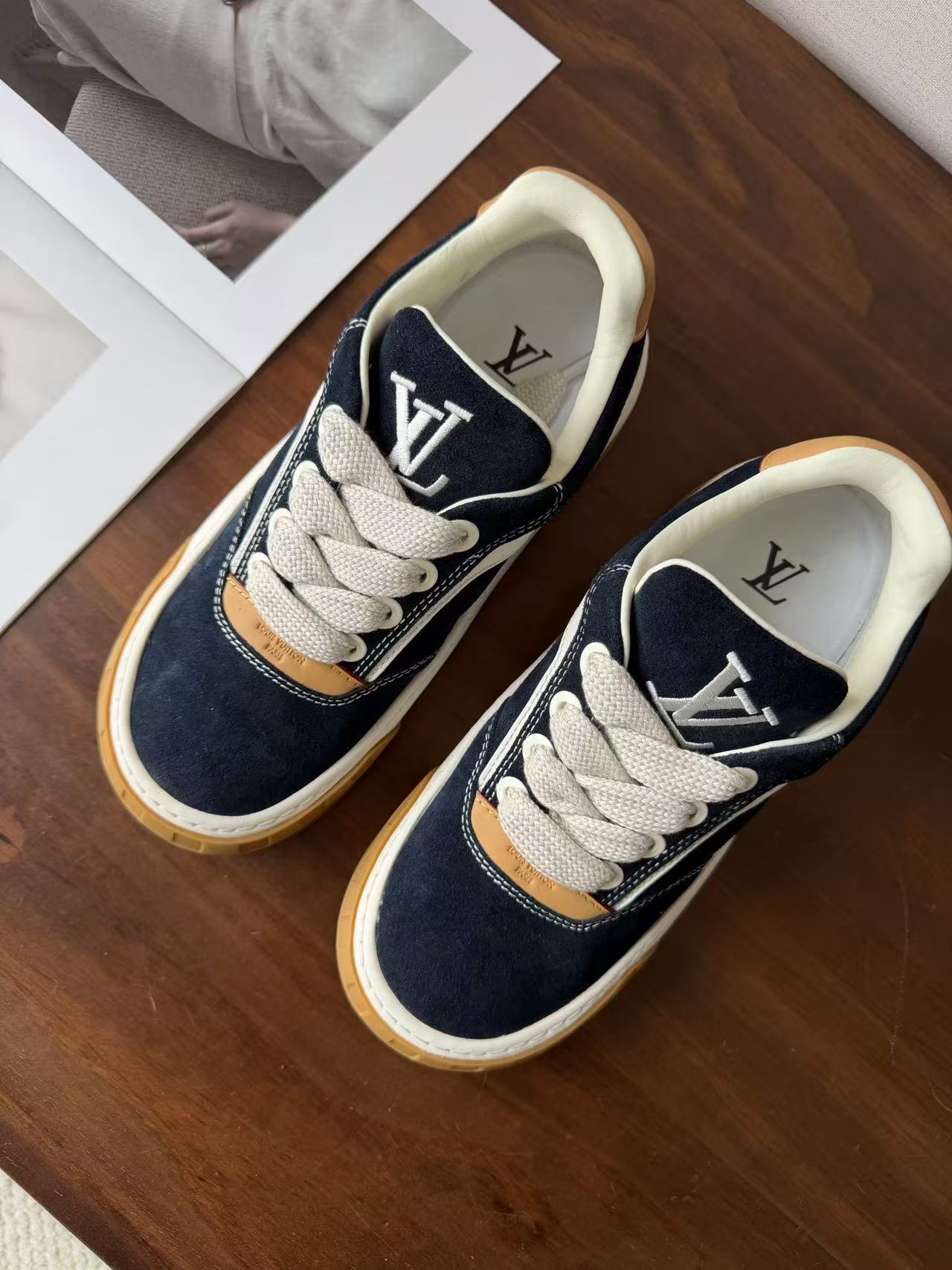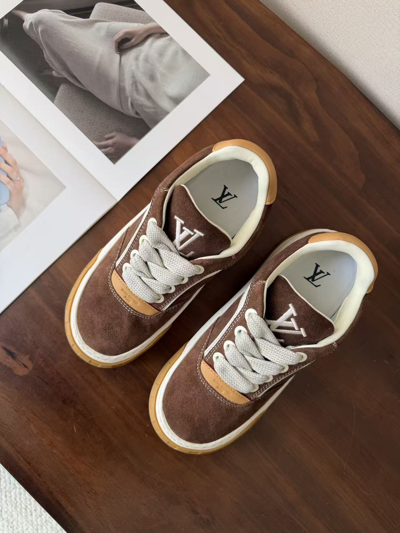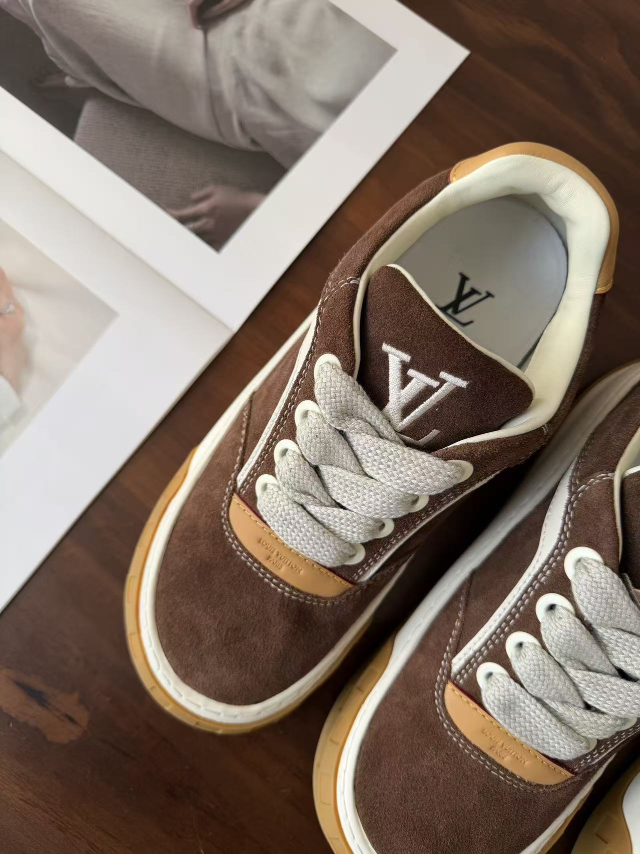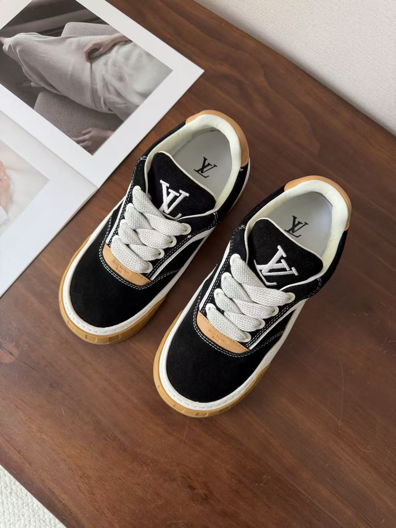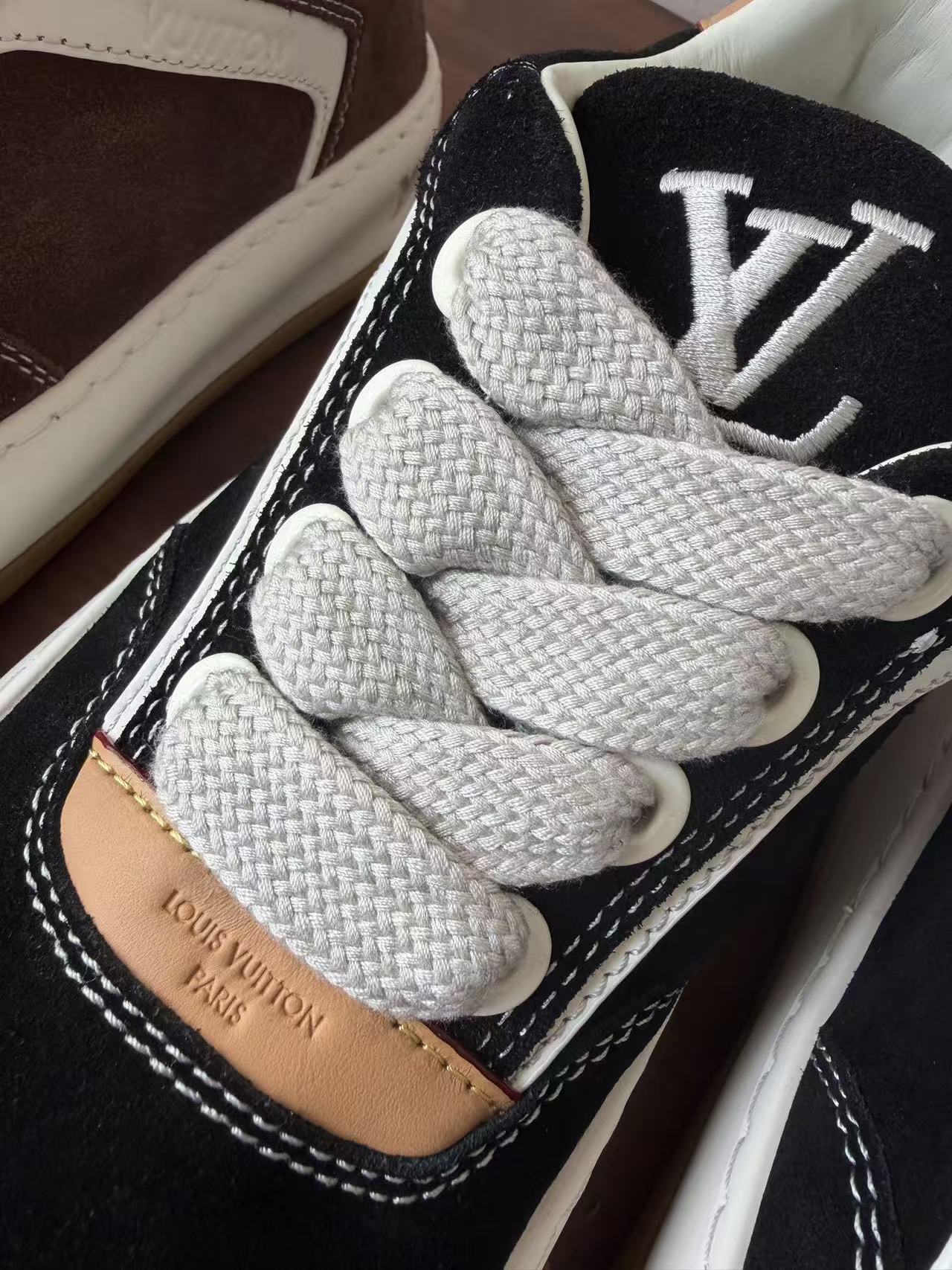Damier 與 Monogram 元素融合: 於鞋頭與外底處精準佈置品牌標誌,讓經典設計語彙以更現代、街頭的形式呈現。
