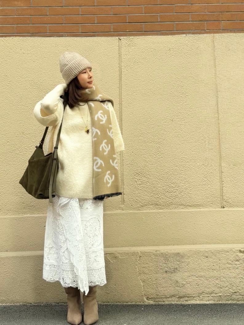 大尺寸就是好搭,披著、圍著都能展現不同風格。
