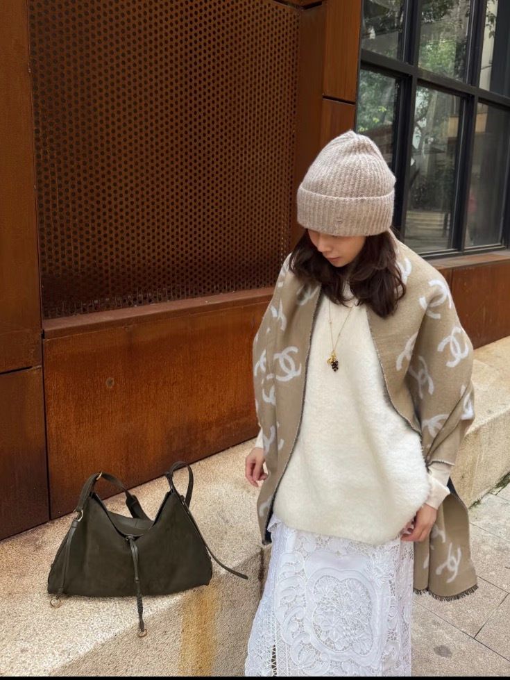 這款真的是今年秋冬最值得入手的精品配件之一。與其說它是圍巾,其實更像是一條高級感滿滿的大披肩 —— 尺寸夠大、柔軟度滿分、上身效果直接氣質翻倍。