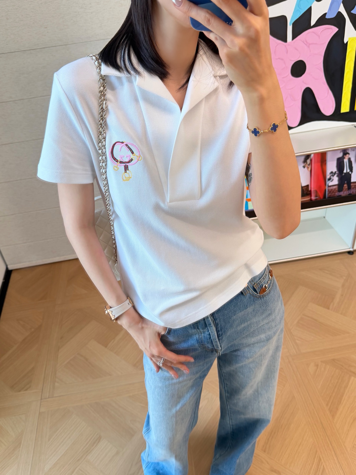 胸前以精緻的「馬銜扣刺繡」作為視覺亮點,細節做得非常到位,既呼應馬年主題,又不會過於張揚,整體質感拿捏得剛剛好。