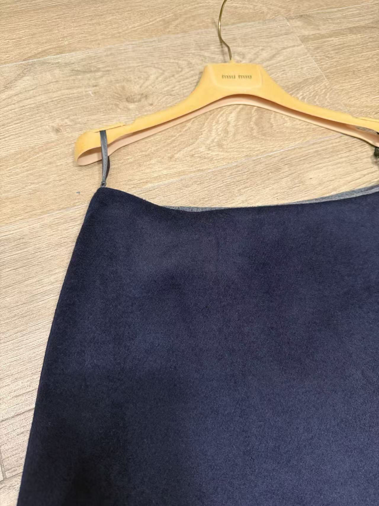 一面高级灰調羊毛呢,一面深邃藏青質感材質,同材質雙色調,一裙解鎖兩種風格。