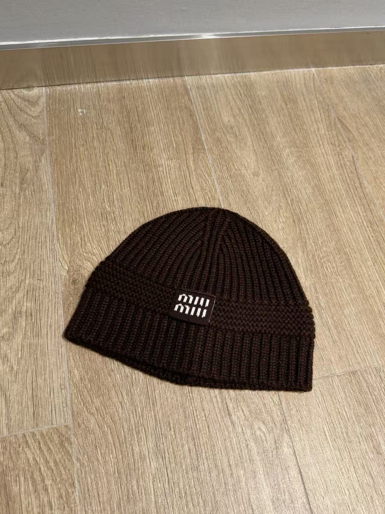 2025早秋 MIU家 徽標羊毛混紡針織帽| 入冬必備