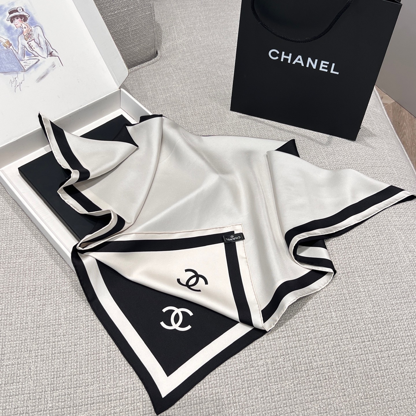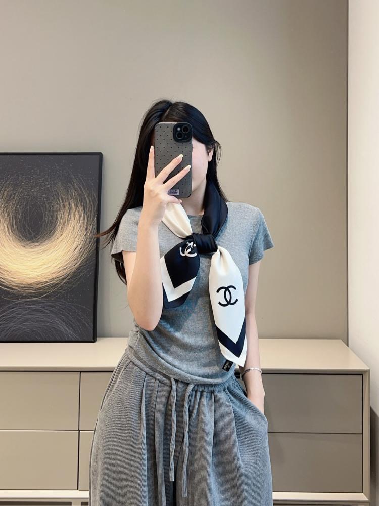 2026春夏新品 C家 對稱黑白絲巾