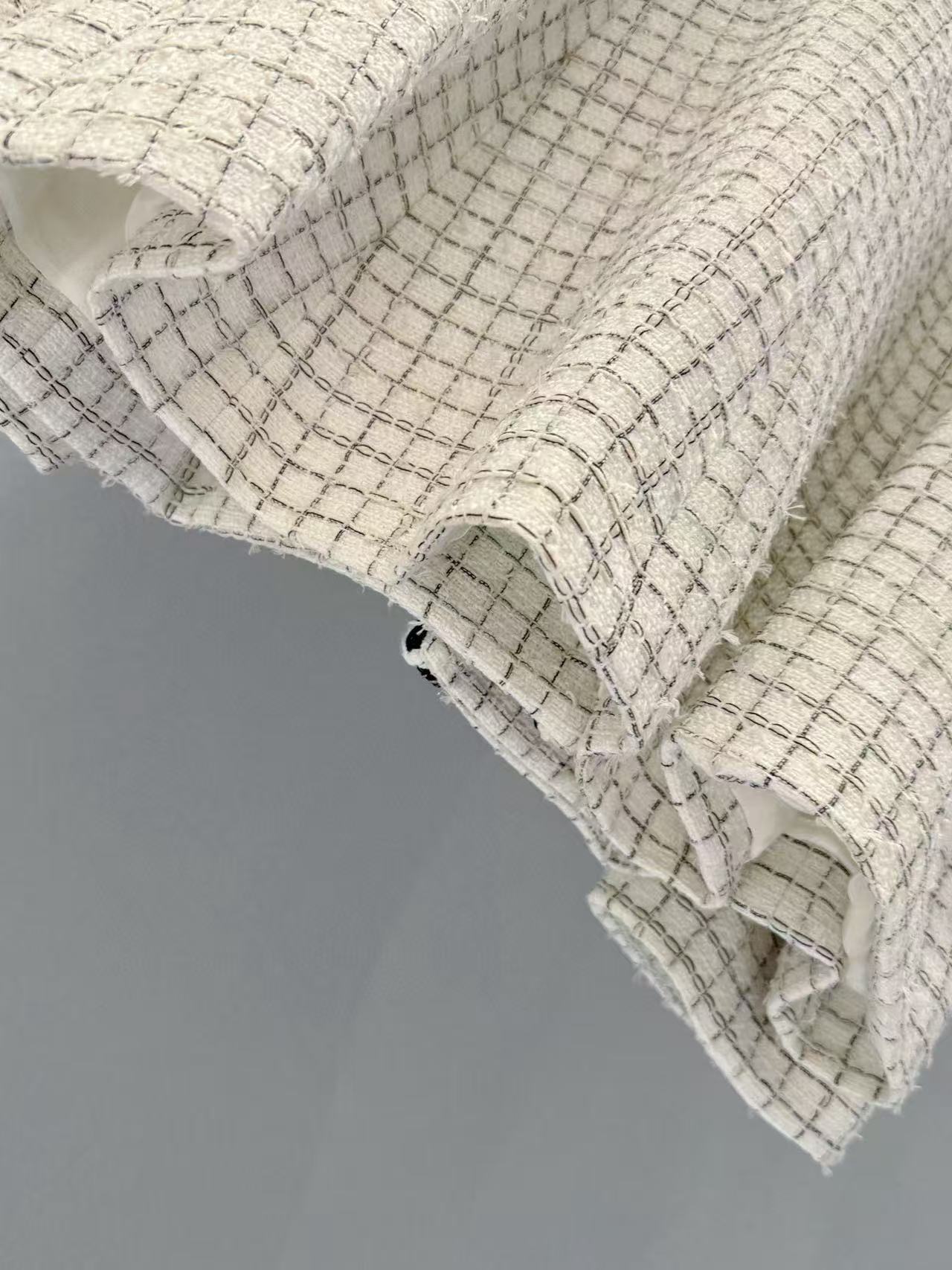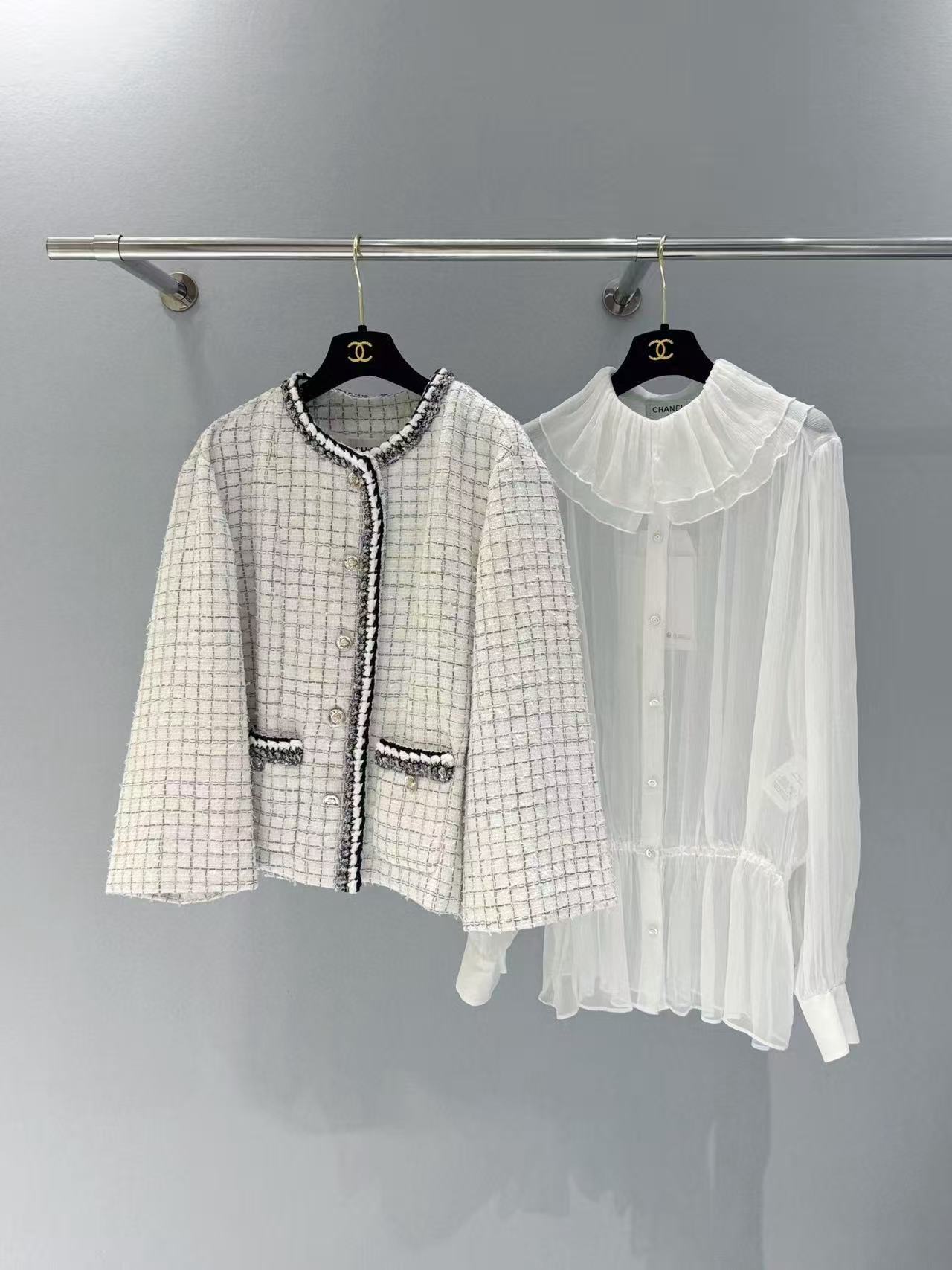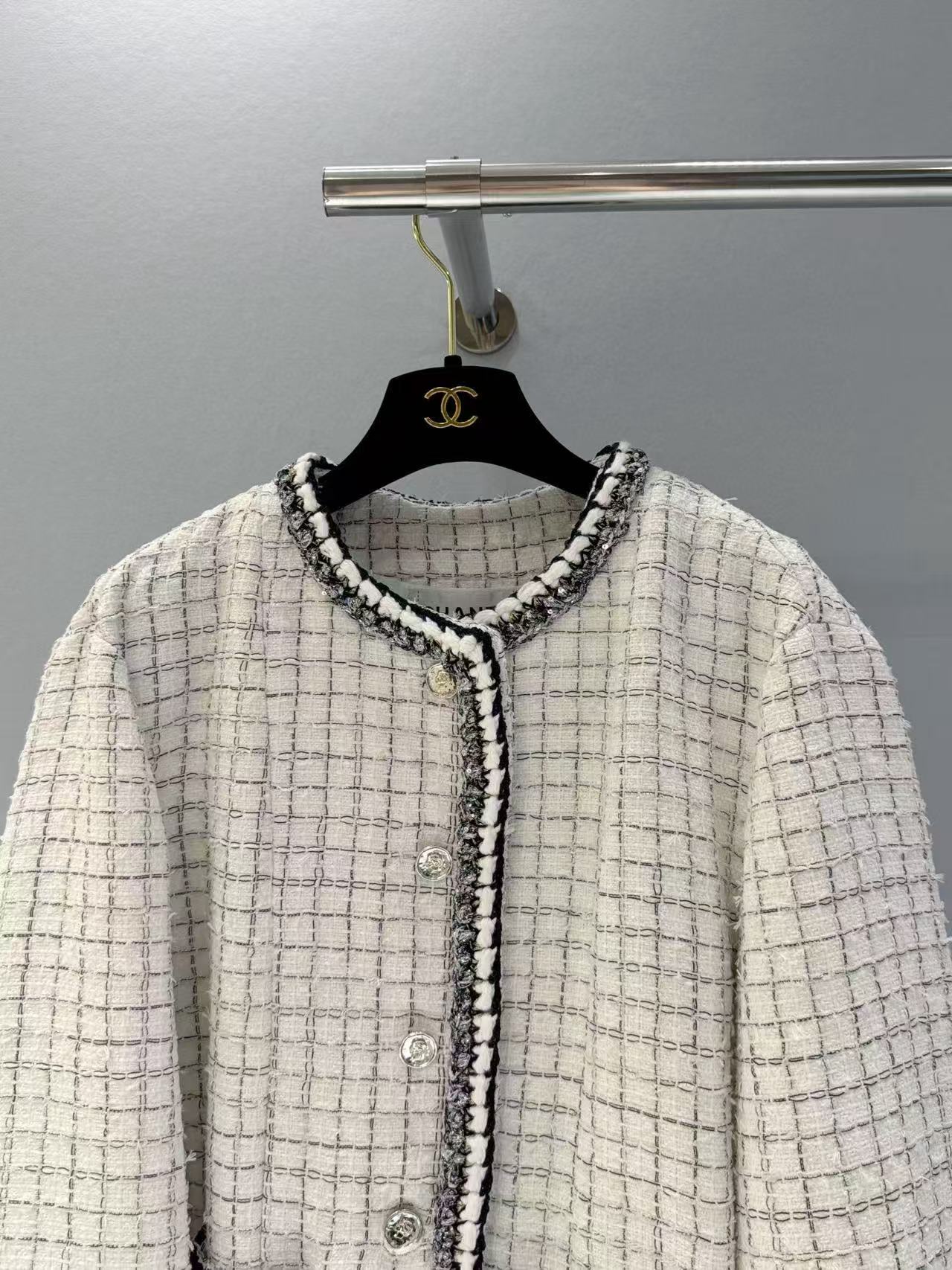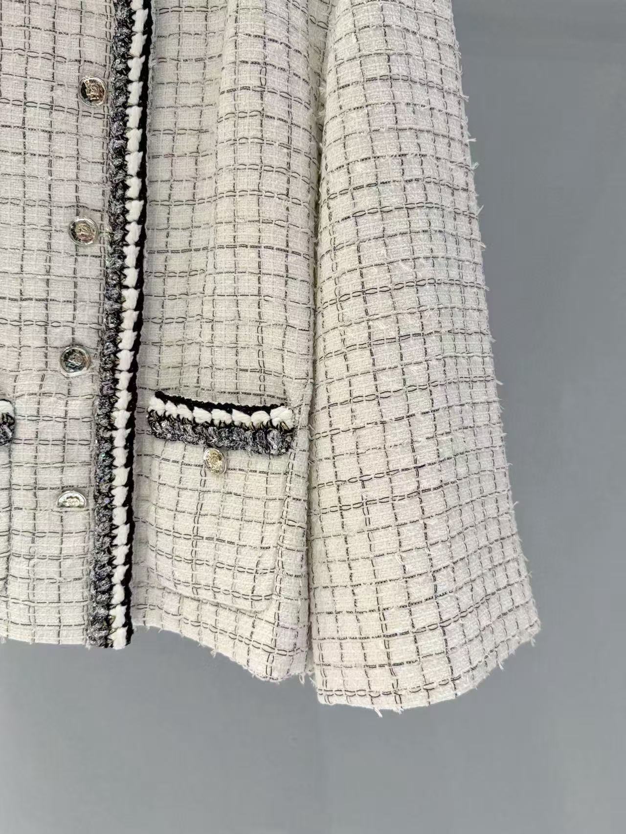 對稱式口袋加上深色波浪狀捆邊,層次感瞬間拉滿;胸前點綴重工製作的雙C襟扣,細節裡就藏著滿滿的高級感。