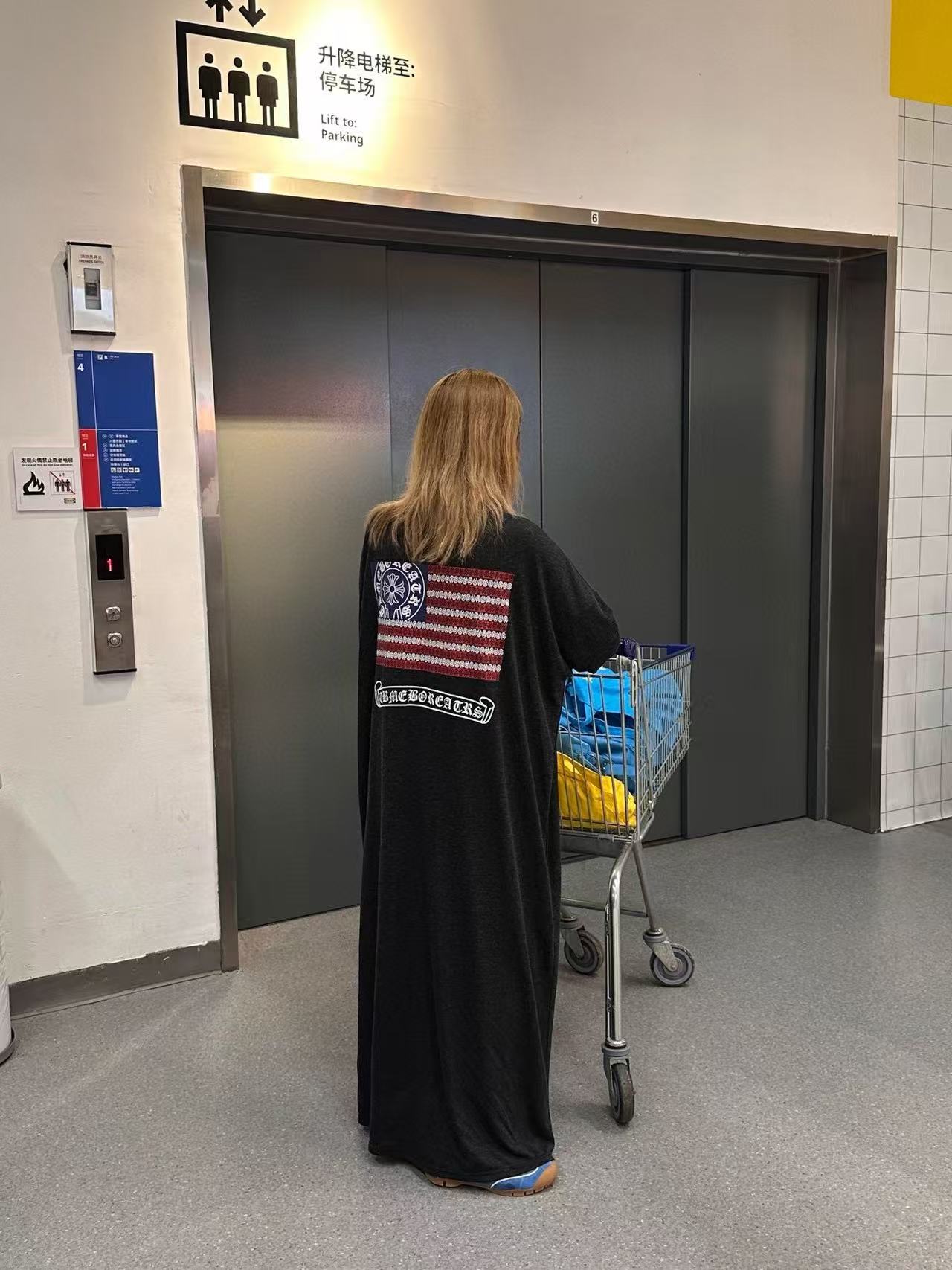 水洗做舊材質+落肩寬鬆剪裁,自帶復古濾鏡