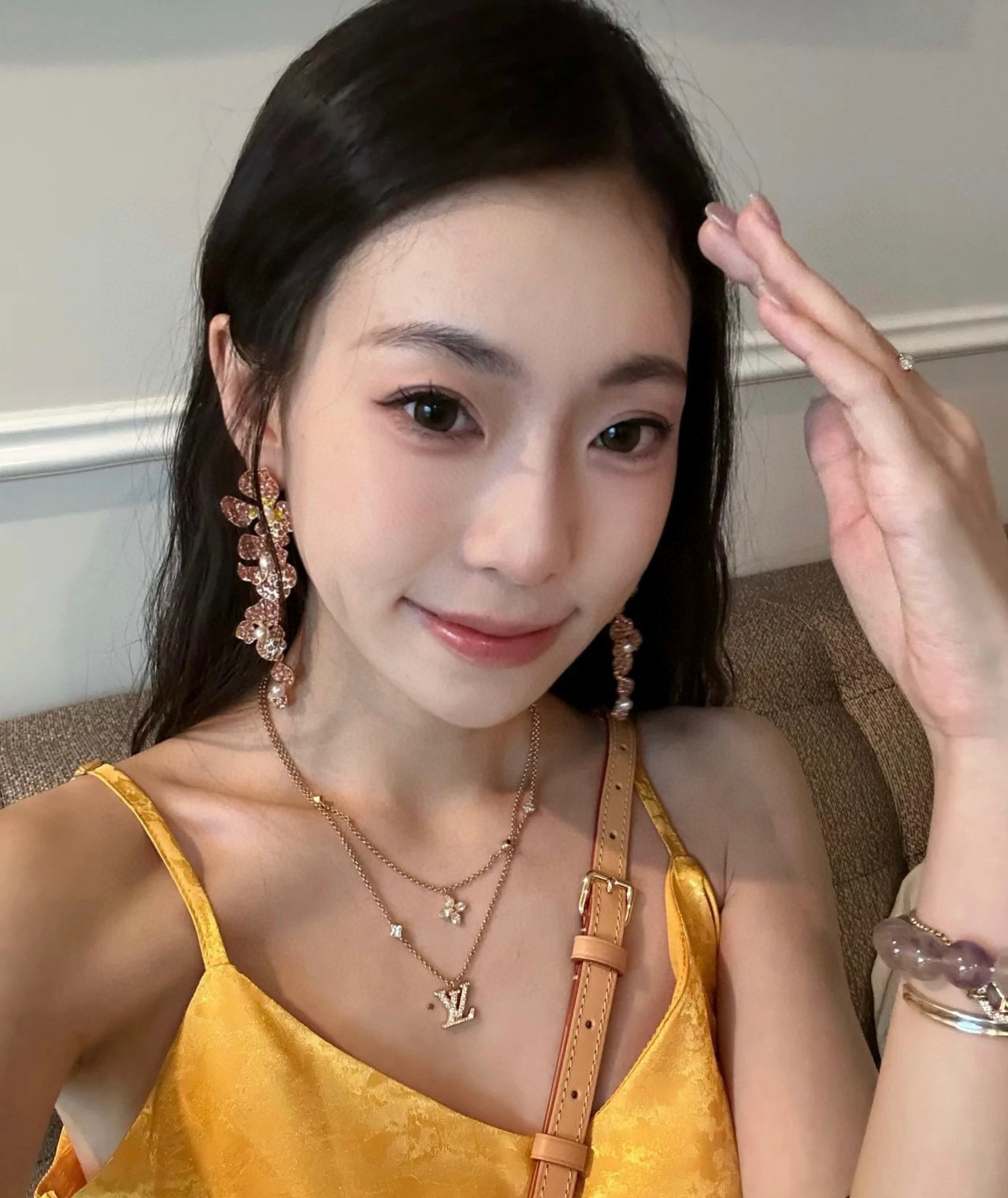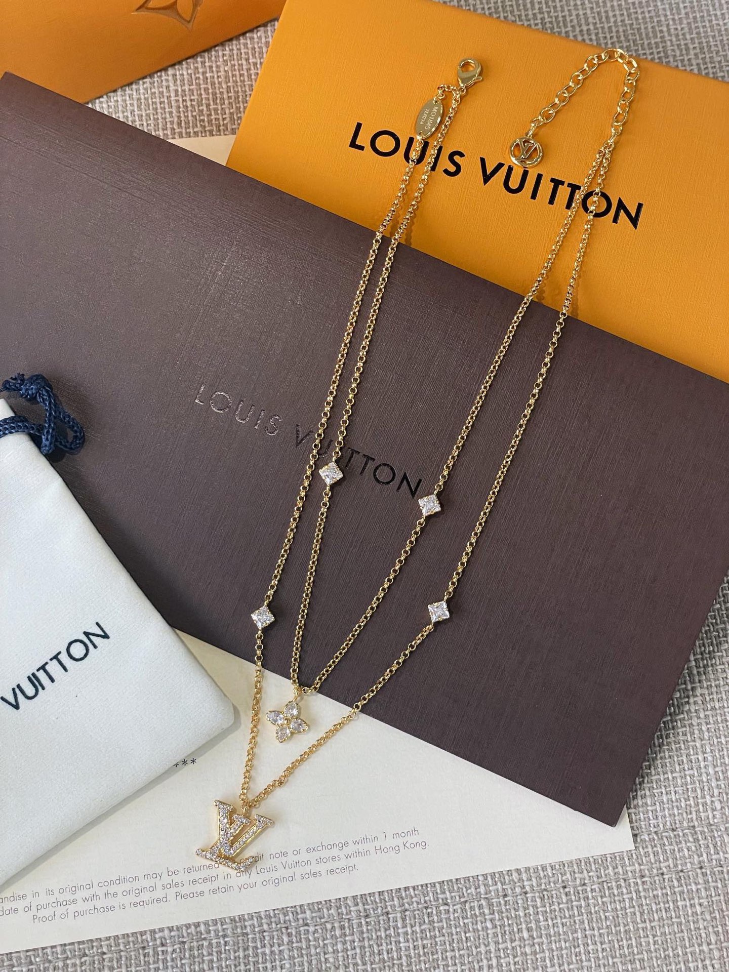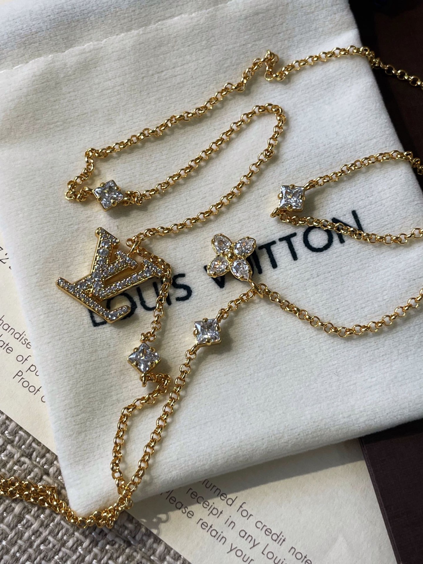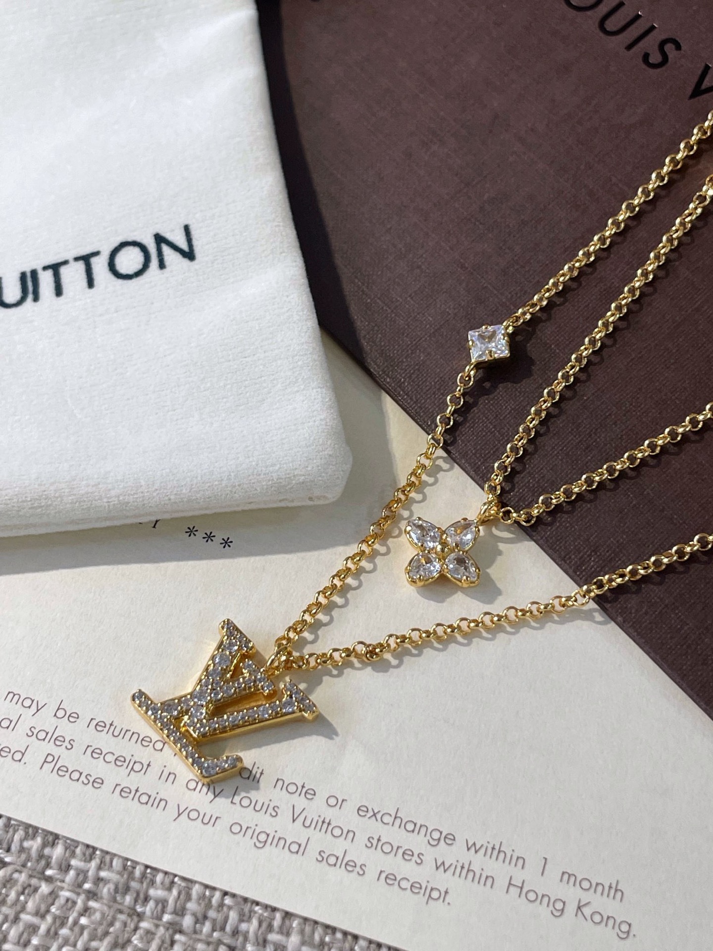 這條項鍊真的超級精緻!手工鑲嵌的菱形鑽和小花葉子異形鑽,非常閃耀!雙層的設計完全可以滿足您想要疊戴的效果,時髦度爆表!