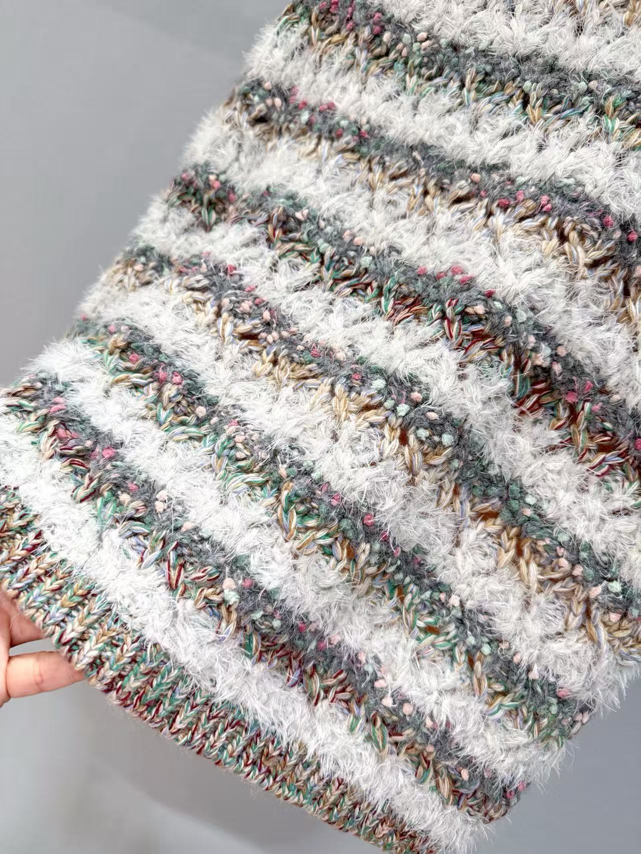 PD家 撞色菱格羊絨針織衫