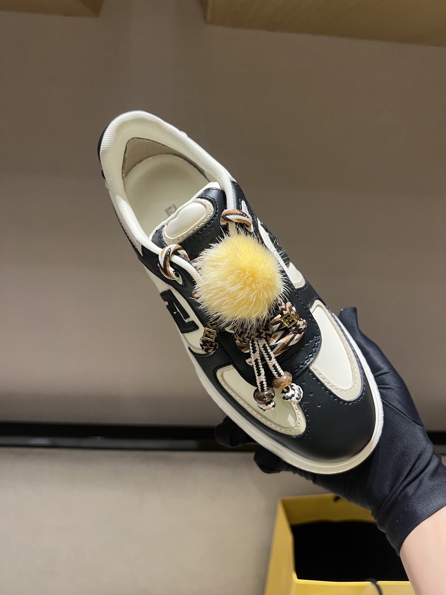 整體以拼色設計為主軸,搭配可愛的貂毛毛球點綴,在俐落運動風中加入一點俏皮感,讓整雙鞋看起來不只時髦,還很有記憶點。