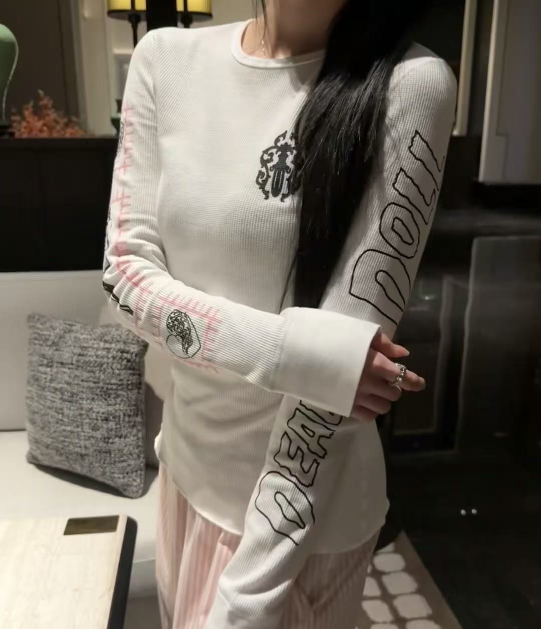 Ch克羅心 華夫格印製長袖