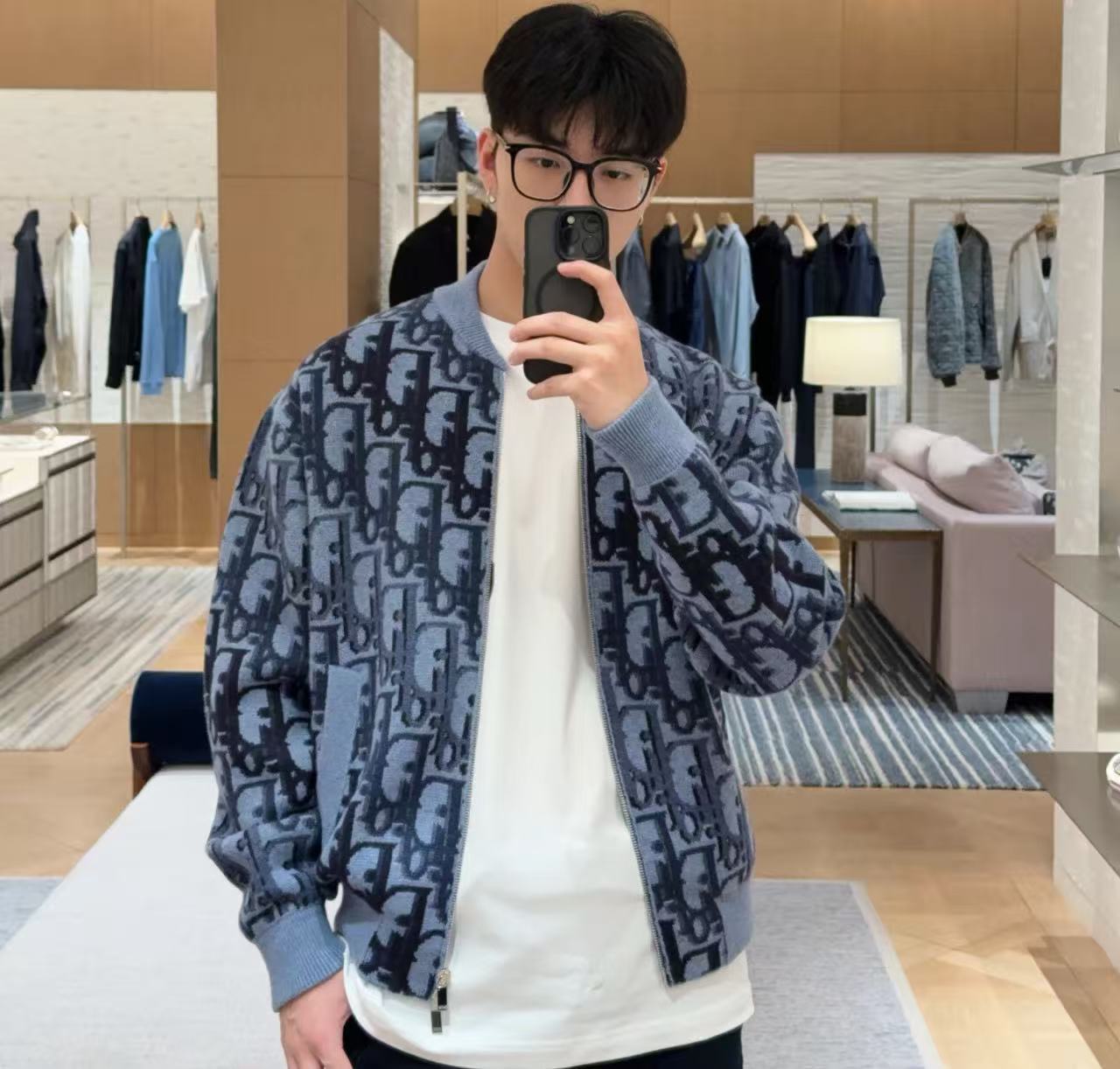 遠看就是一件低調灰/米色羊毛開衫,近看才發現全身都是細膩到爆炸的Oblique提花,燈光一打整個衣服在呼吸發光,隨便一穿就從台北變巴黎秀場,貴到讓路人自動幫你讓路~