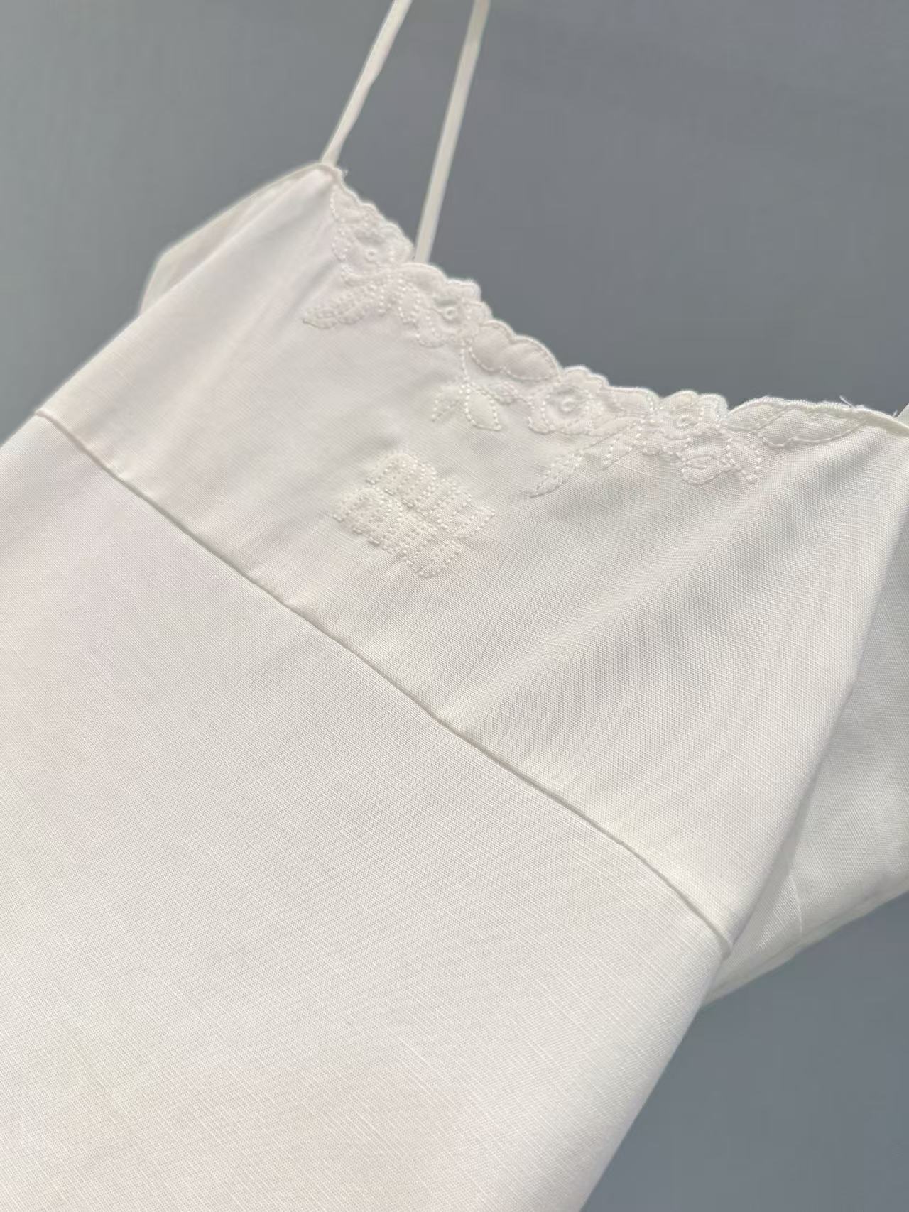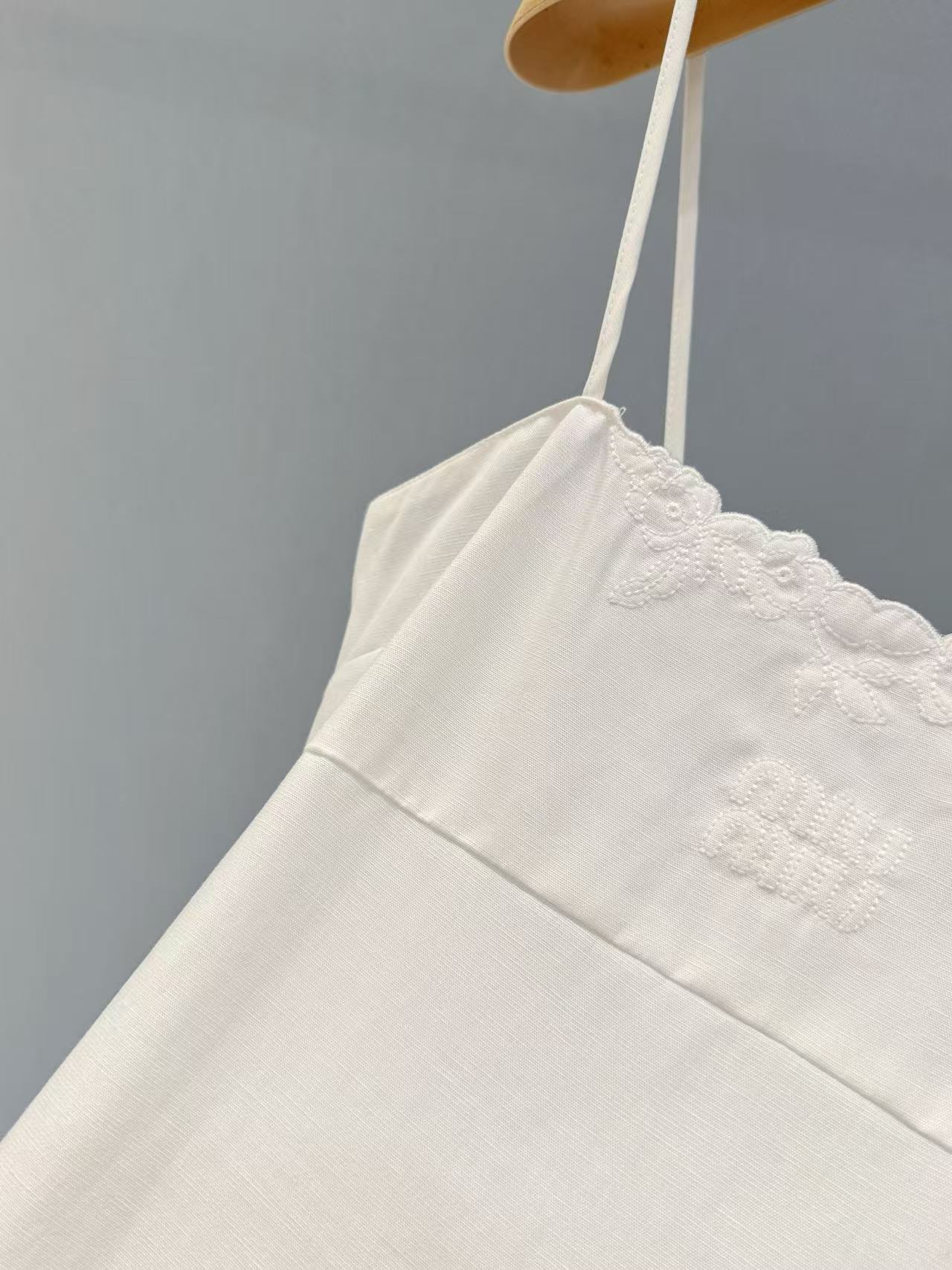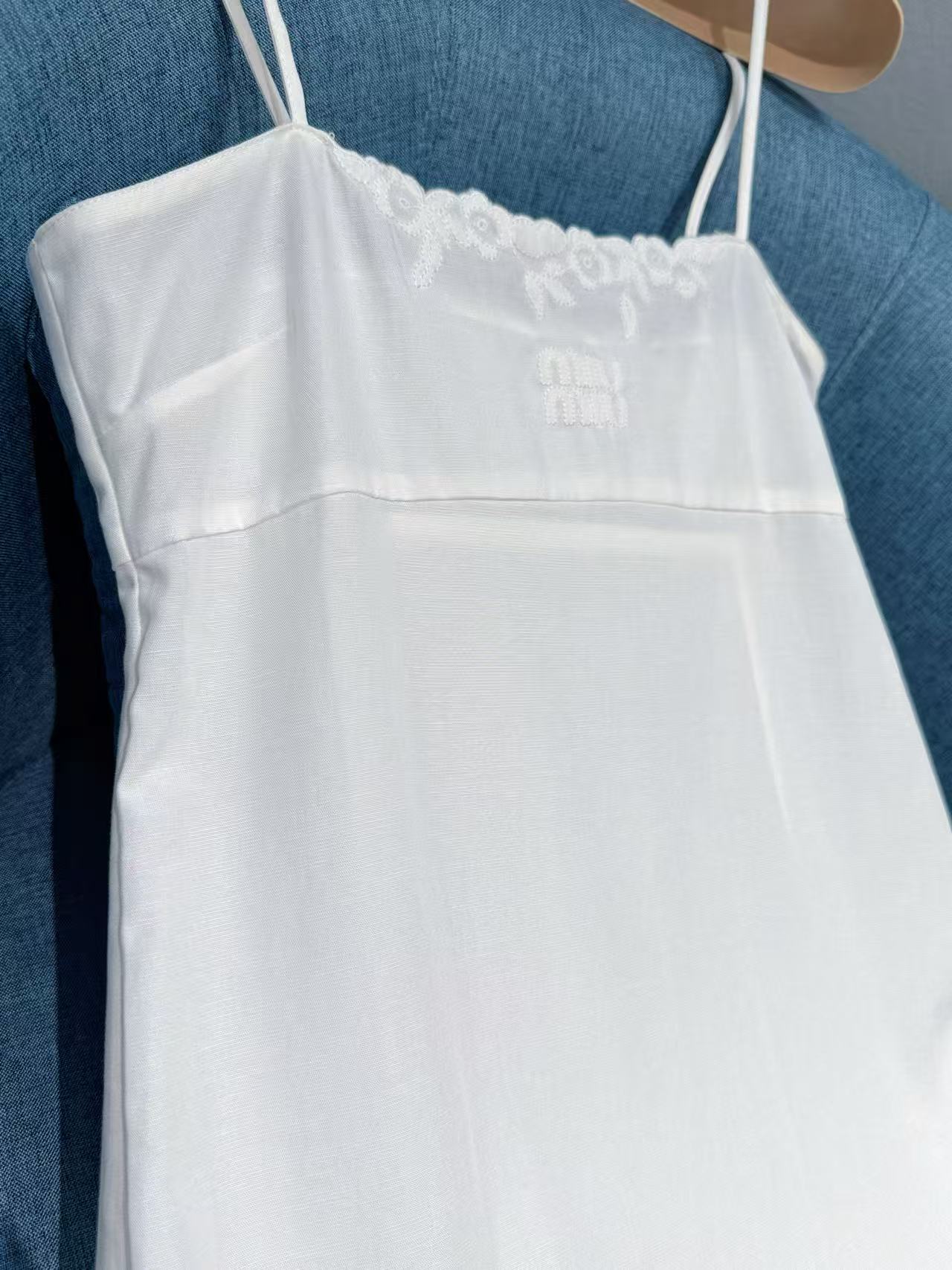 2025春夏 Miu家 刺繡粗斜紋吊帶連衣裙
