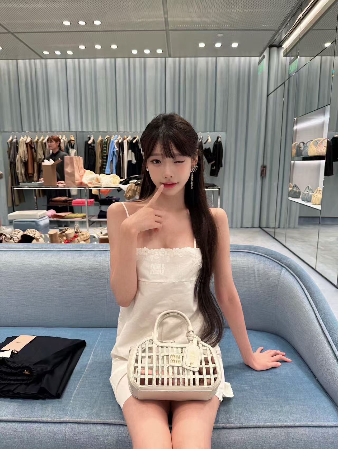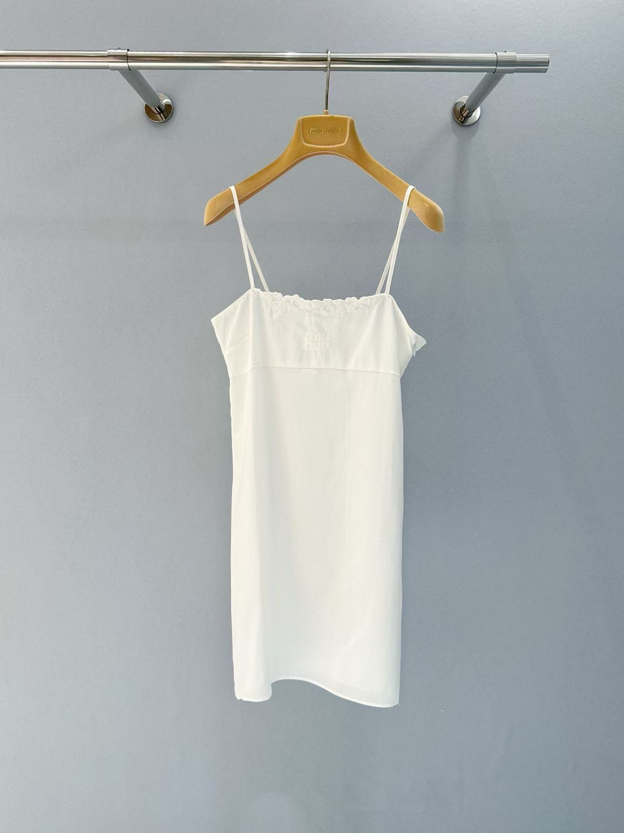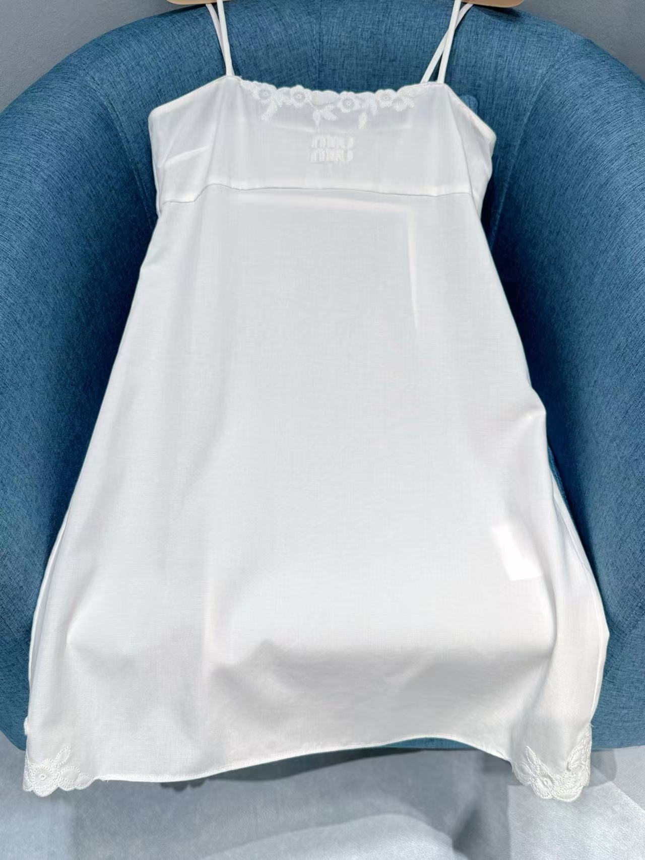 2025春夏 Miu家 刺繡粗斜紋吊帶連衣裙