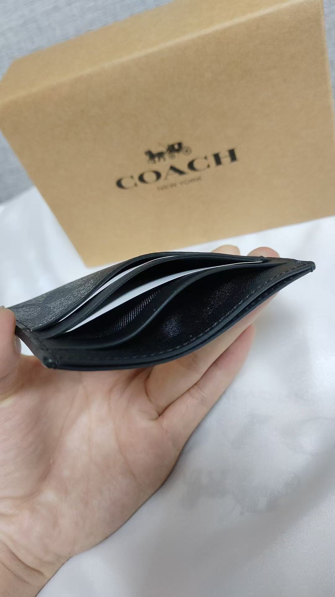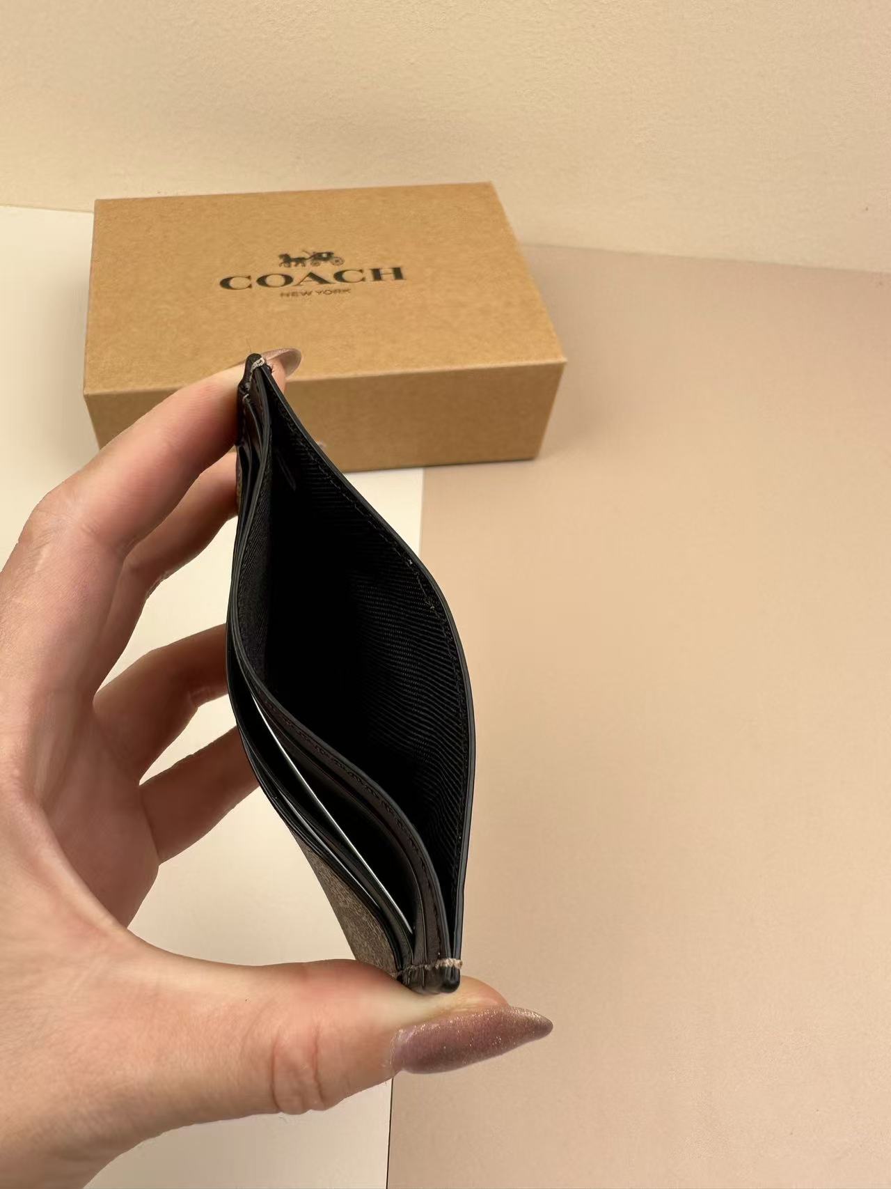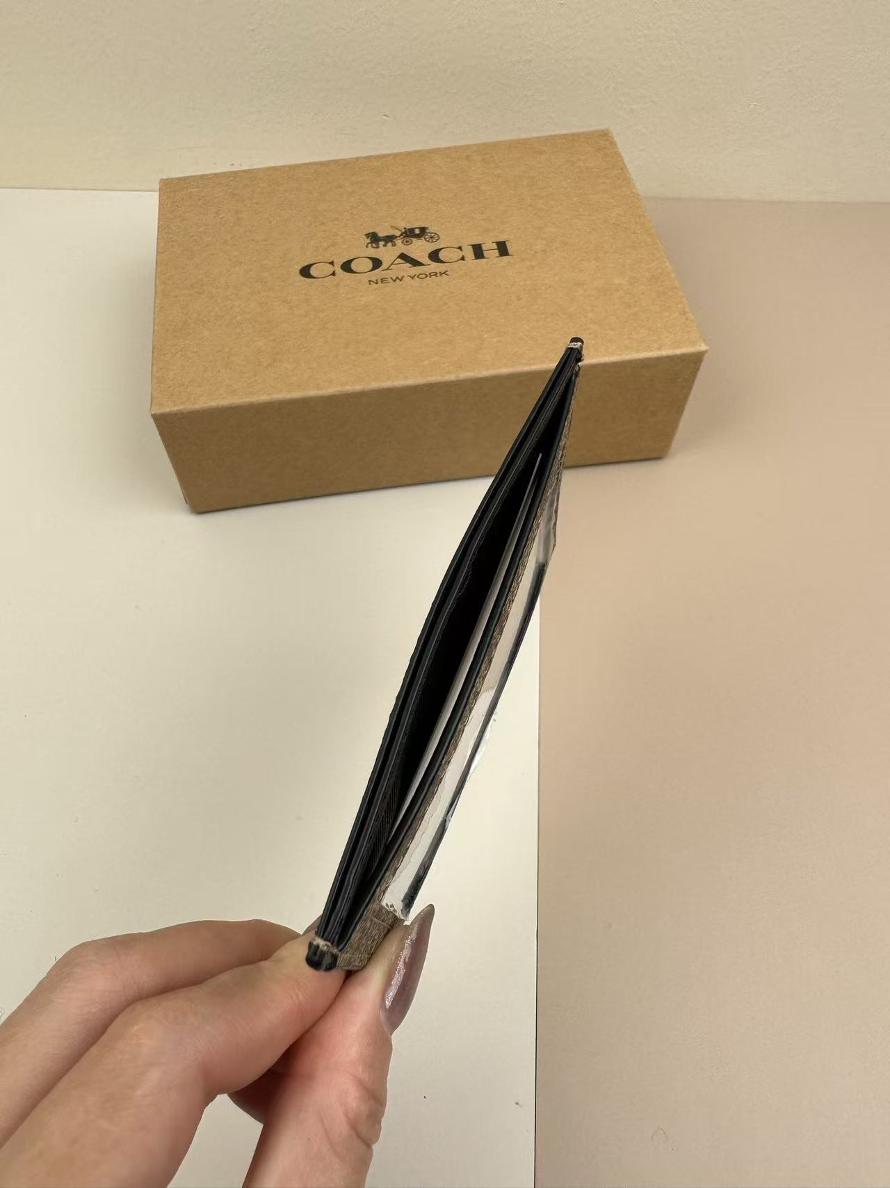 這款單品在「空間利用」與「體積縮減」上達到了極佳的平衡。10cm x 7.5cm 的精巧尺寸,內部卻配置了 3 個專屬卡位與 1 個獨立證件位,能將信用卡、交通卡與身分證件進行分類存放。