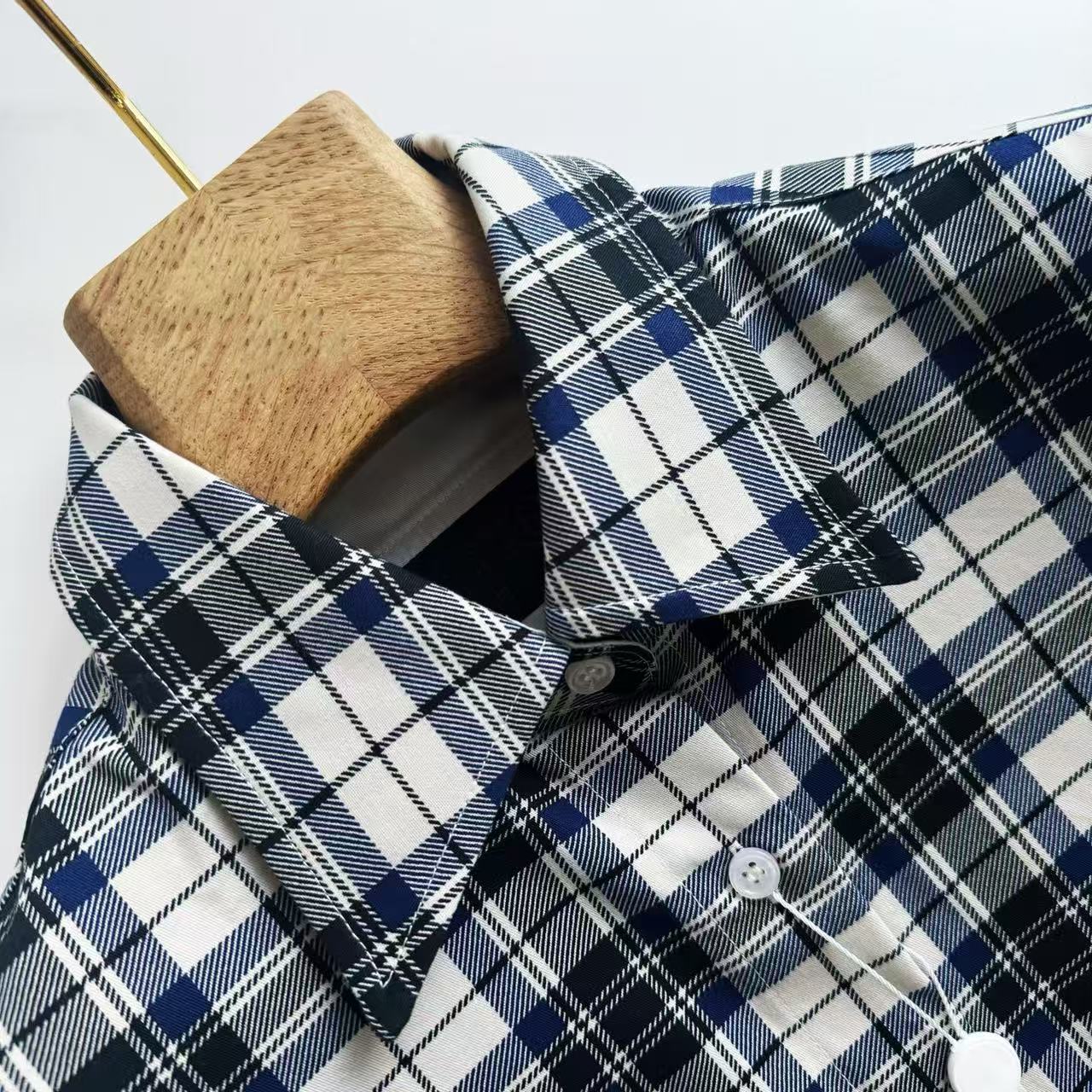 手工對格:整件襯衫都是人工單件紅外線對格手工裁剪的,確保領口、袖口和側縫的格紋都能完美對齊,這種對細節的堅持,絕對不是批量生產能做到的。