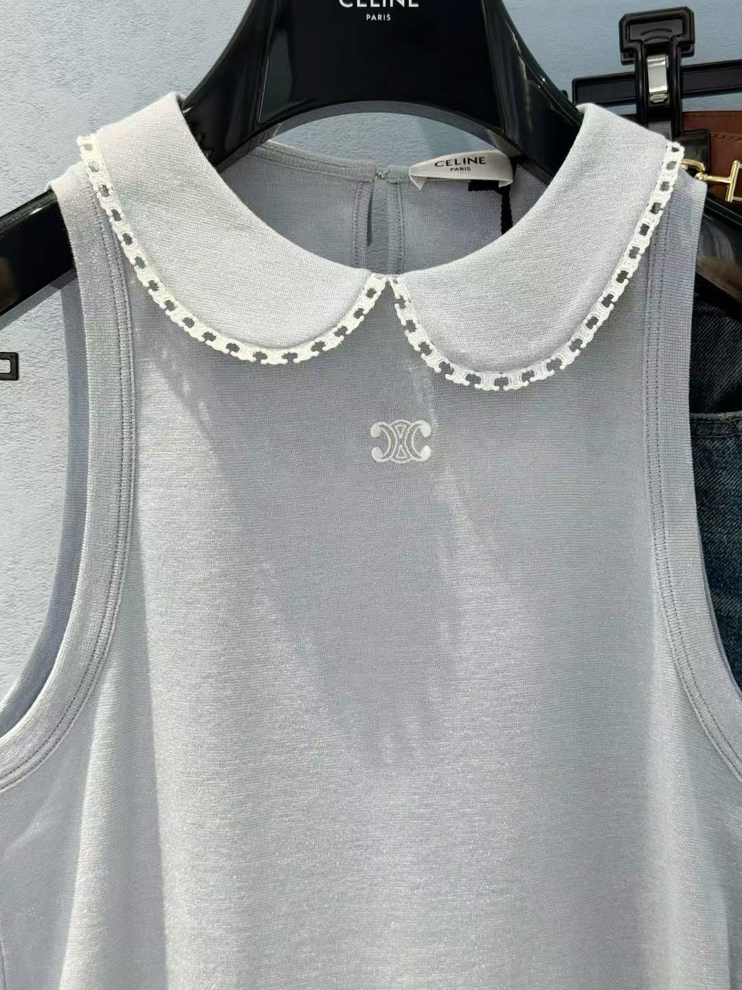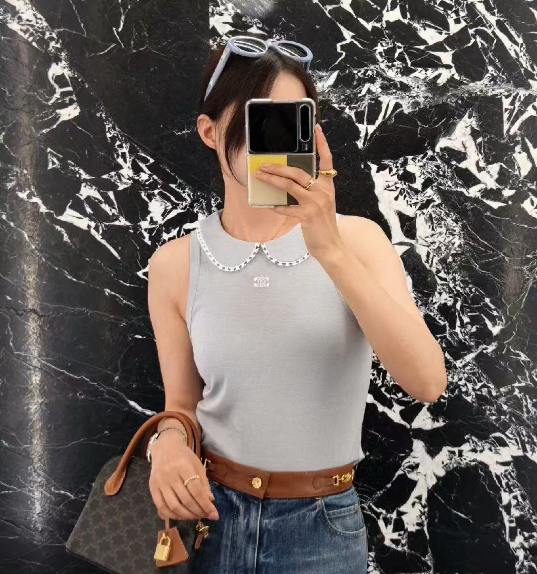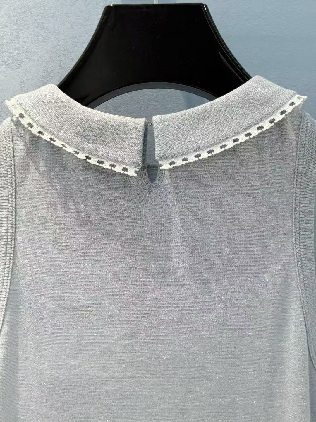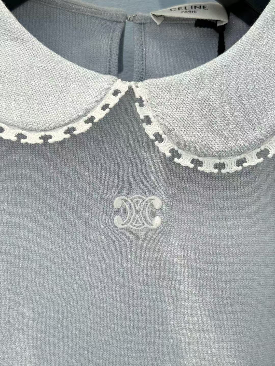 領口一整圈細緻的繡花邊,融入品牌經典「凱旋門」圖騰,低調中帶點優雅,完全是那種一眼就會被記住的設計。搭配簡單下著就能穿出高級感,甜美中帶點小公主氛圍,誰穿誰精緻。