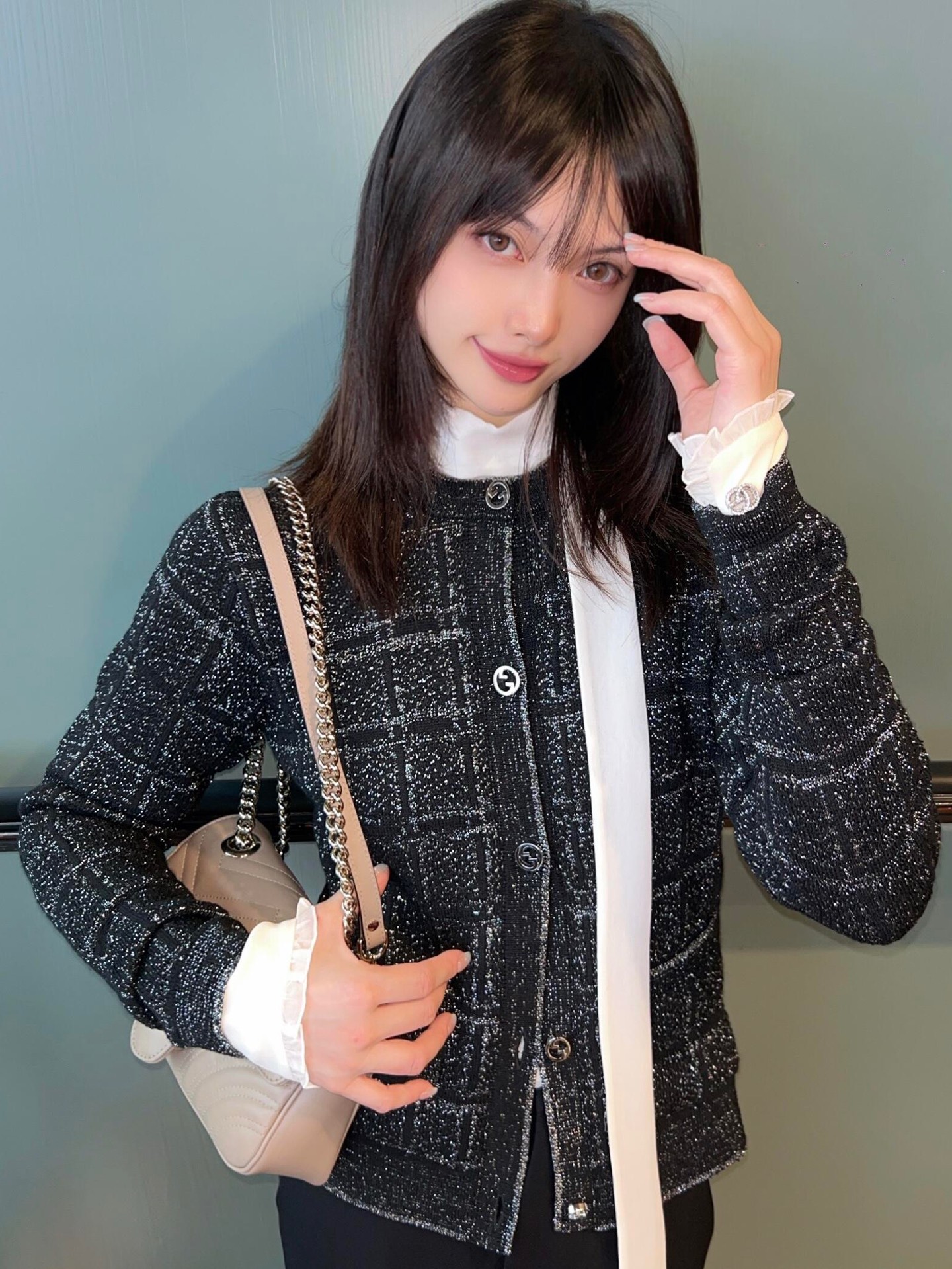 這件銀絲針織開衫,結合了溫柔與奢華,帶著一種剛剛好的精緻感。它不會過於張揚,卻能在日常裡默默提升整體質感,讓你不論是通勤、約會還是休閒時光,都能展現從容優雅的風采。