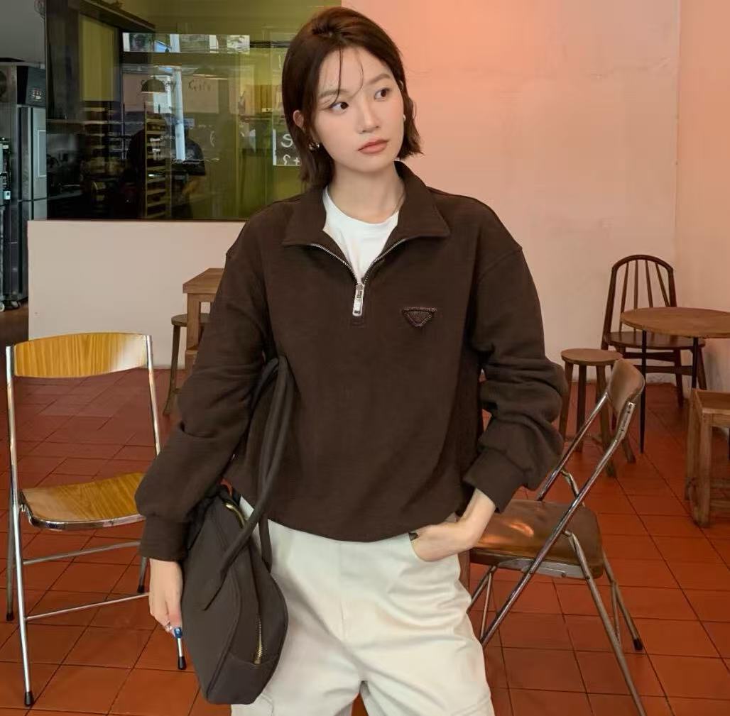 2025早秋新品 P家 三角徽標半拉鍊翻領衛衣