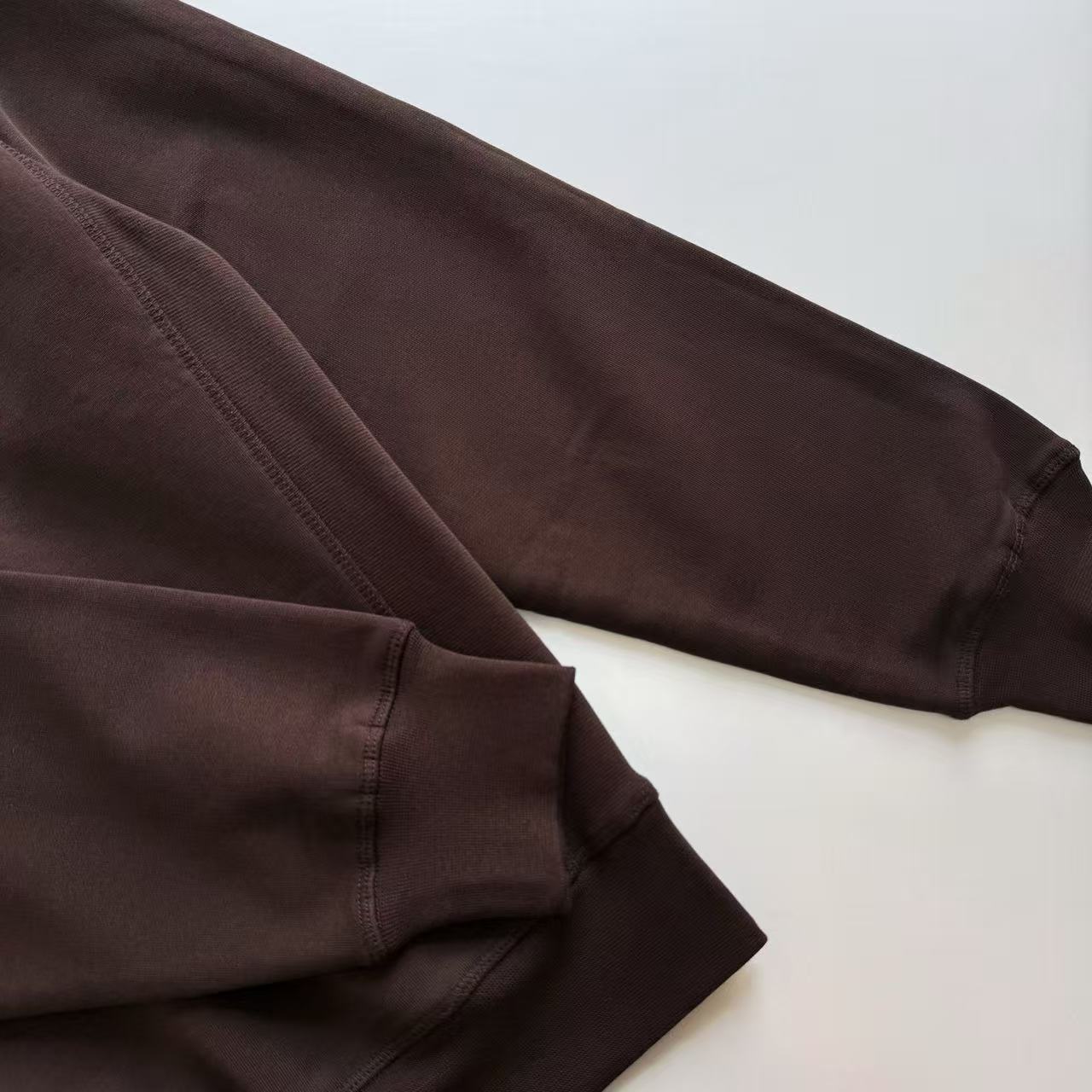 這件衛衣的材質真的非常講究!它使用了 380g 26S 雙紗加 10S 反向毛圈底紗材料,這種完美的組合,讓衛衣不僅觸感柔軟親膚,而且非常挺括,穿起來版型超好!這種頂級材料的觸感,完美展現了高級品味。