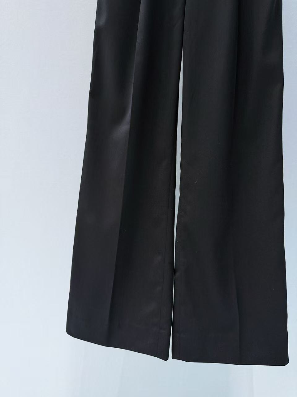下身版型: 闊腿褲採用垂墜感面料,走路時的流動感極強,完美修飾腿型瑕疵。