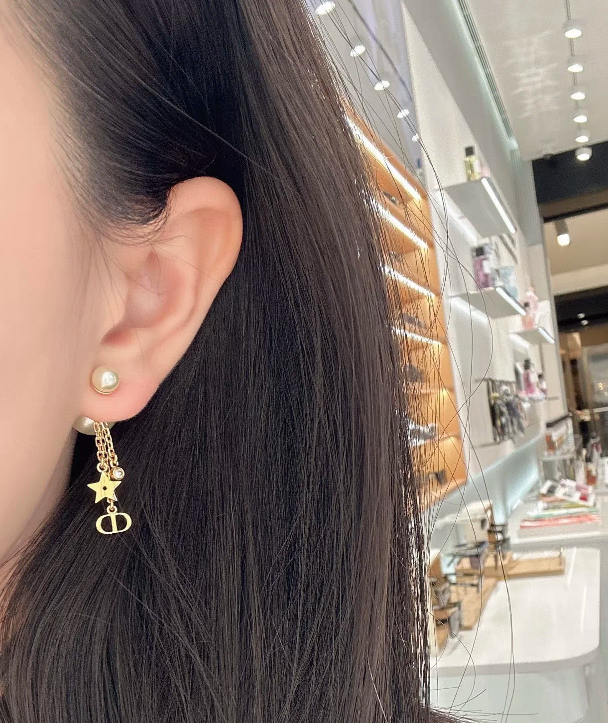 2025秋冬新品 D家 星鑽CD流蘇雙珠耳環