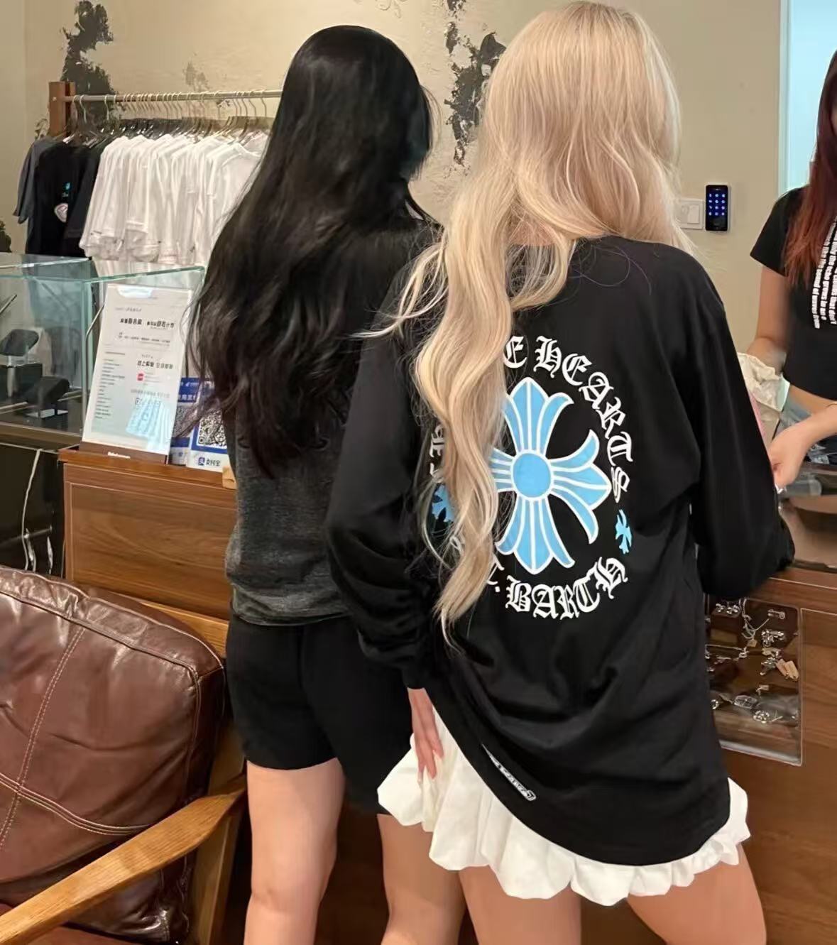 這次分享的是來自加勒比海度假勝地的 St. Barth 聖巴托島限定款。不同於經典款的黑白配色,這款長袖 T 恤背後採用了極具度假氛圍的湛藍色十字花,在純黑的底色襯托下,散發出一種前衛且深邃的視覺衝擊感。