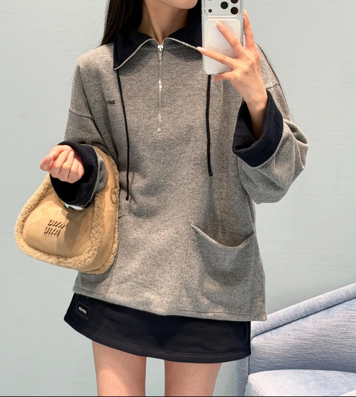 2025秋冬新品 Miu家 雙層羊絨半拉鍊衫