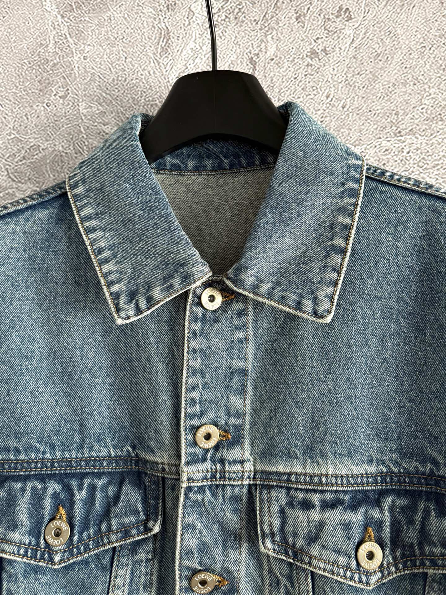 採用中克重的水洗牛仔材質,支撐力非常到位,不會顯得軟塌,穿在身上自然挺括有型。復古感十足的水洗褪色處理,也讓整件外套多了一份獨特的韻味,顏色更是少見、搶眼卻不浮誇。