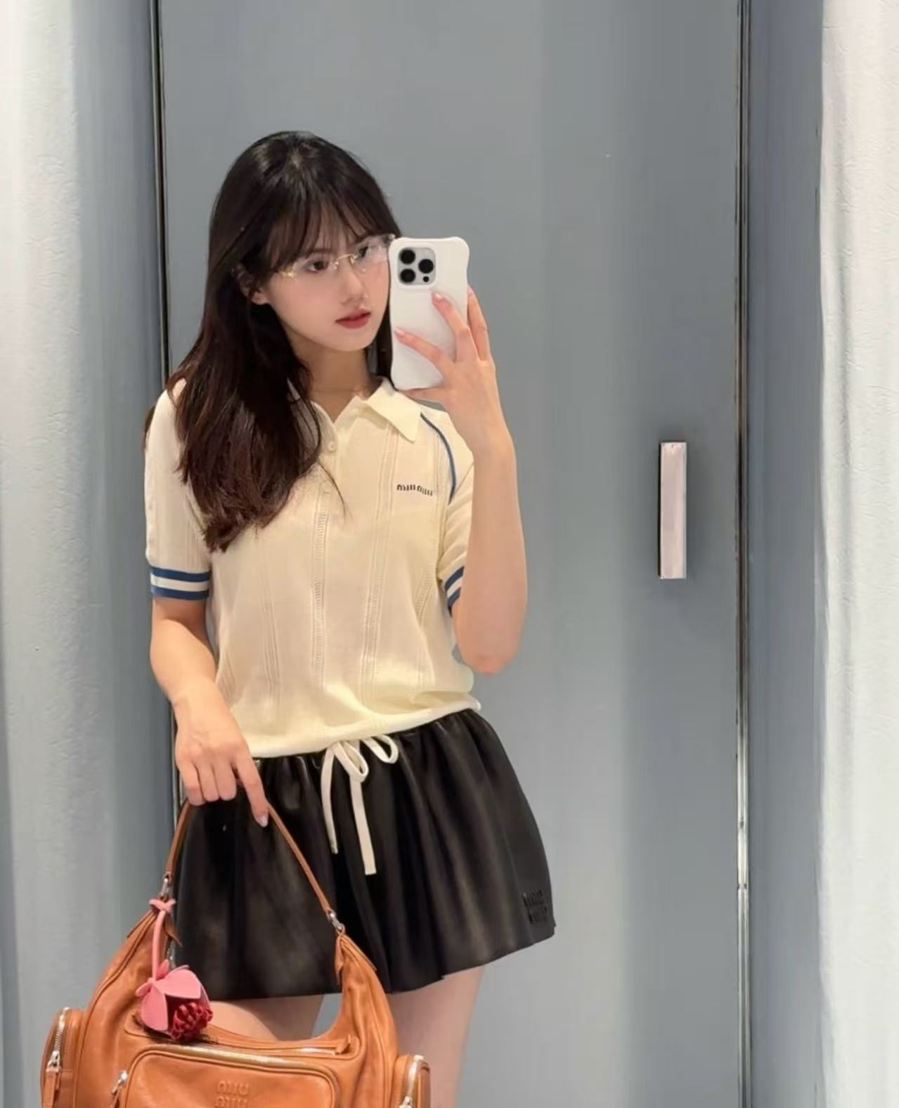 2025早秋 MIU家 字母徽標蓬蓬皮裙