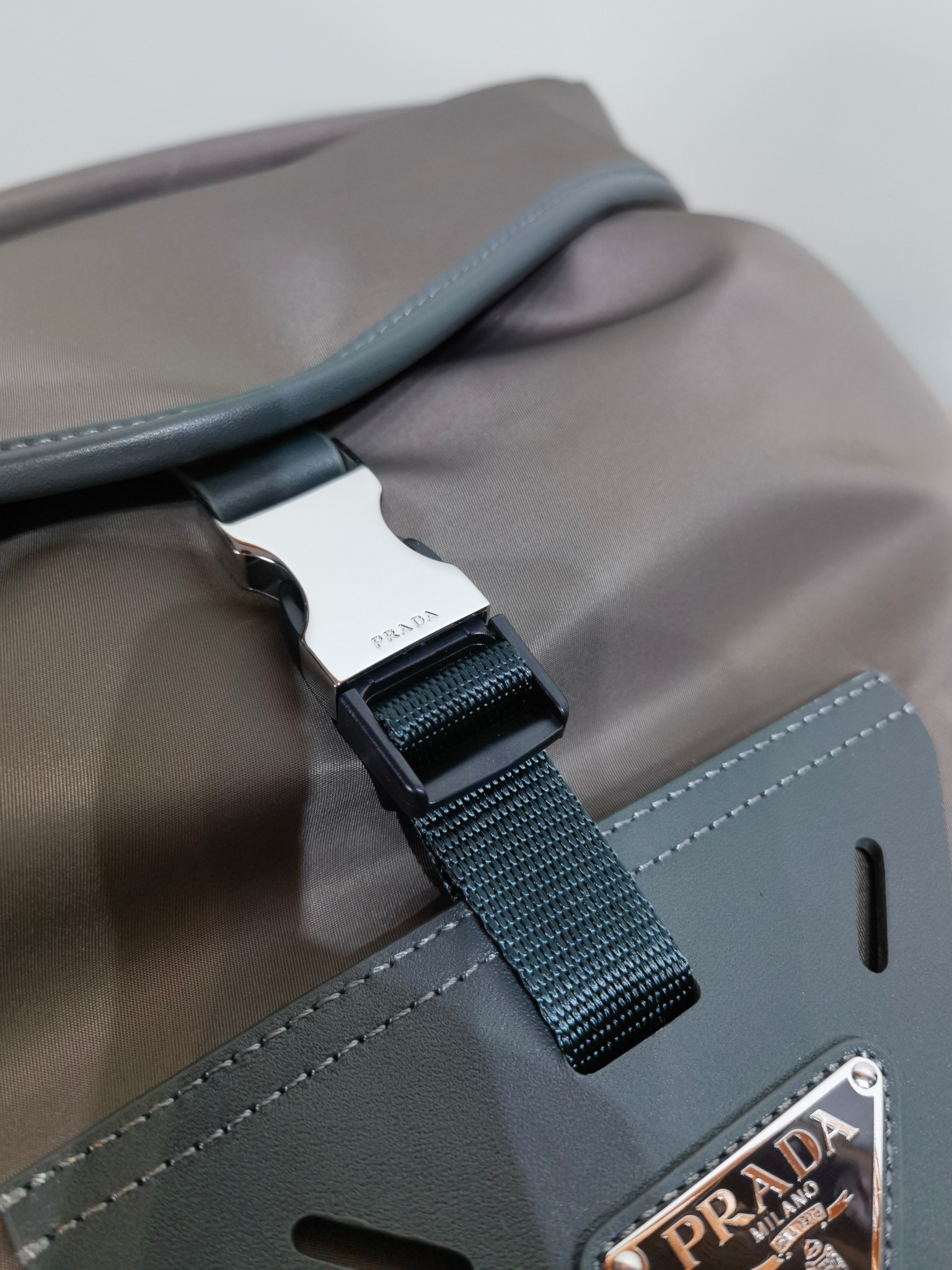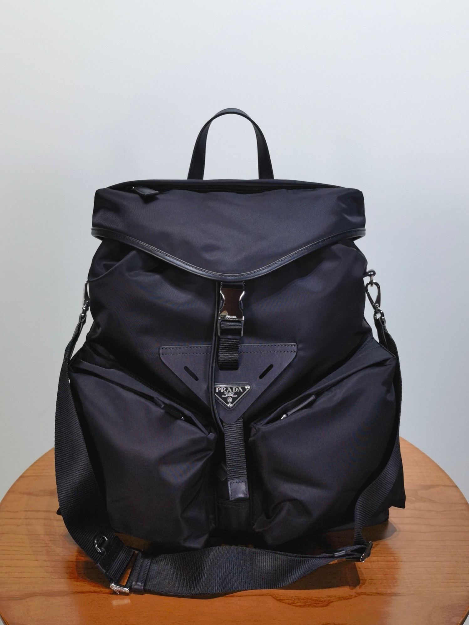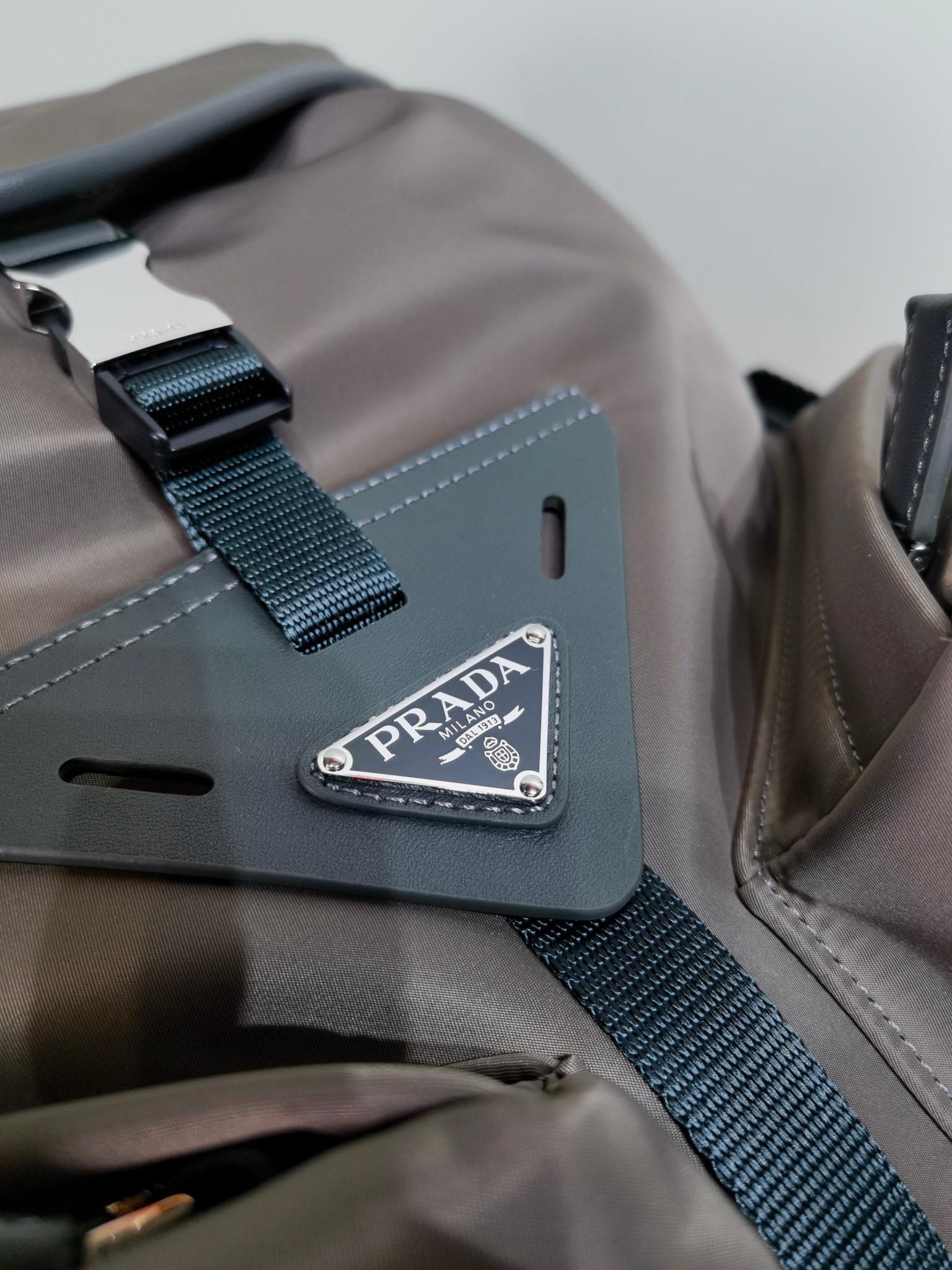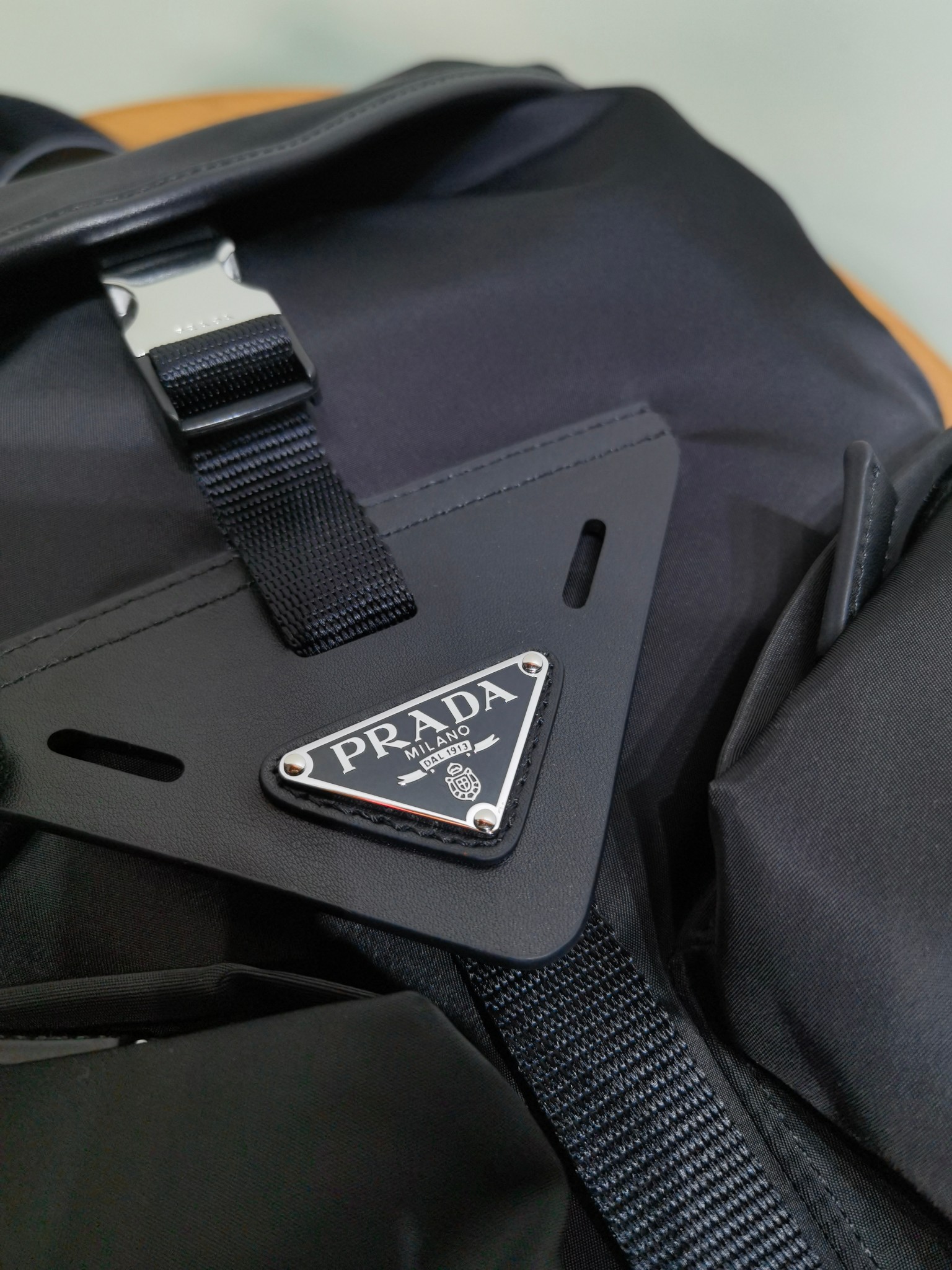 最吸睛的部分就是那個經典三角標,配上中央皮革細節與上層的琺瑯金屬徽標,不浮誇卻非常有辨識度,背上氣場直接加分。