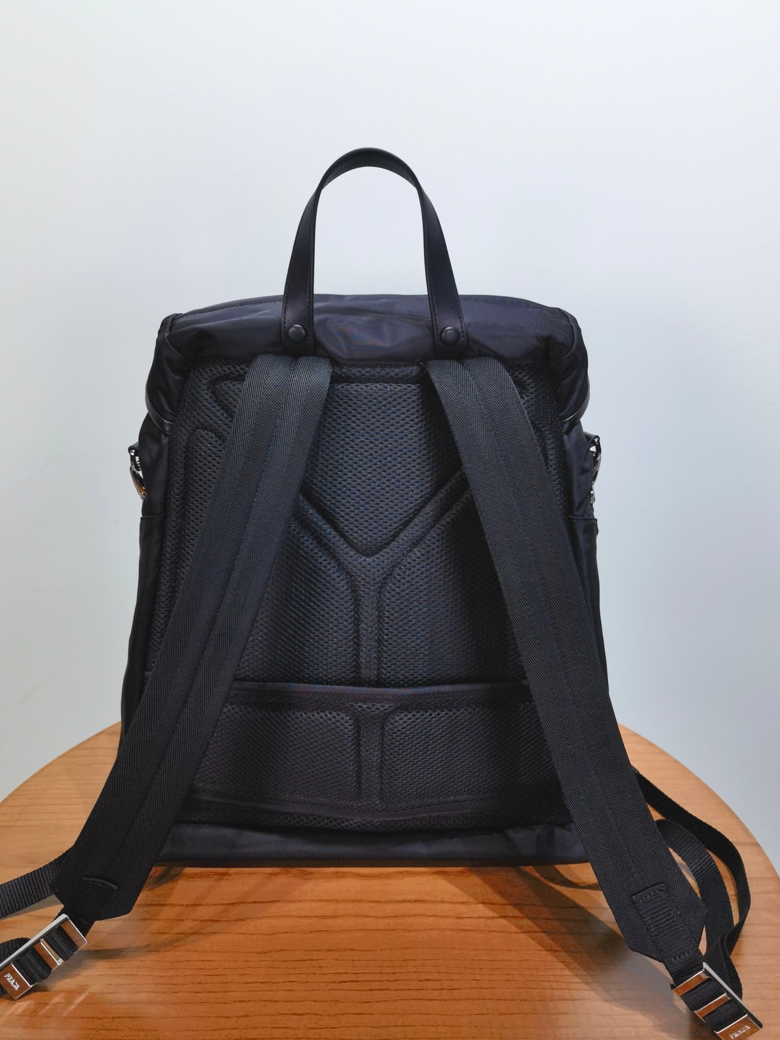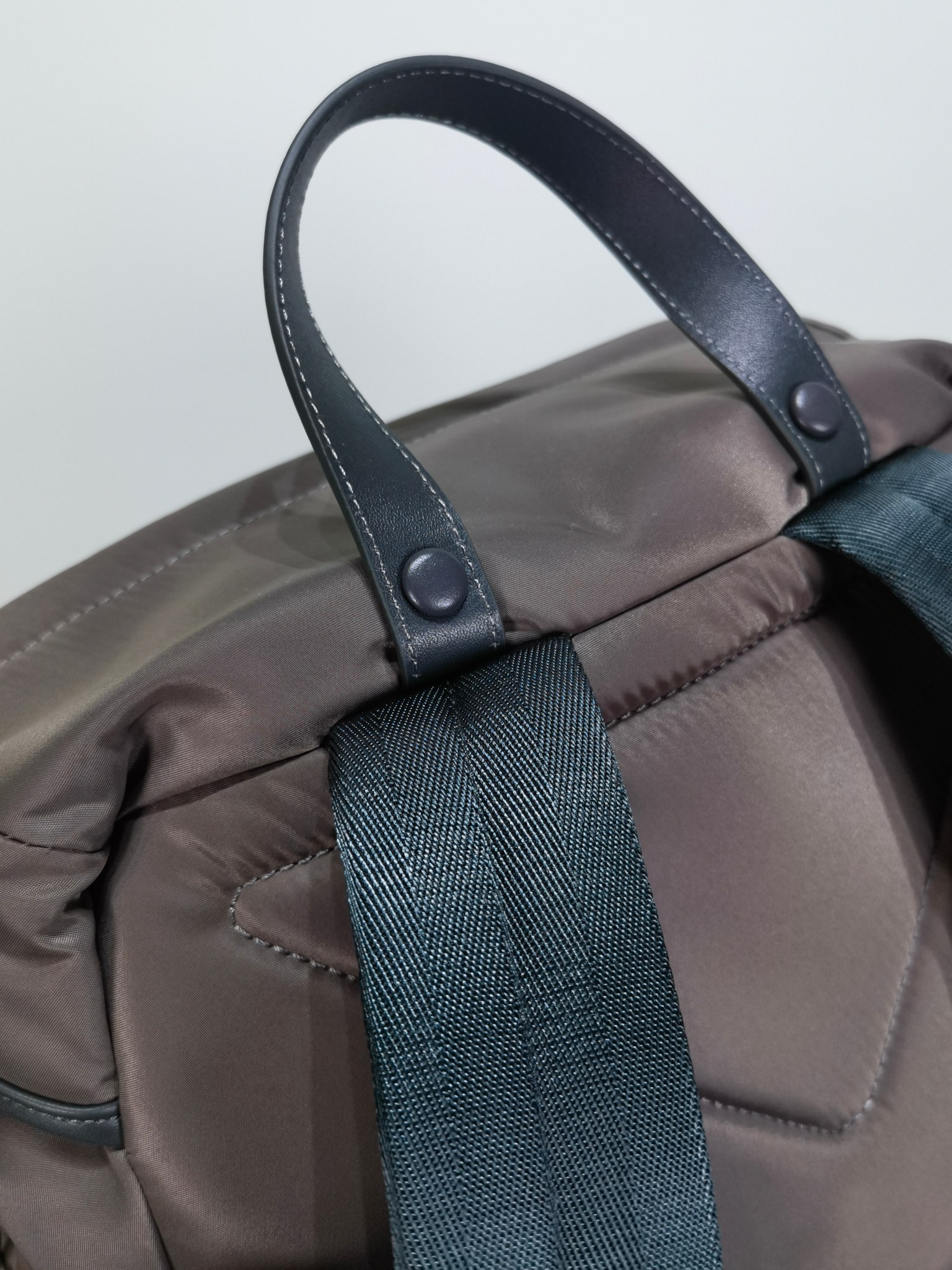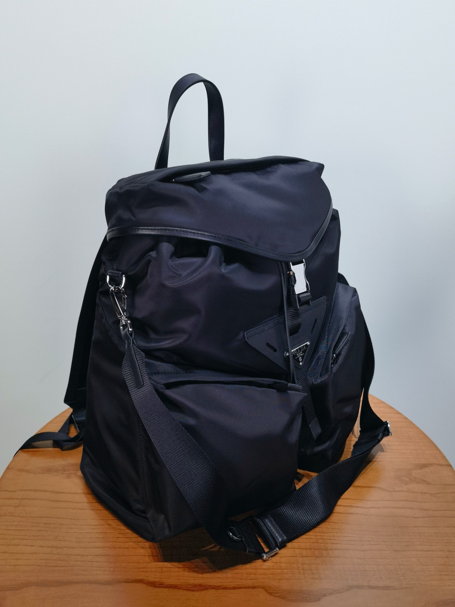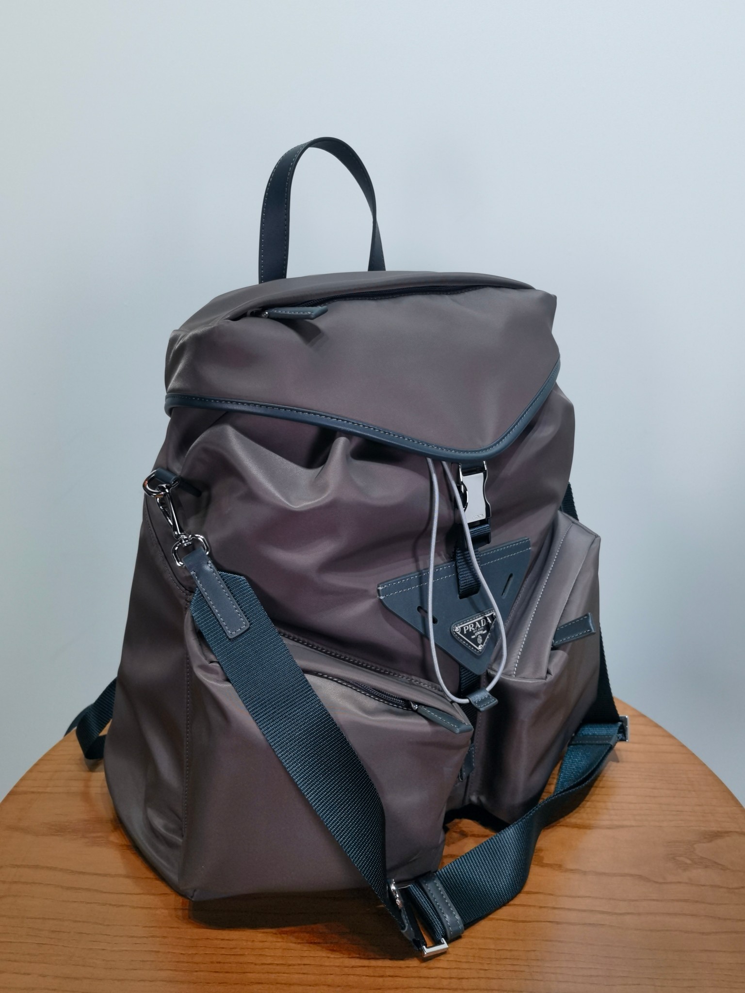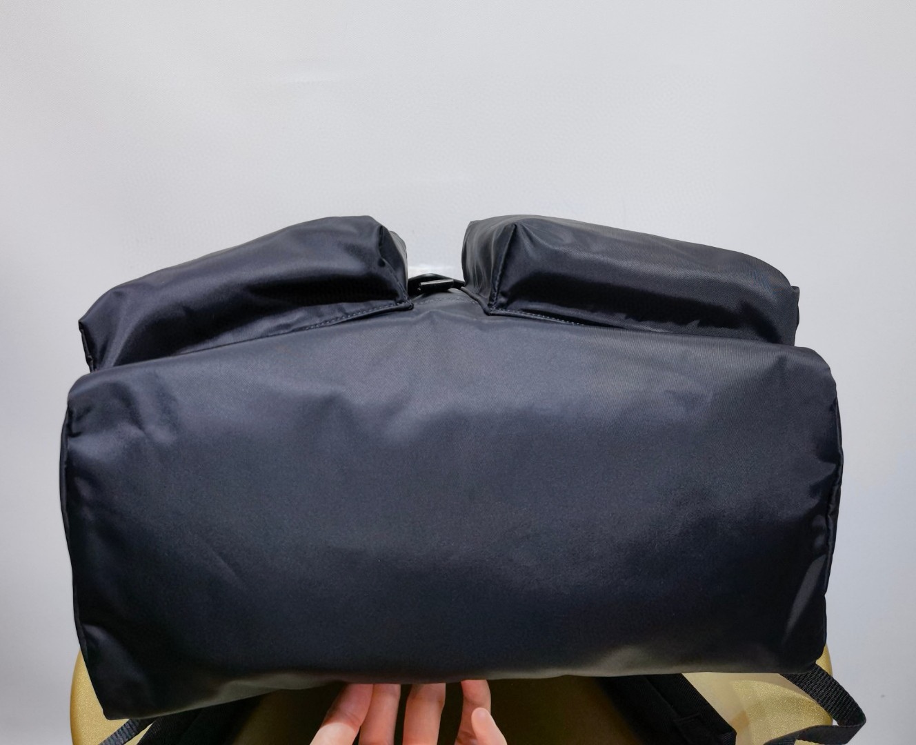 最吸睛的部分就是那個經典三角標,配上中央皮革細節與上層的琺瑯金屬徽標,不浮誇卻非常有辨識度,背上氣場直接加分。