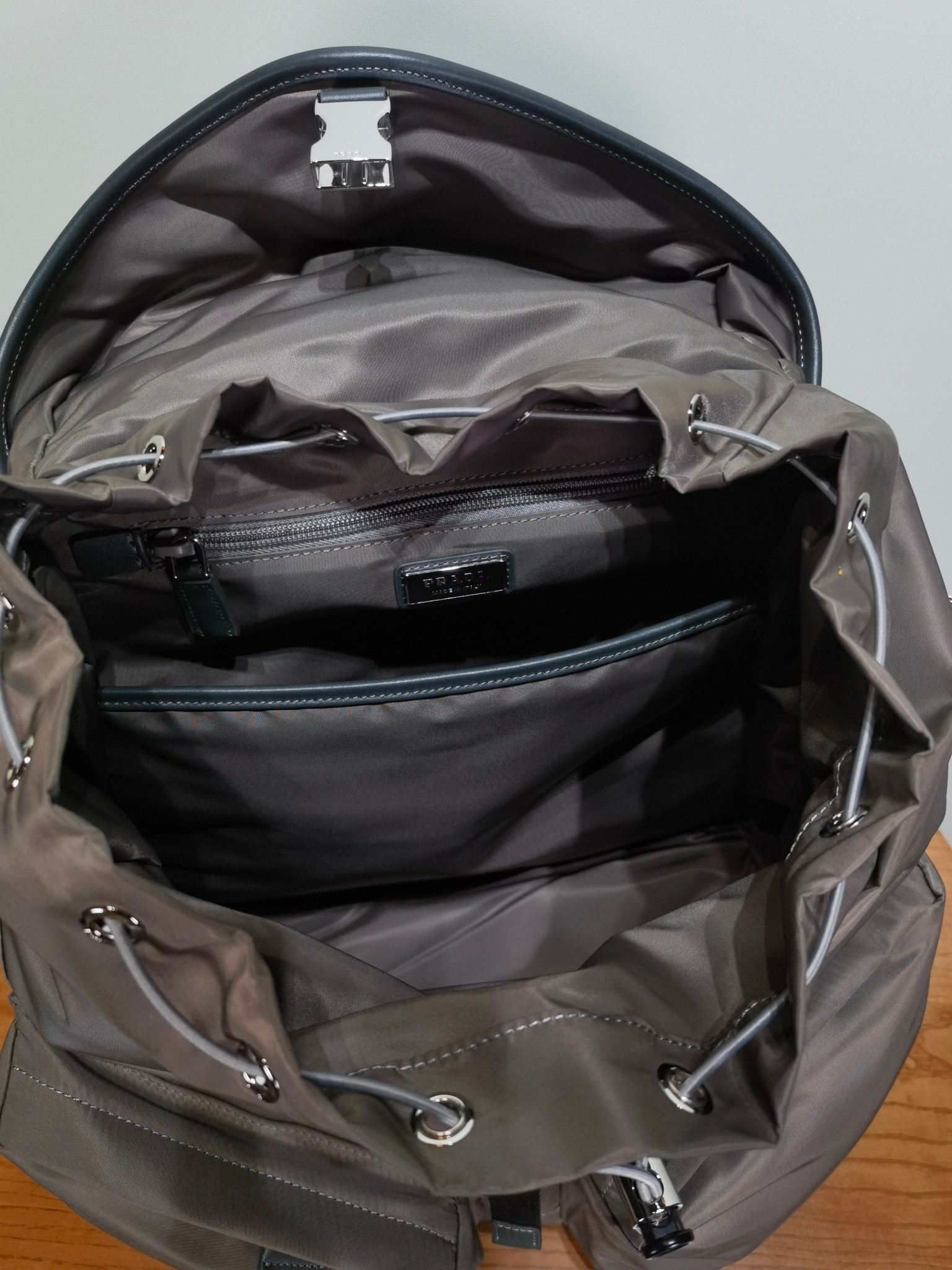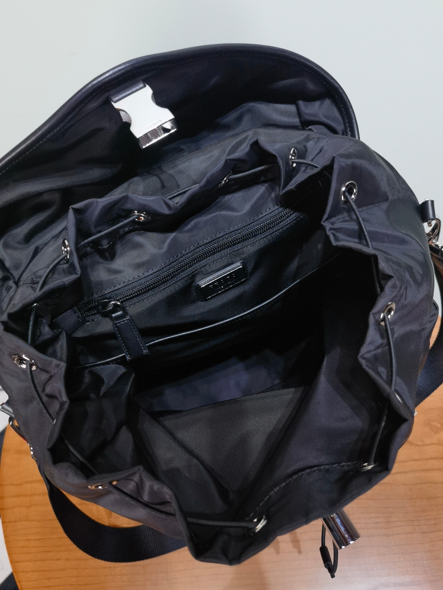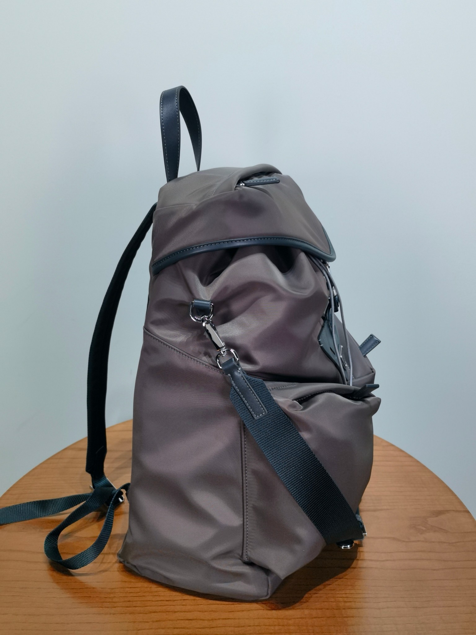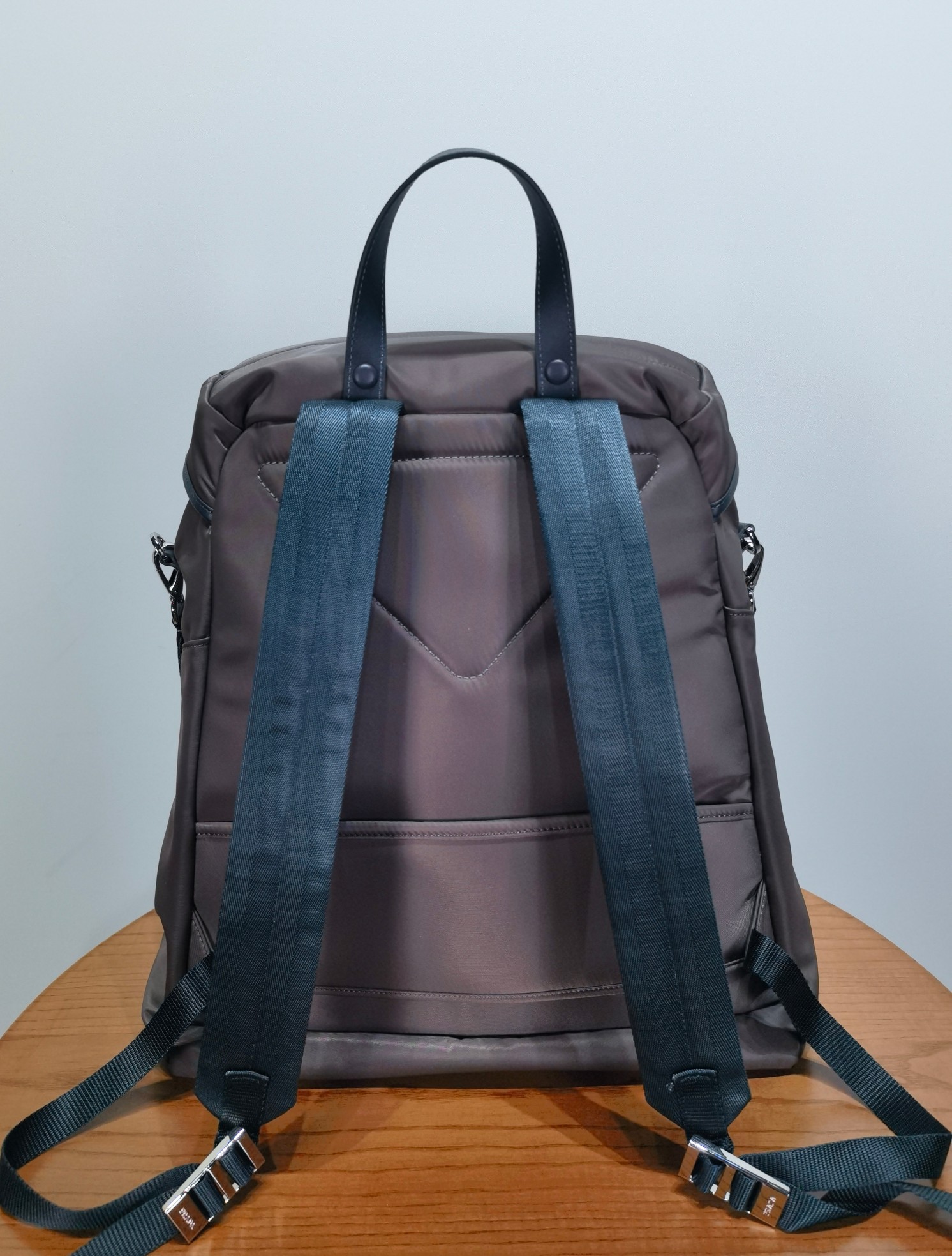 最吸睛的部分就是那個經典三角標,配上中央皮革細節與上層的琺瑯金屬徽標,不浮誇卻非常有辨識度,背上氣場直接加分。