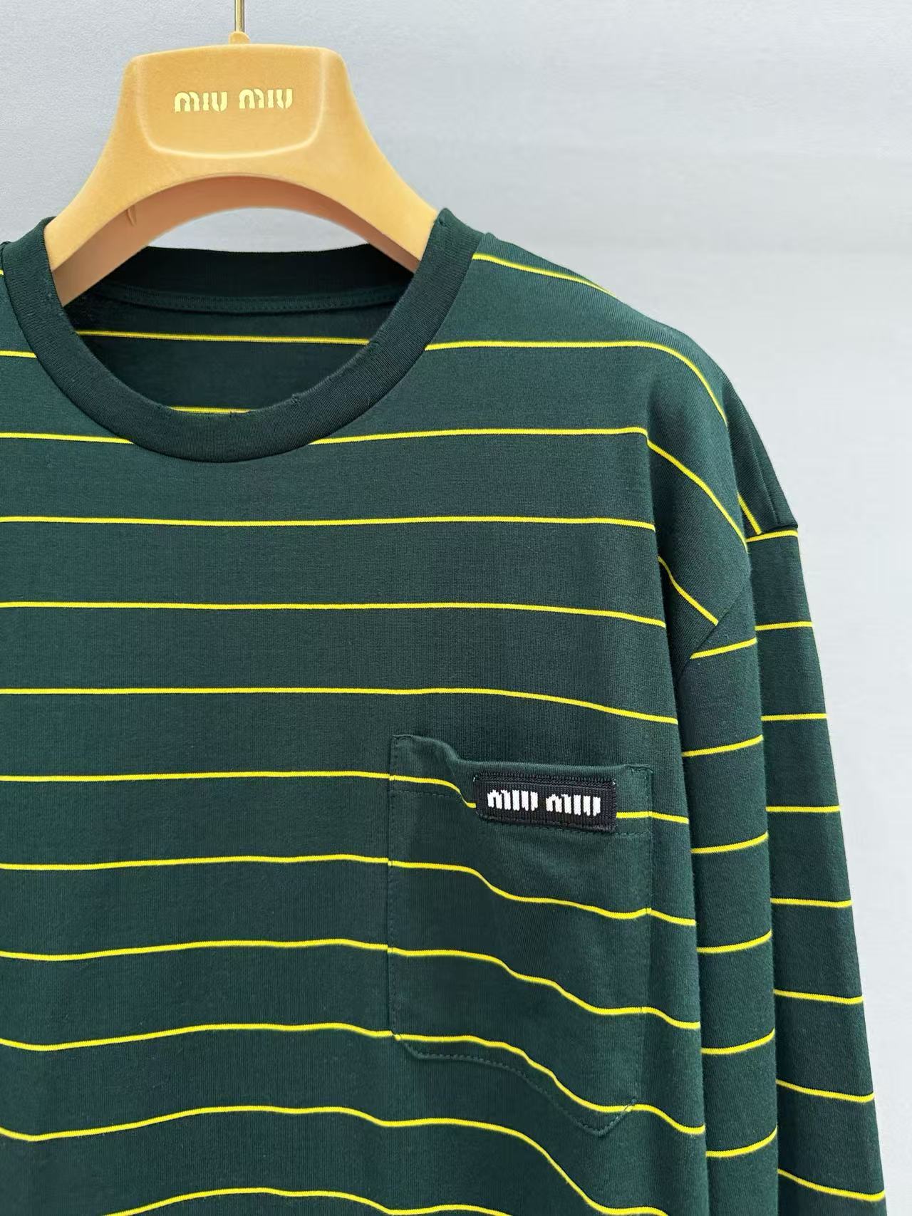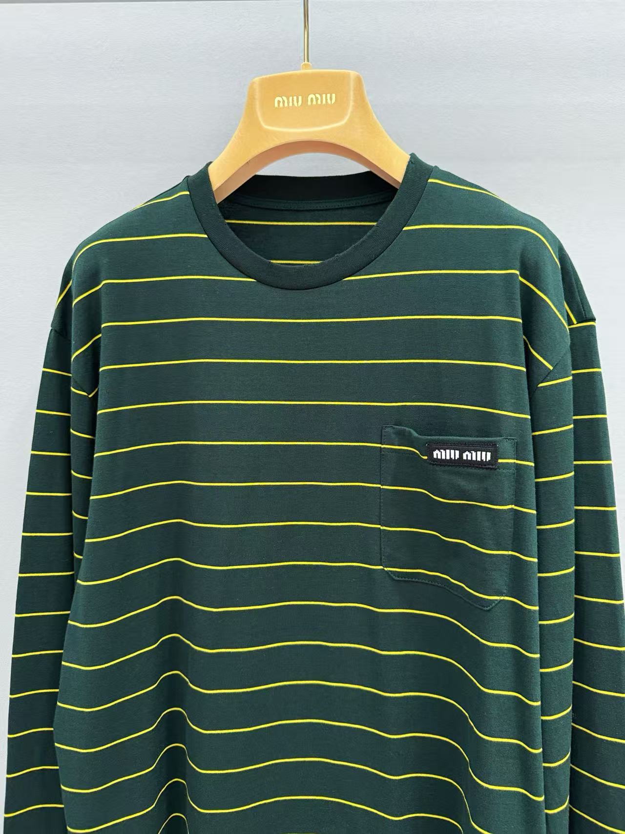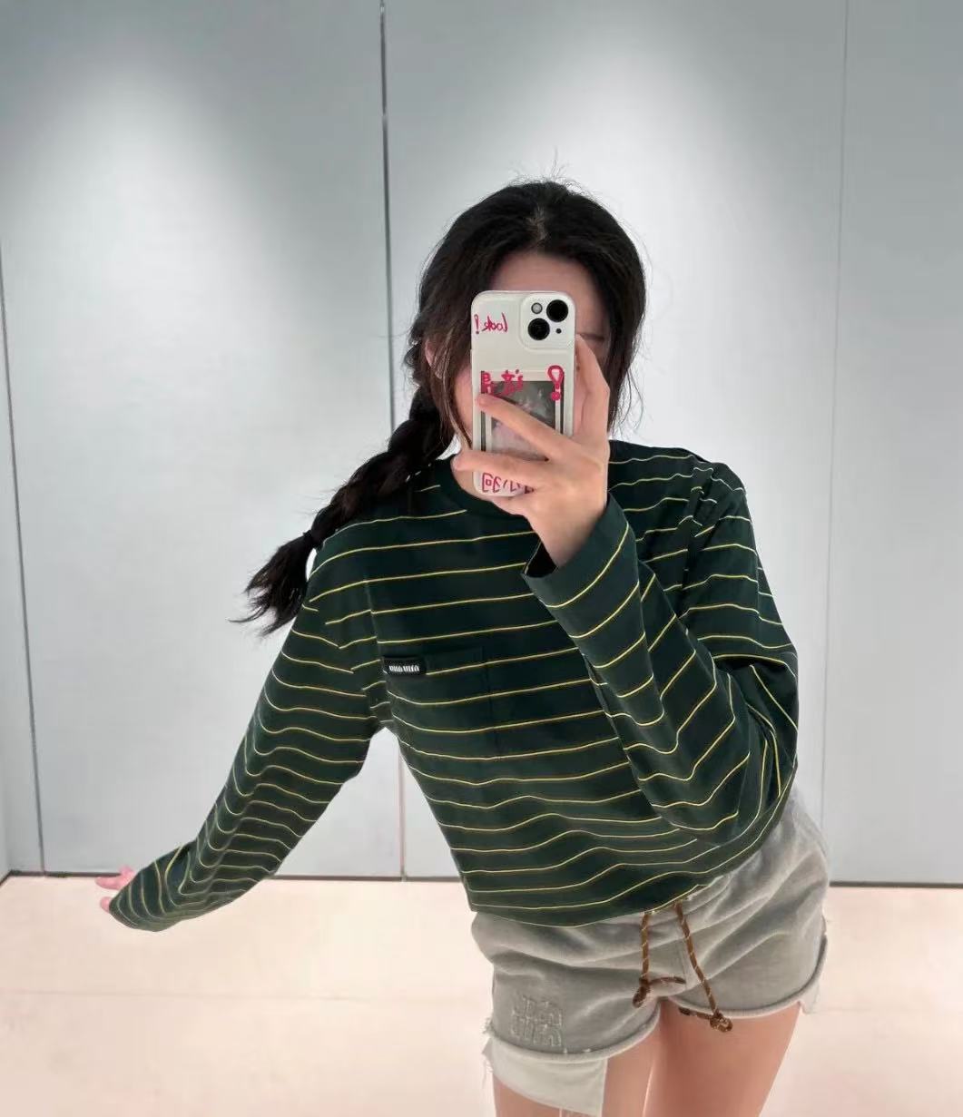 2025早秋 Miu家 綠色條紋長袖|秋冬爆紅單品