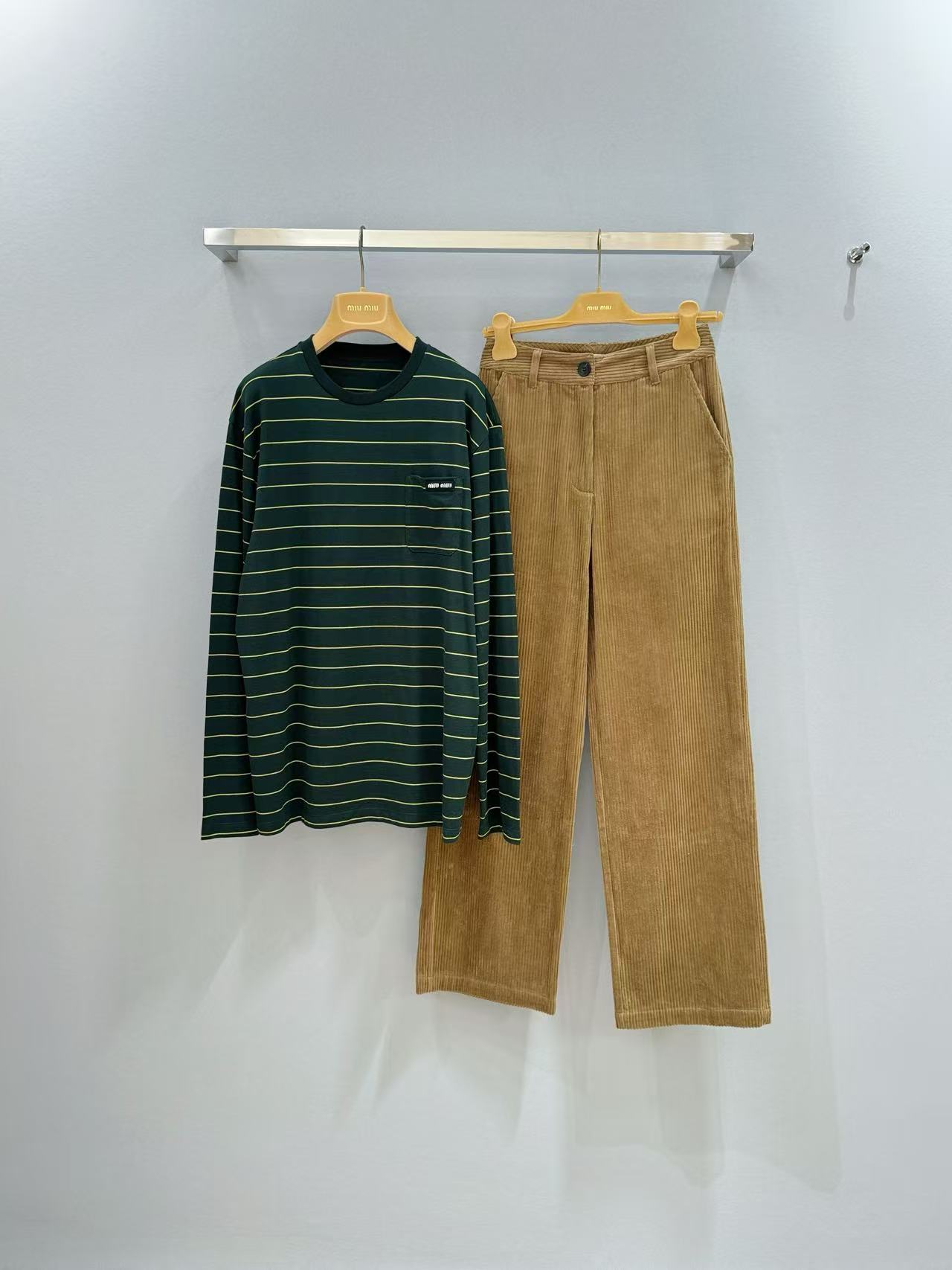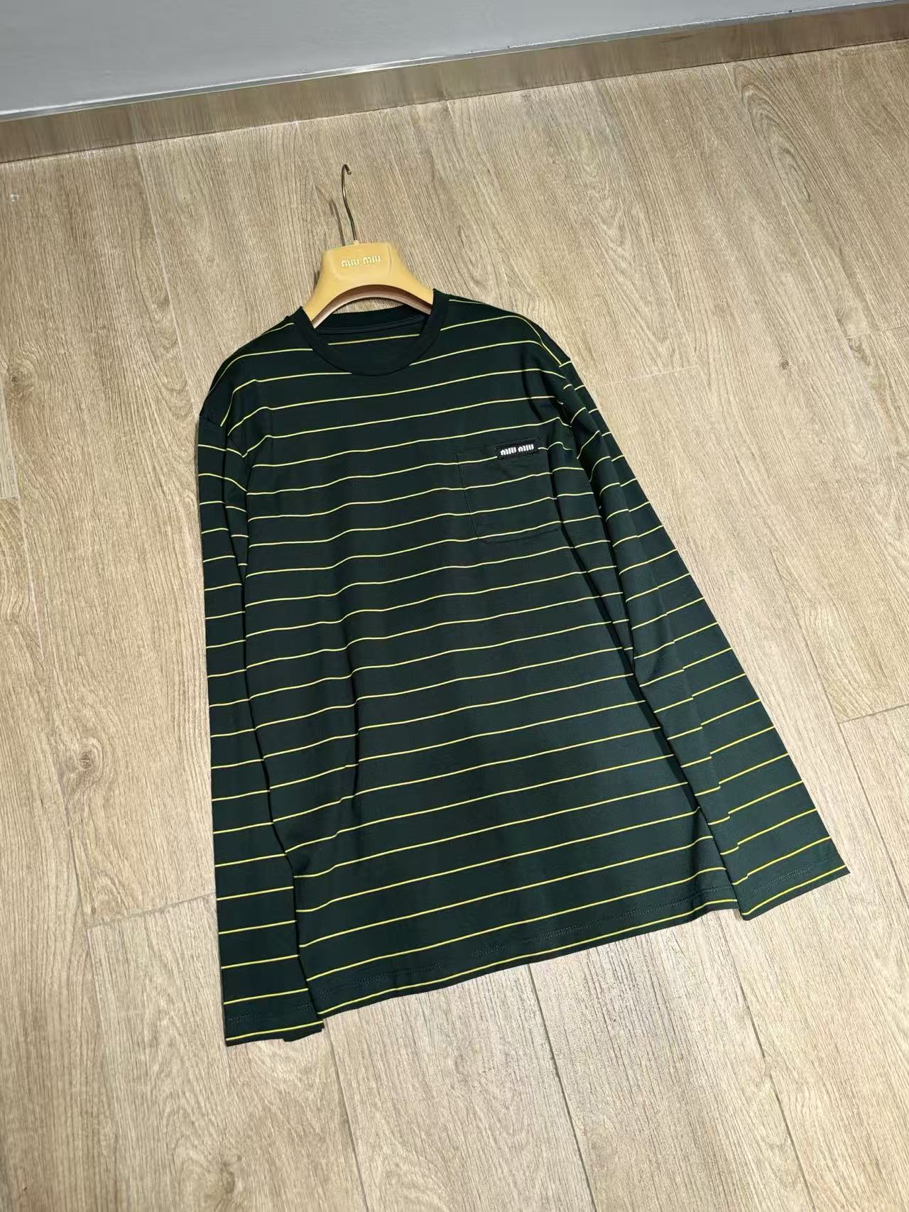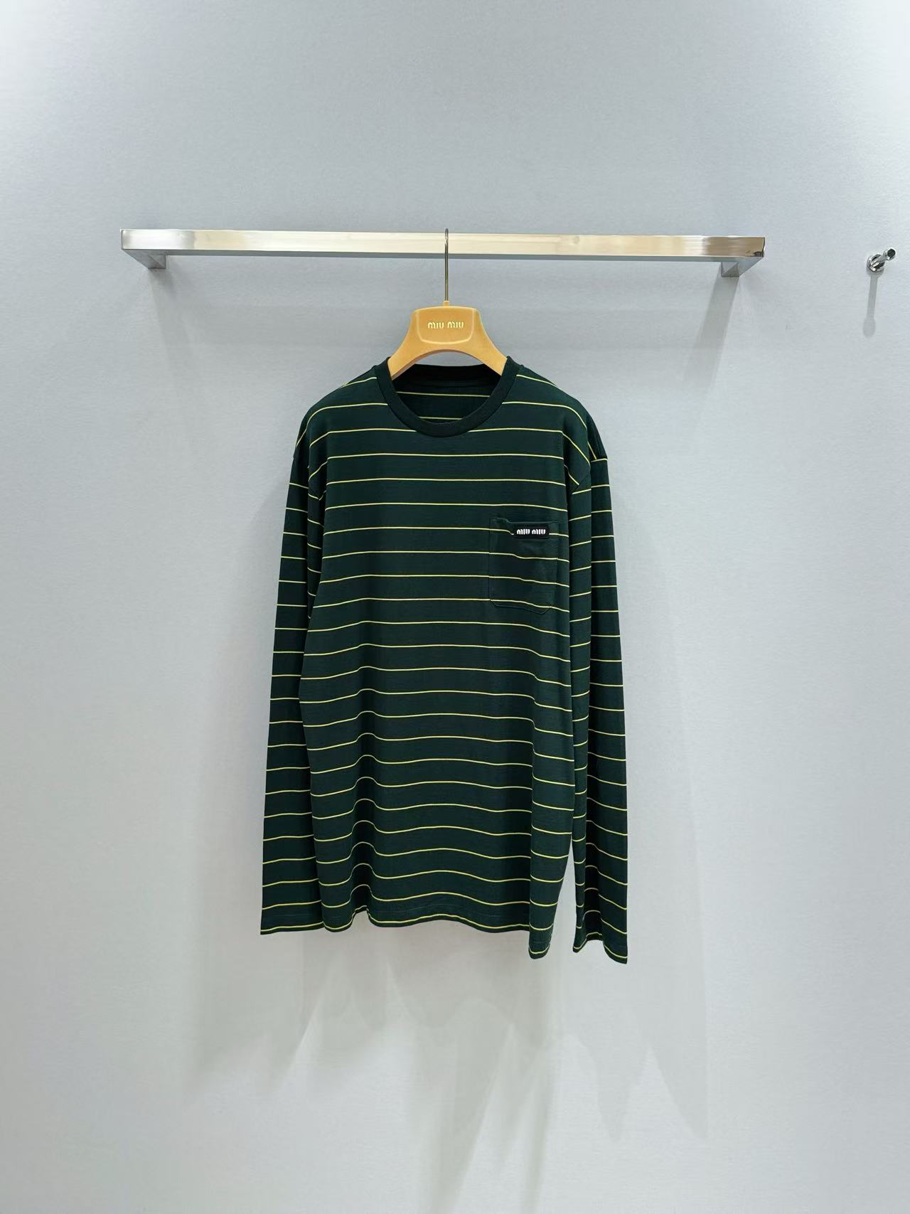 2025早秋 Miu家 綠色條紋長袖|秋冬爆紅單品