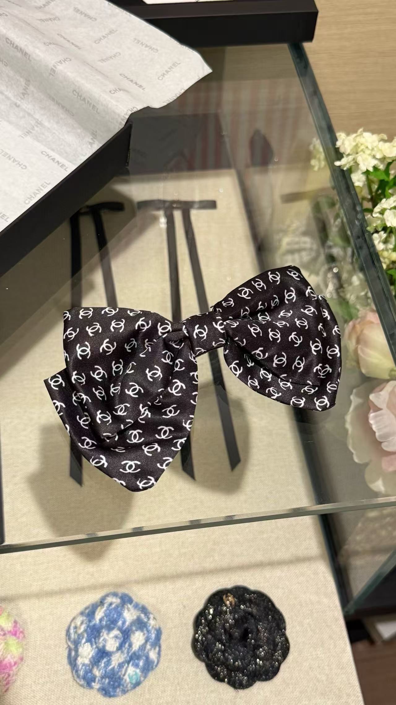 2025春夏 C家 緞面蝴蝶結雙 C 髮夾