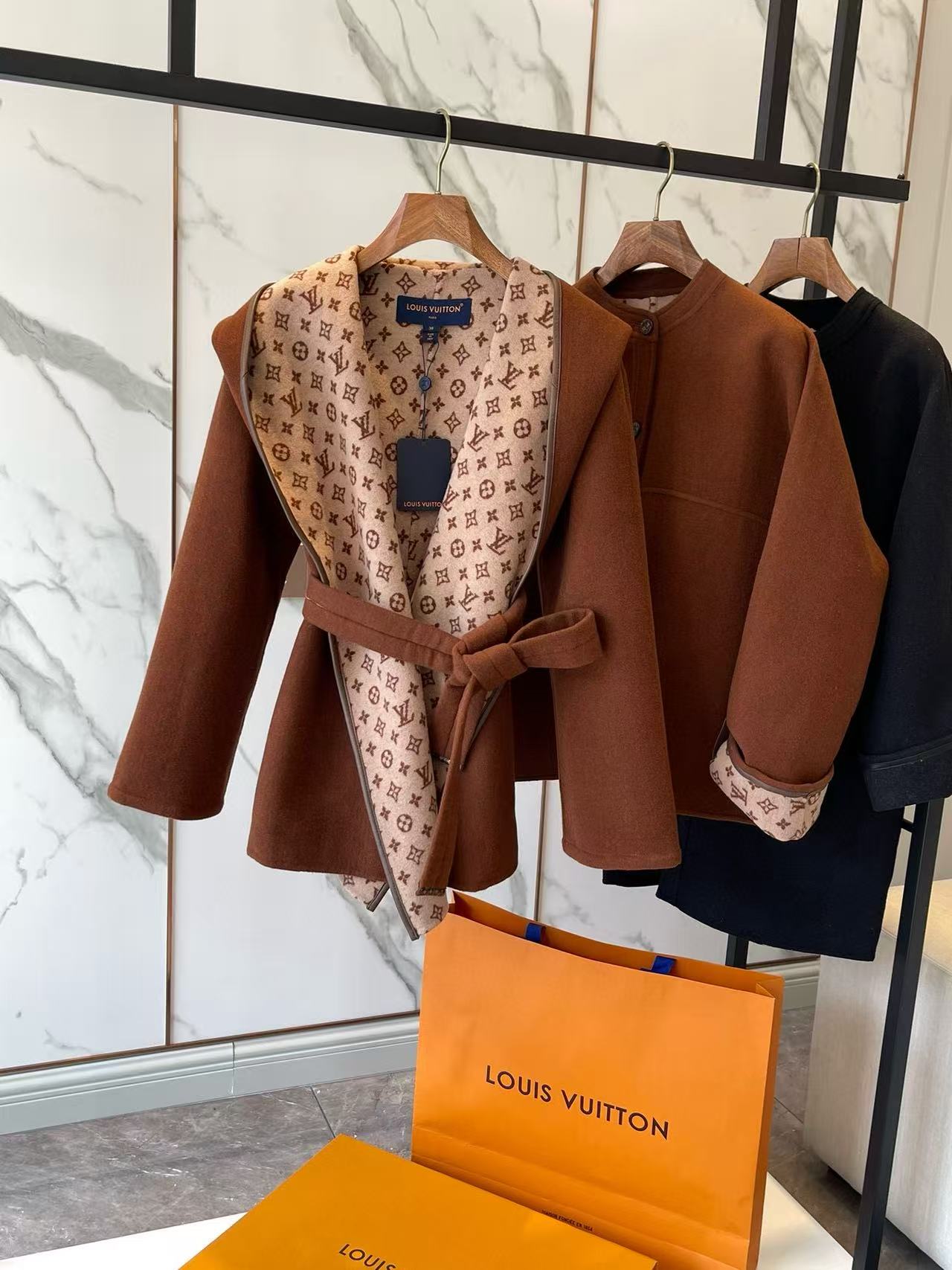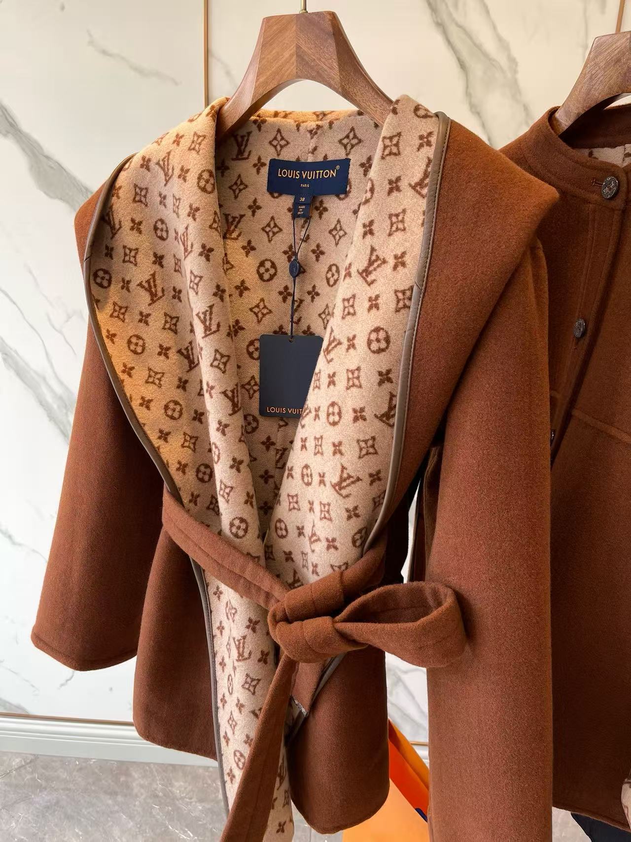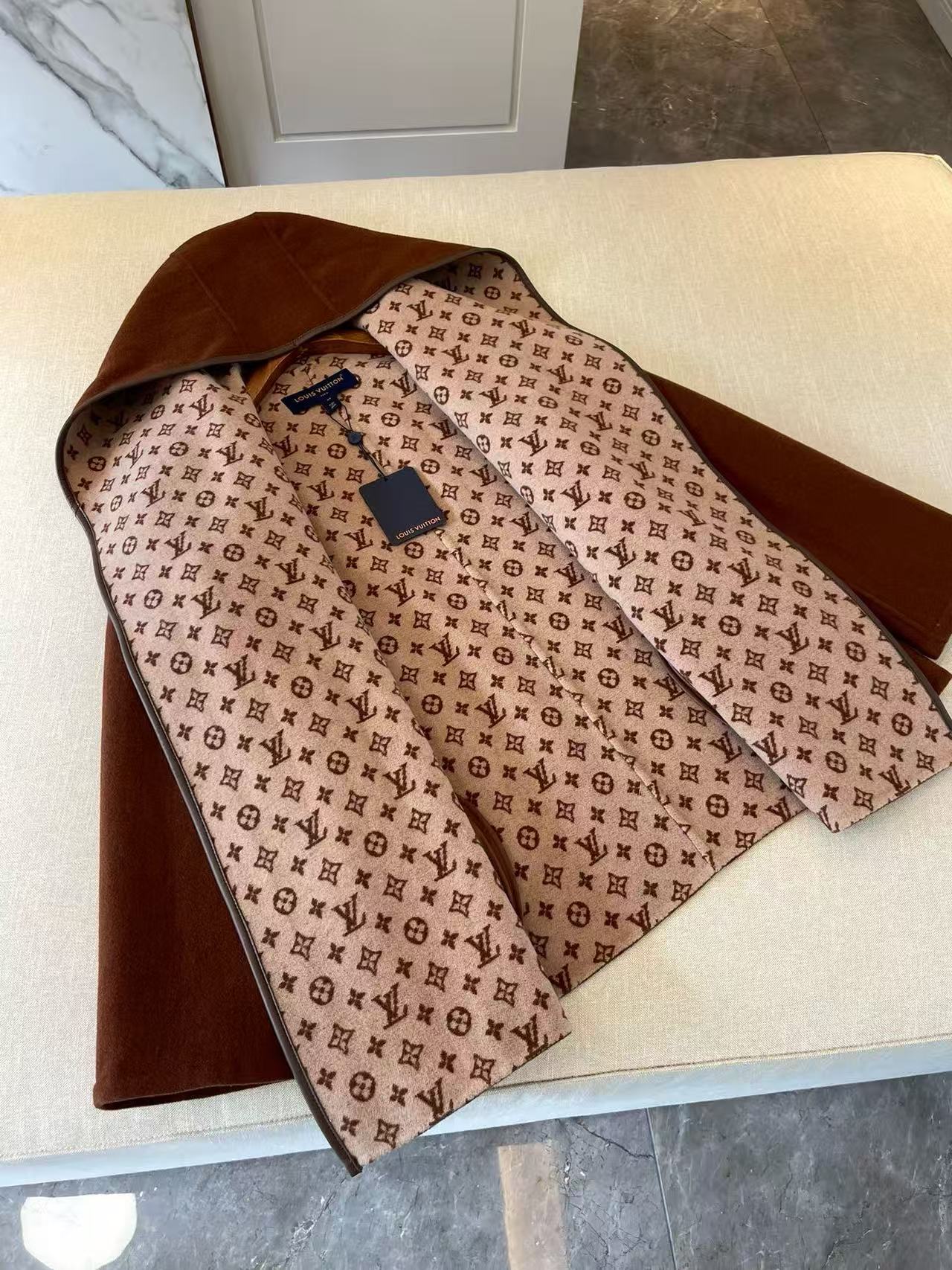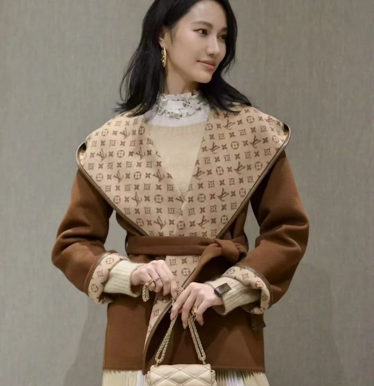 這款大衣的材質真的非常講究,使用了雙面羊毛,主面料是 99%的綿羊毛和1%的桑蠶絲。摸起來溫潤、滑順又保暖,完全是那種頂級精品的奢華觸感。一面是經典的 Monogram 圖案,另一面則是簡約的素面,讓你隨心所欲地搭配不同風格,真的是太划算了!