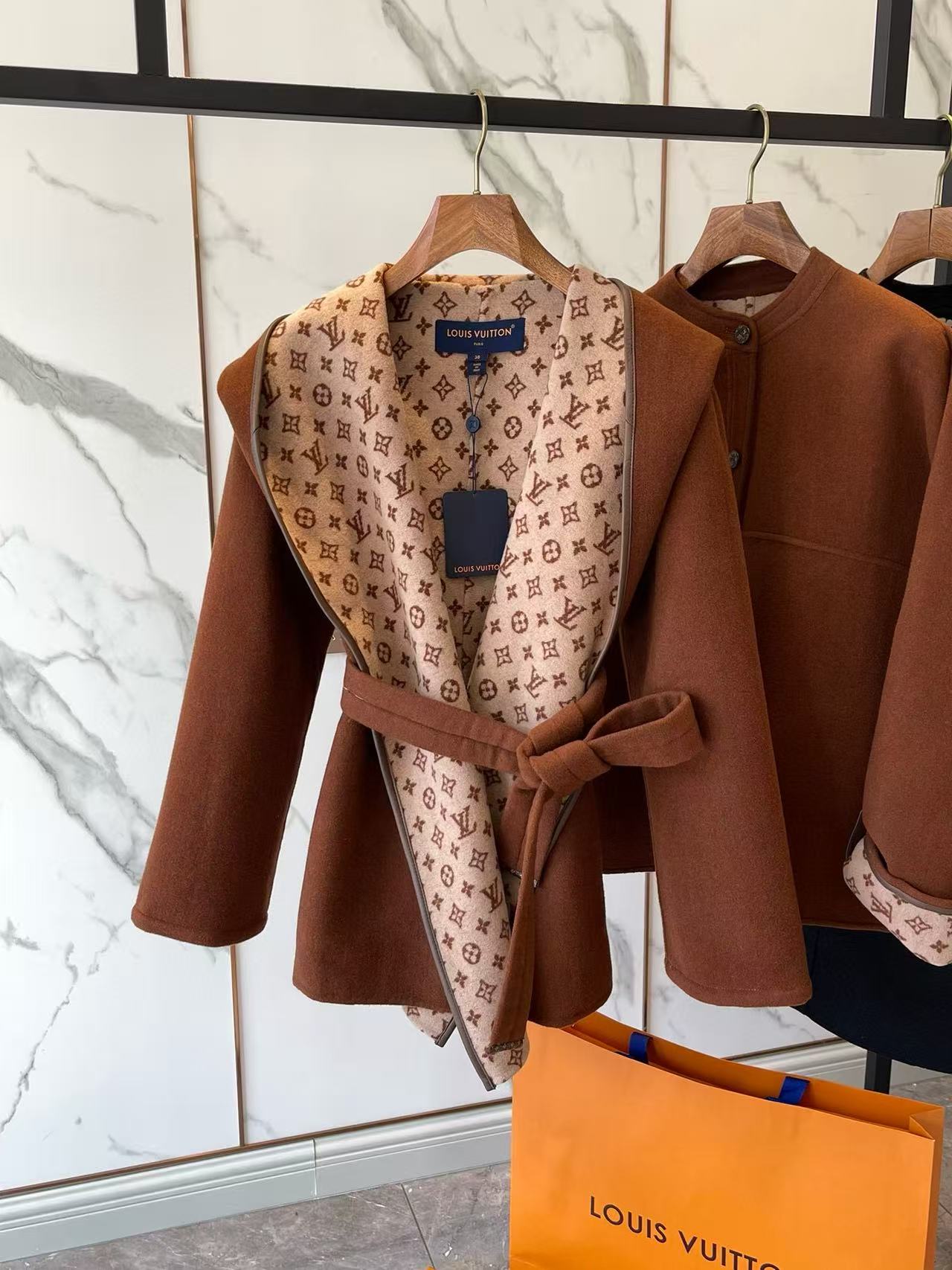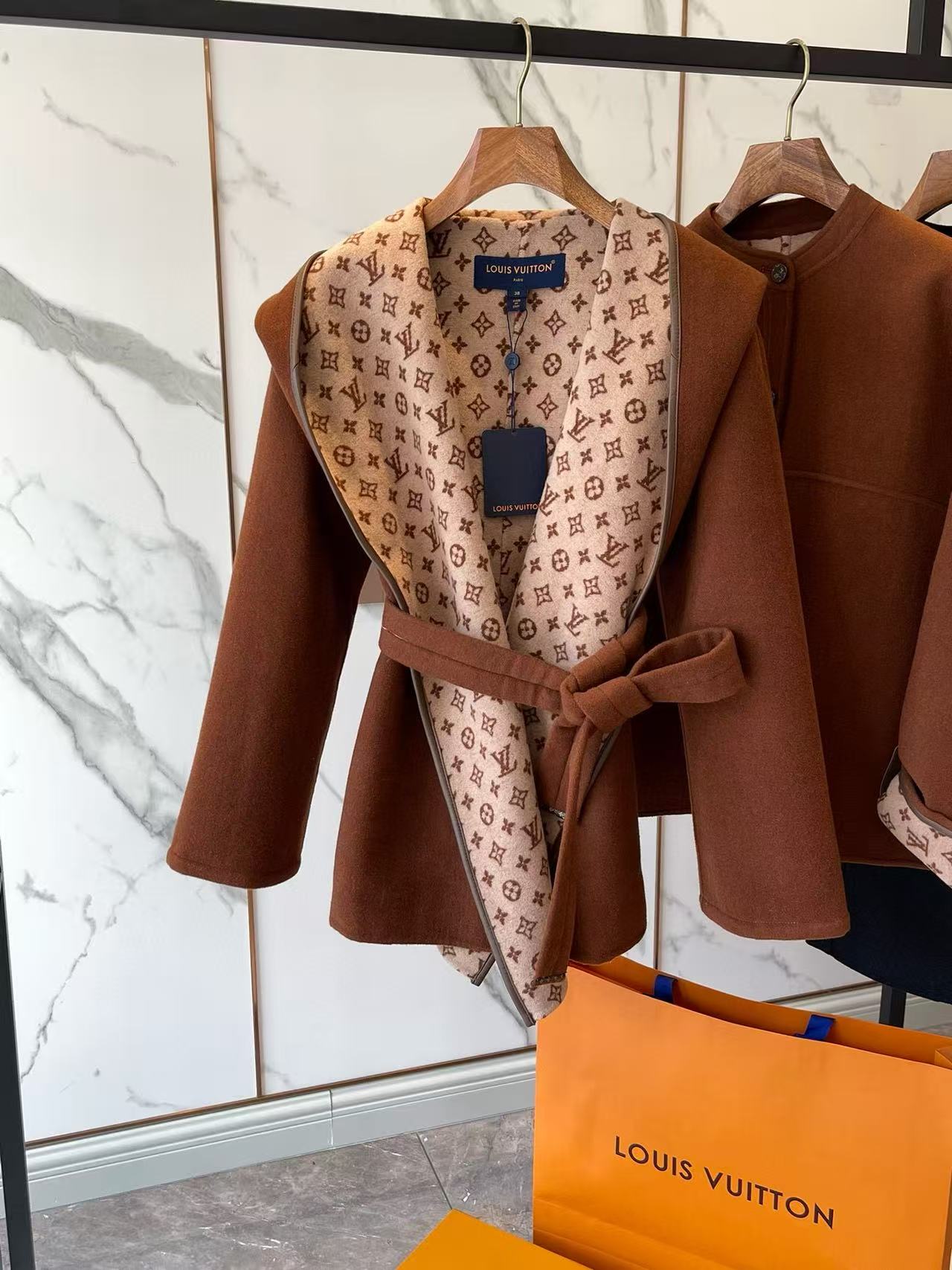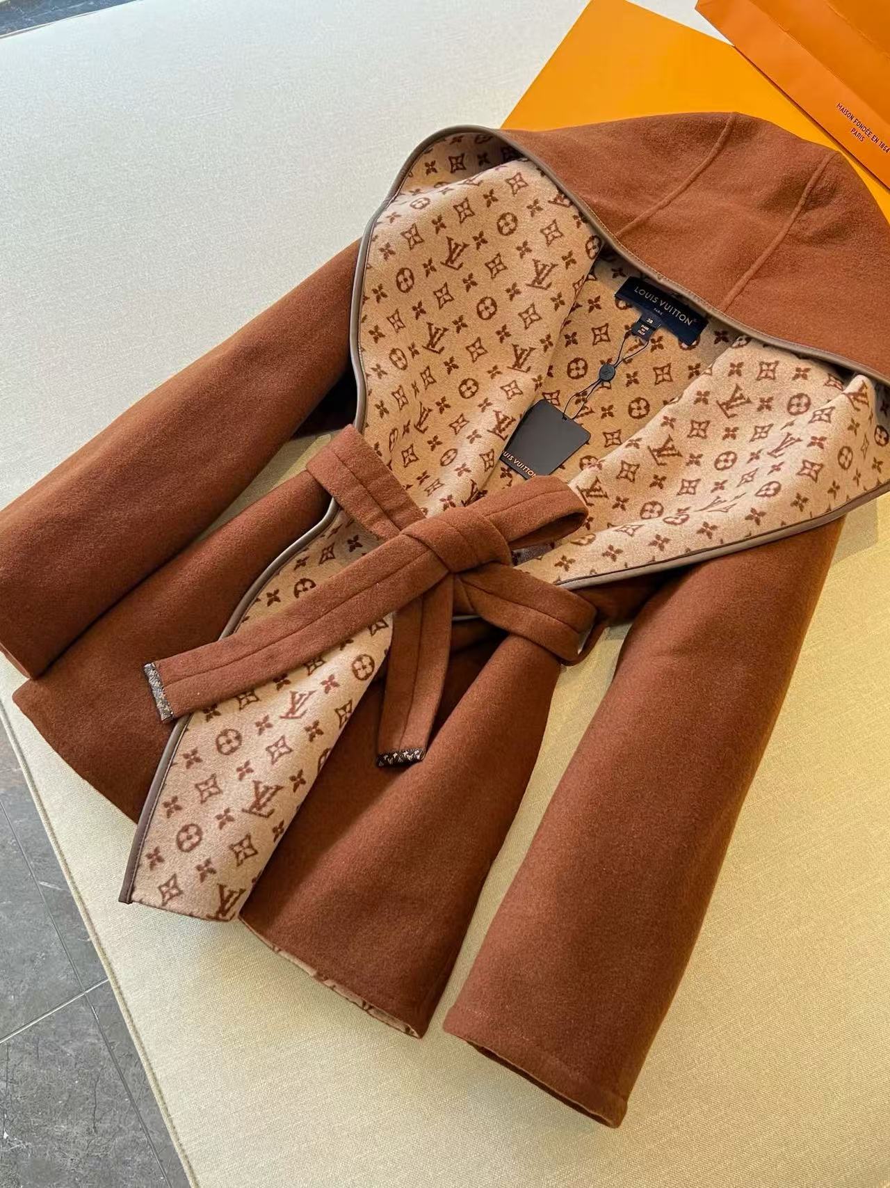 2025早秋新品 L家 小老花圍裹式連帽短款大衣