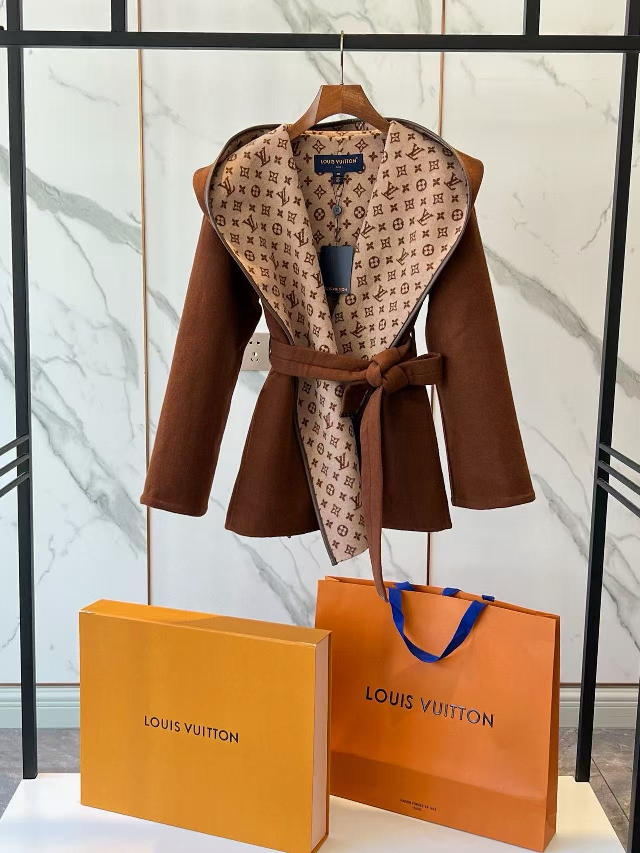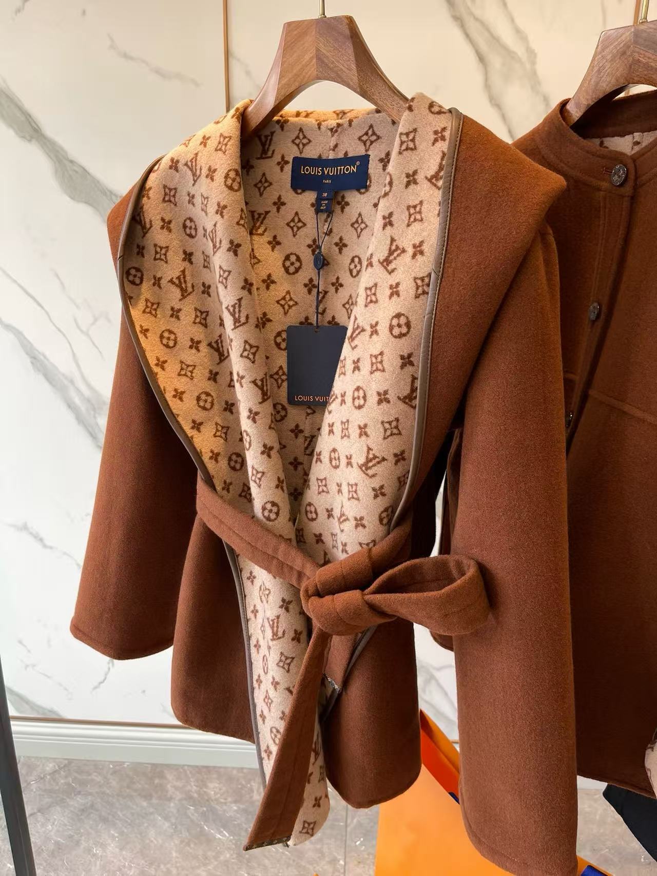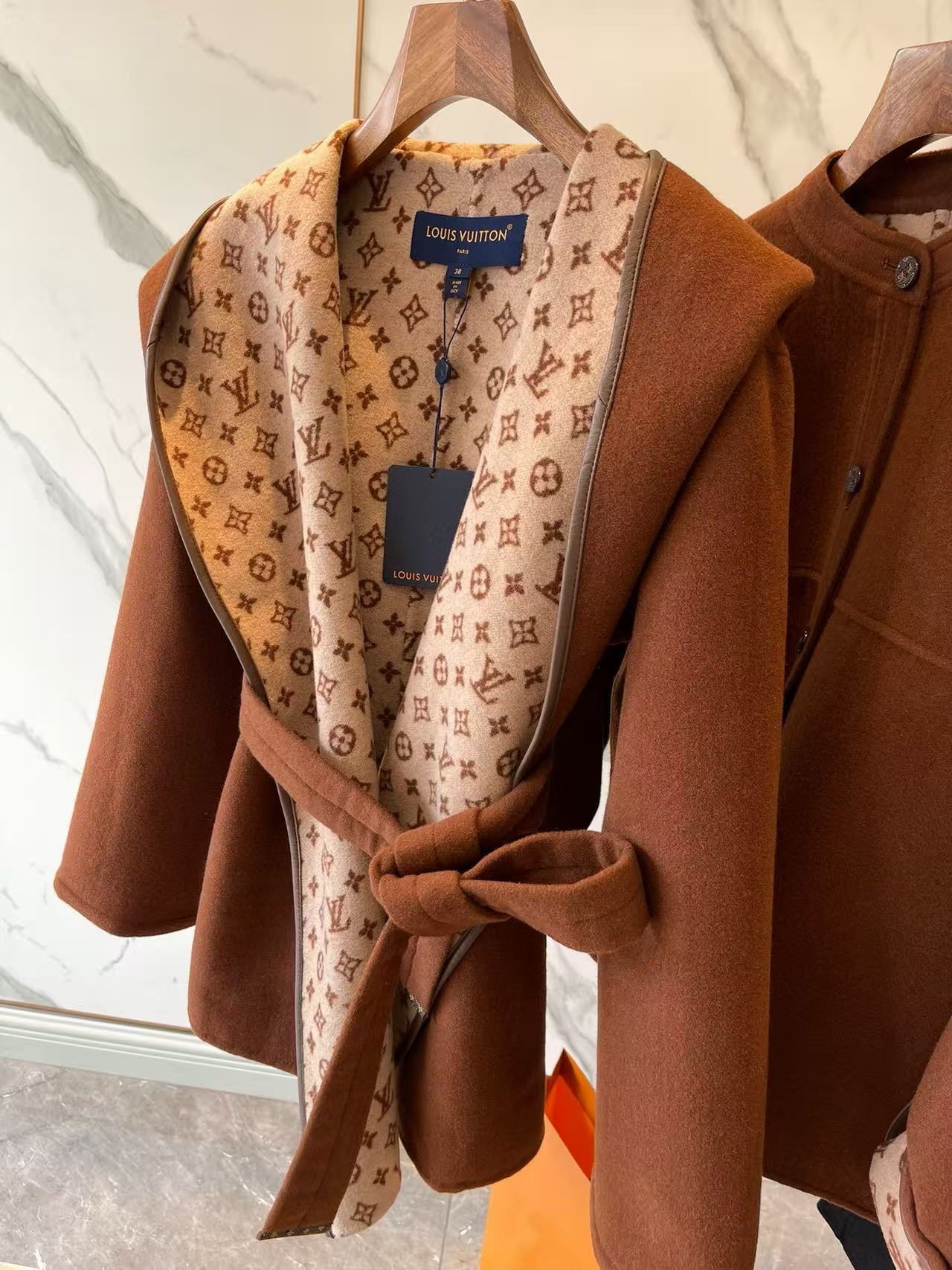 2025早秋新品 L家 小老花圍裹式連帽短款大衣
