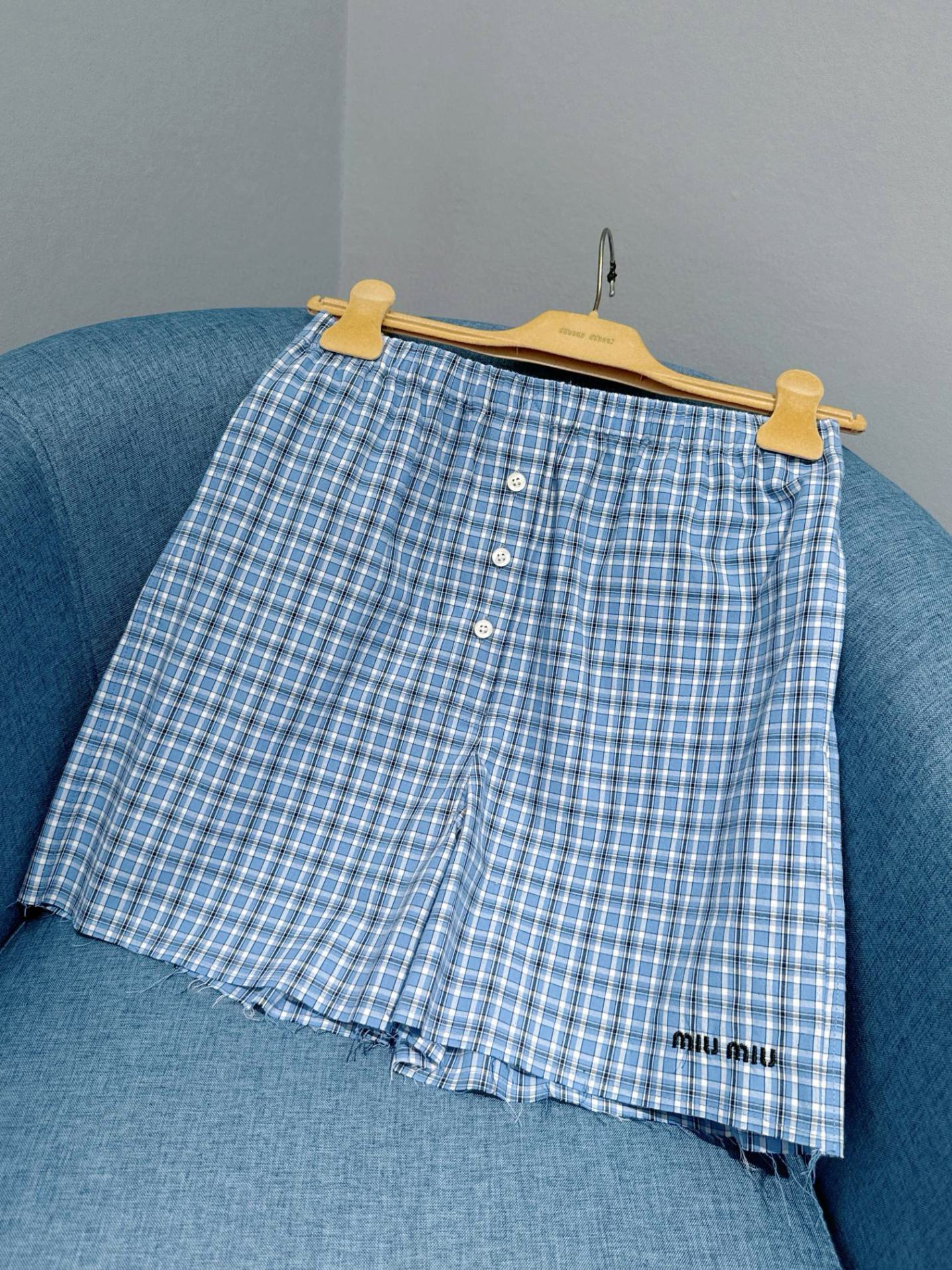 2025早春 MIU家 藍色格紋短褲 復古又百搭,打造你的多變風格!