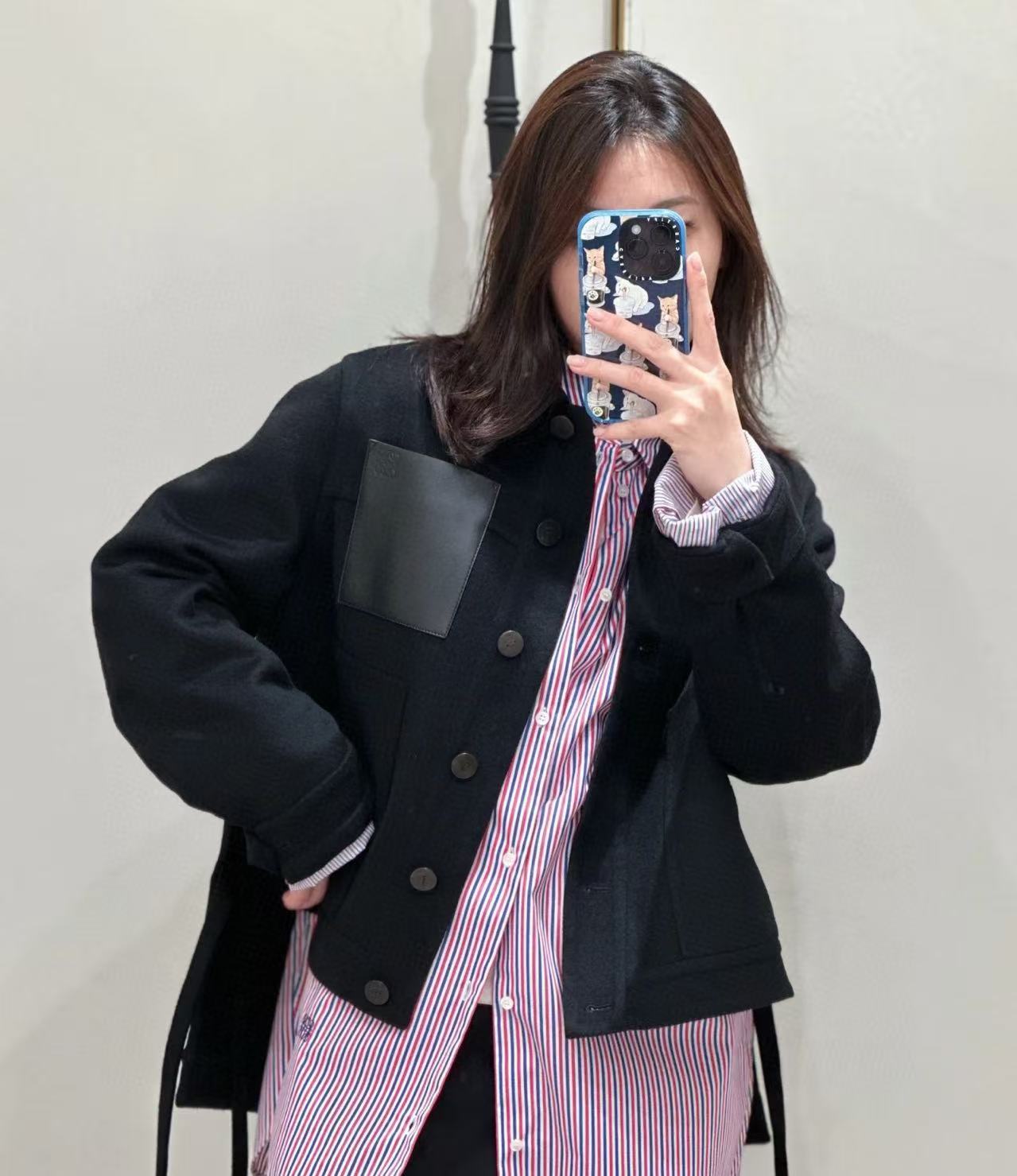 這件 LOEWE 外套超有型!經典前短後長剪裁,率性又帶點隨性感,不管是單穿或疊穿都很舒適。