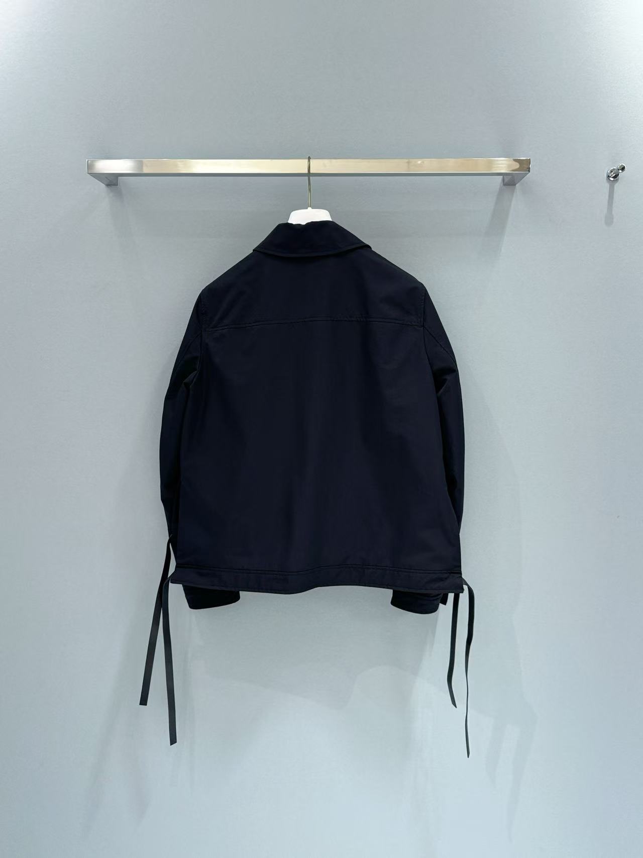 全黑尼龍材質輕盈不沉重,翻領工裝風設計,利落剪裁非常顯氣場,胸前 Anagram 壓紋皮革貼袋更是畫龍點睛的細節。