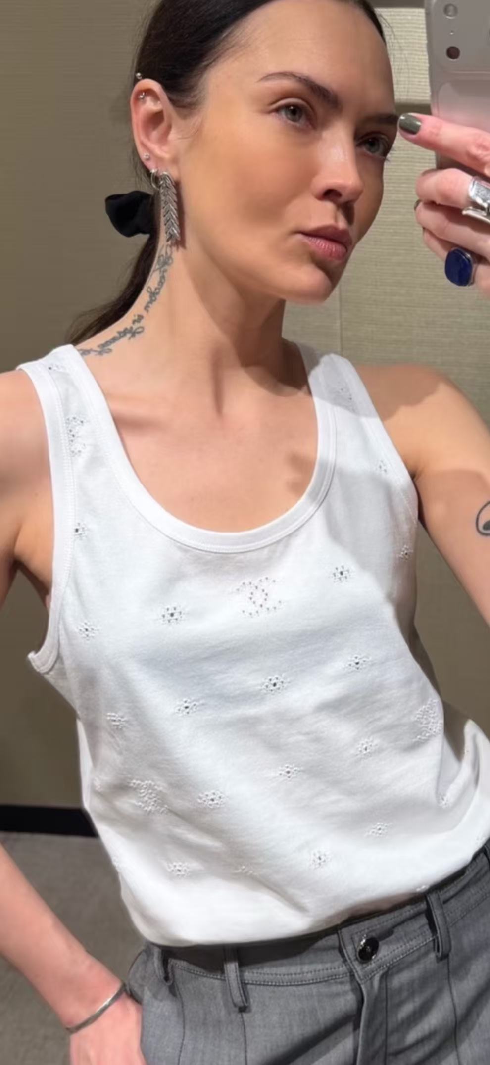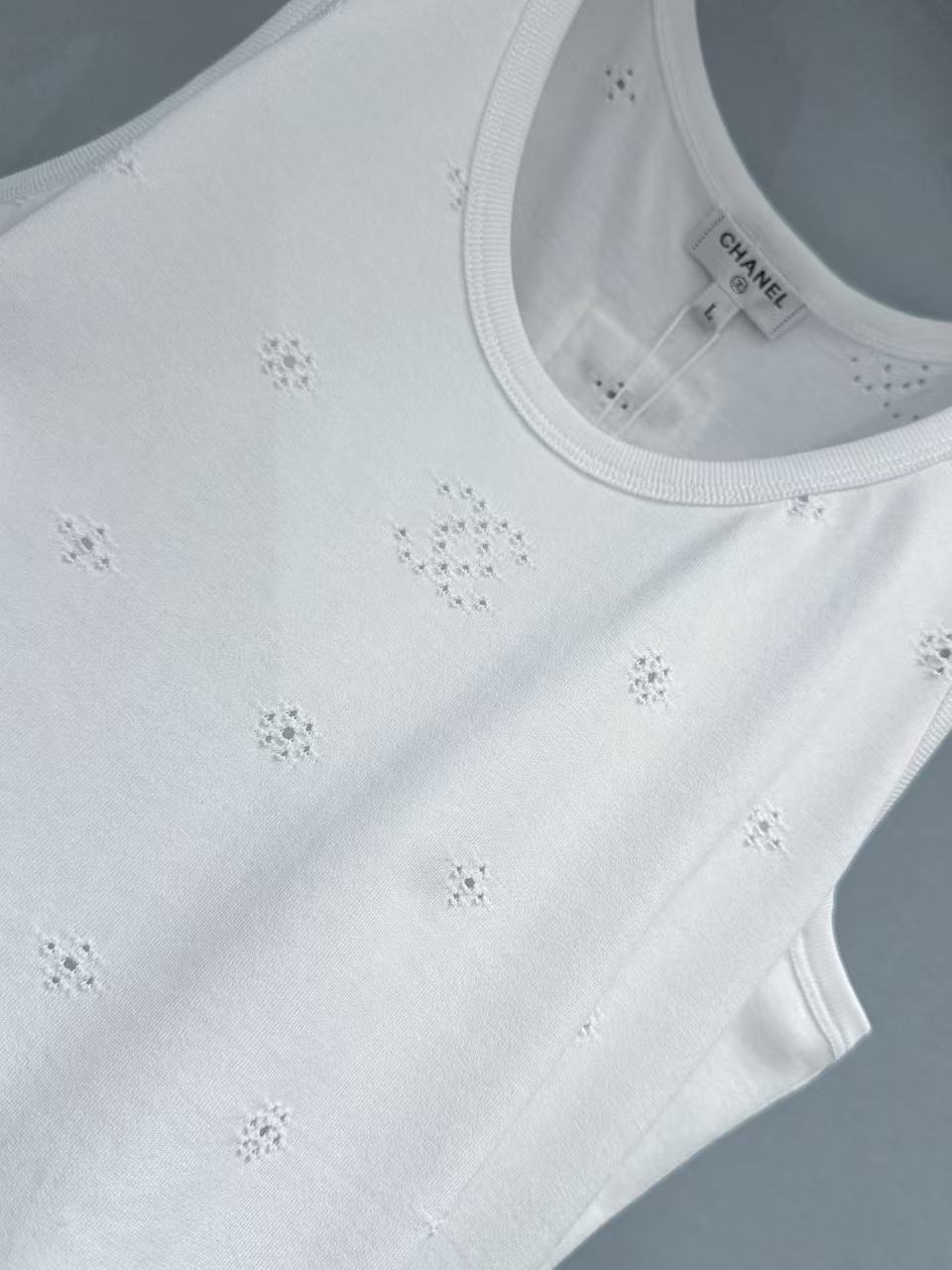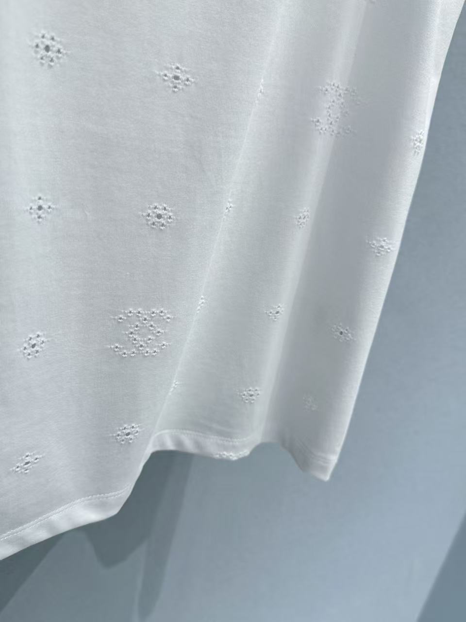 全幅的鏤空花紋分布均勻且富有層次,能完美打破純白 T 恤的單調感。