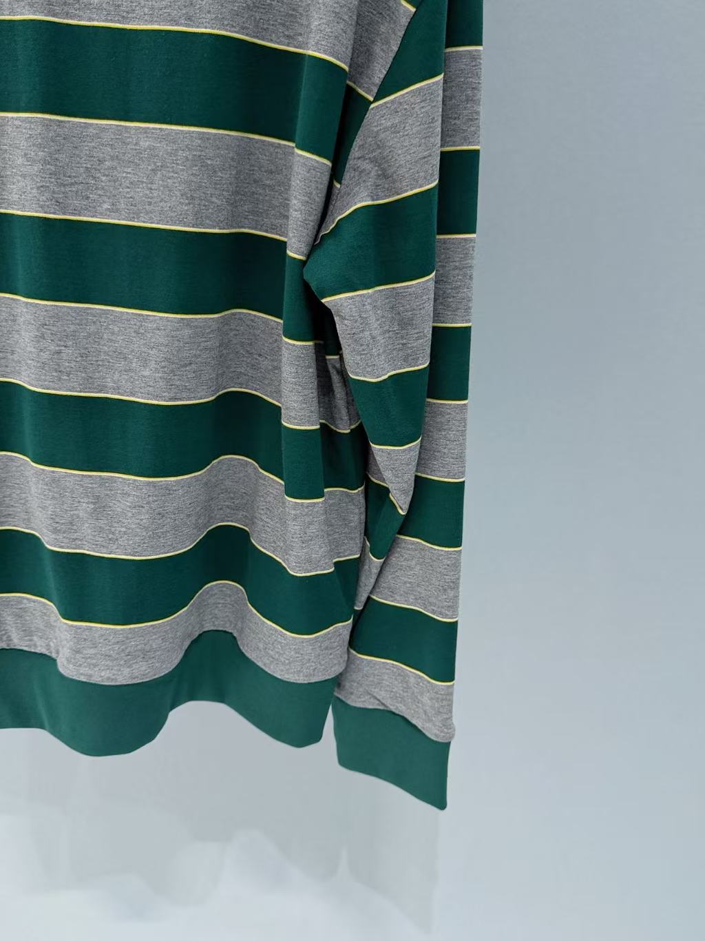 復古墨綠配上柔和煙灰條紋,經典中帶層次,再點綴細閃的淺黃線條,基礎款瞬間變得很有細節感,不會單調又超級顯貴。