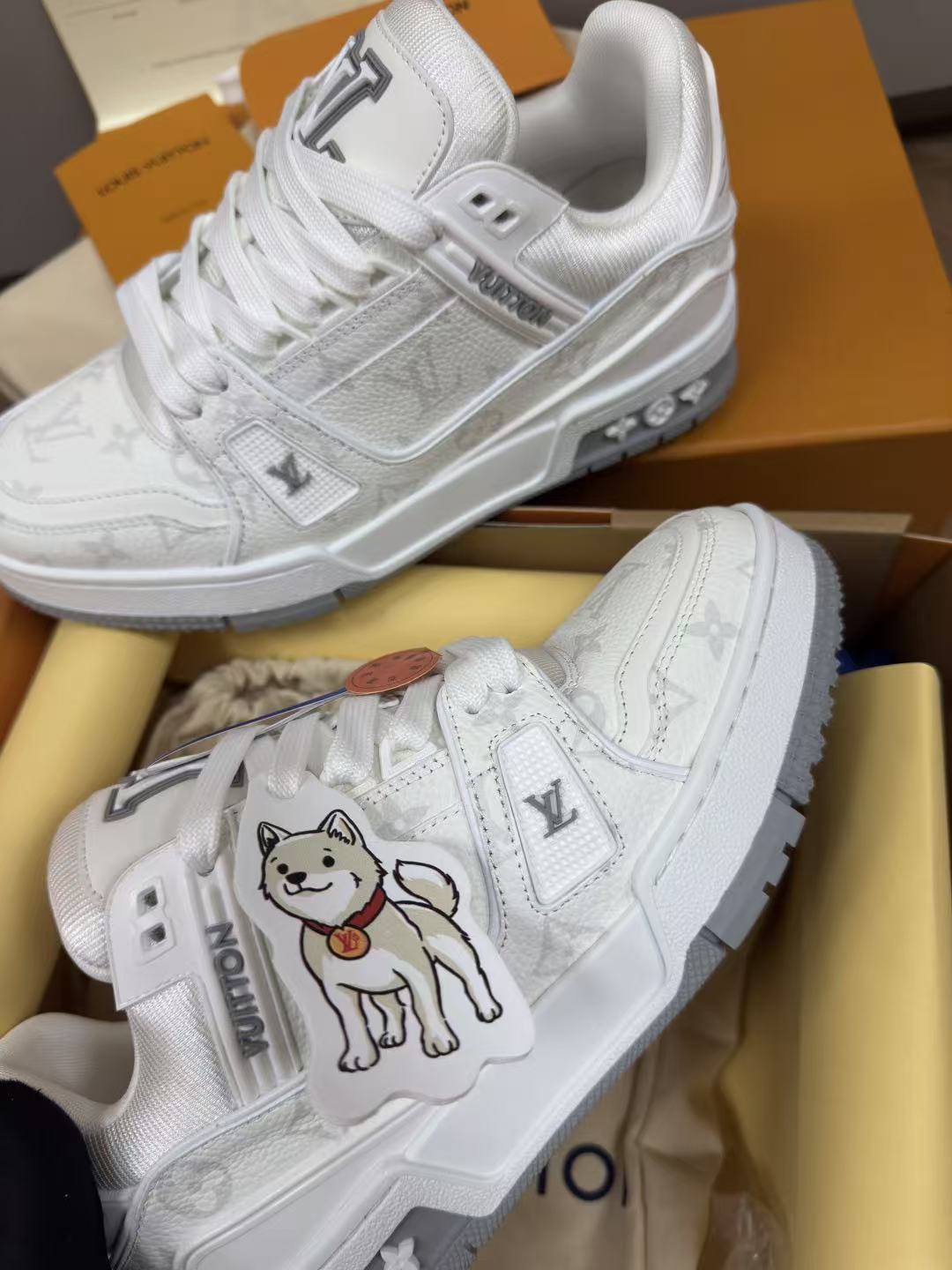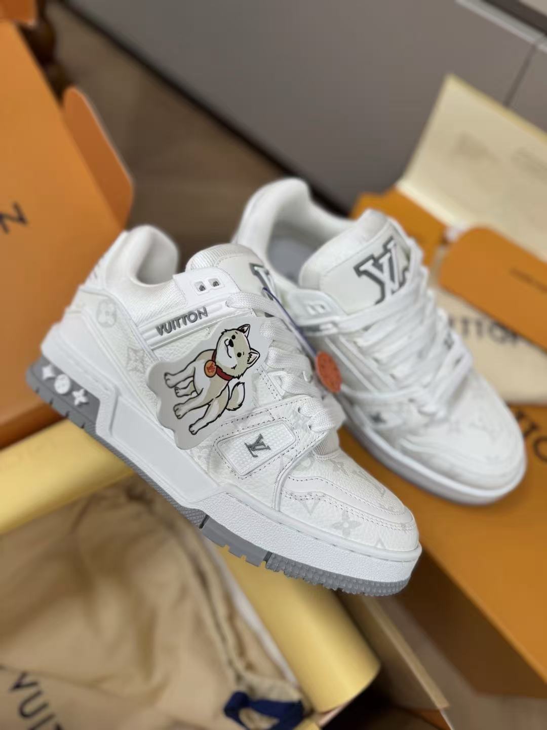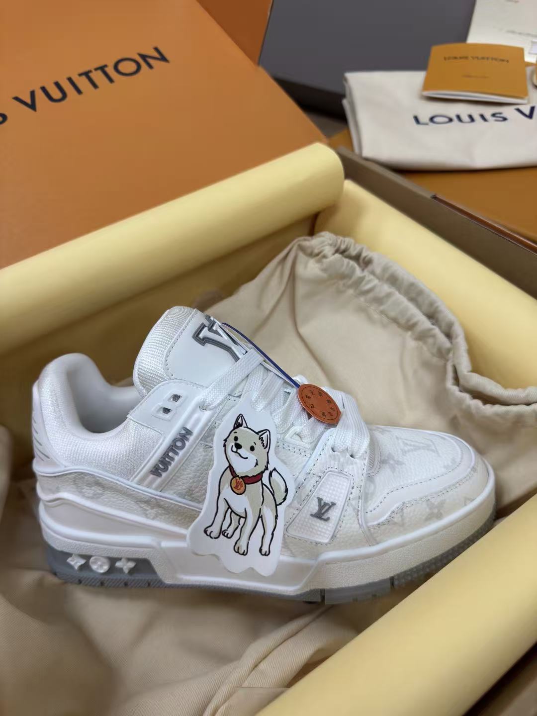 設計核心聚焦於鞋面那枚卡通小狗立體掛件,巧妙地在奢華的 Monogram 老花皮革 中加入了靈動的趣味感。這不僅是一雙運動鞋,更是將首爾當代流行文化與法國百年工藝完美混血的收藏級單品。