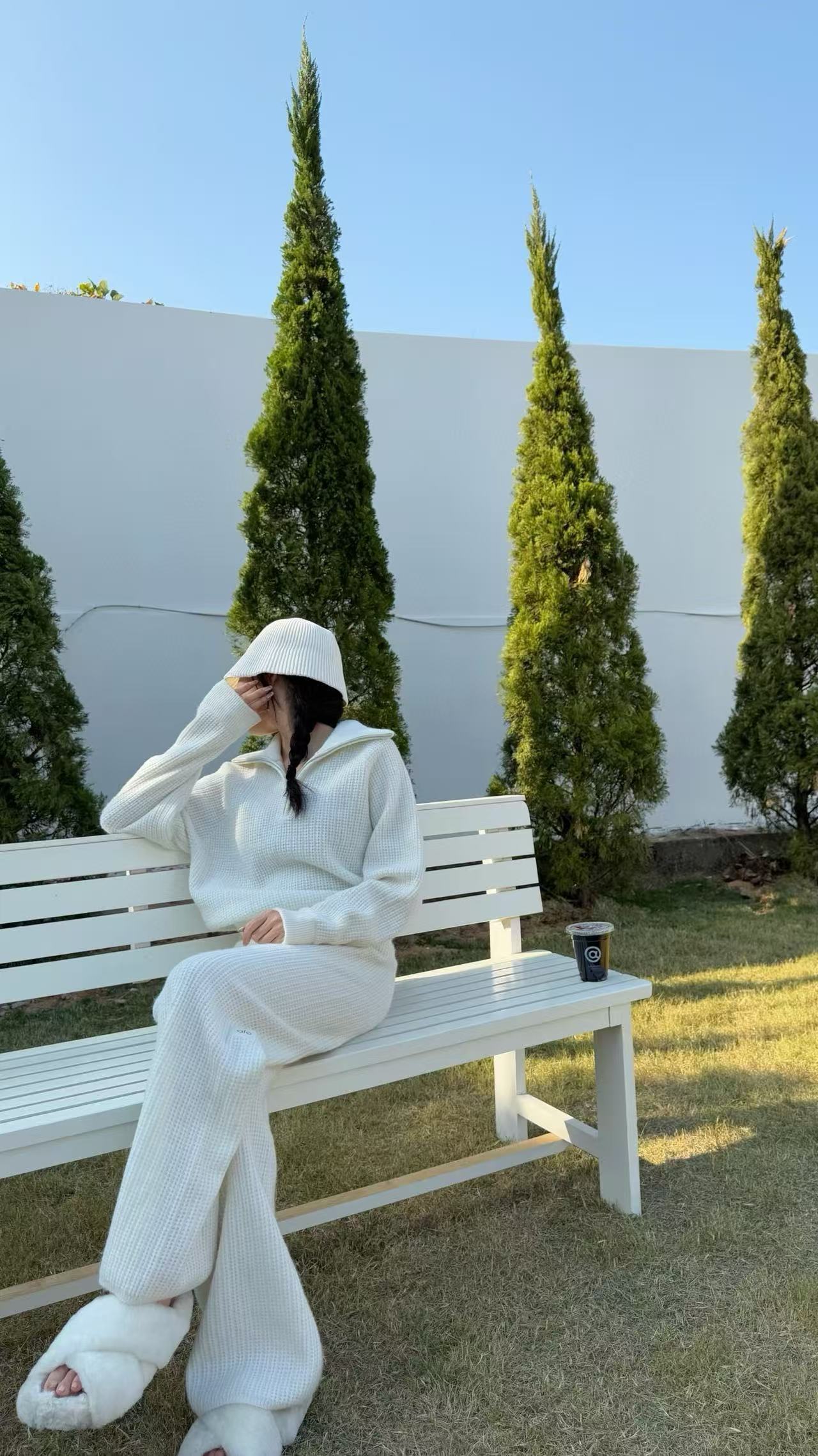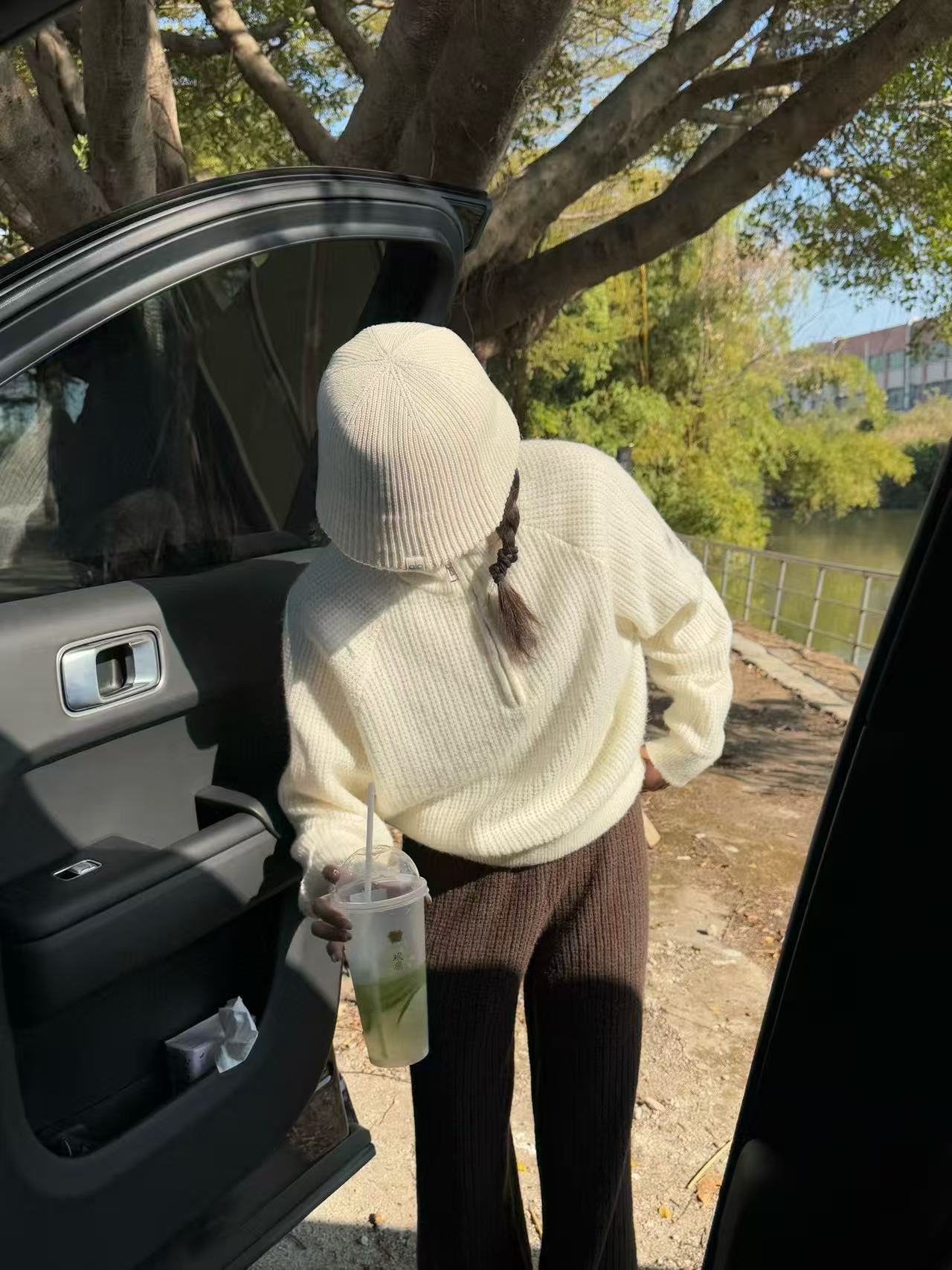 華夫格紋理:立體華夫格設計,細膩有層次,增添老錢風的優雅氣質,同時視覺顯瘦又保暖。
