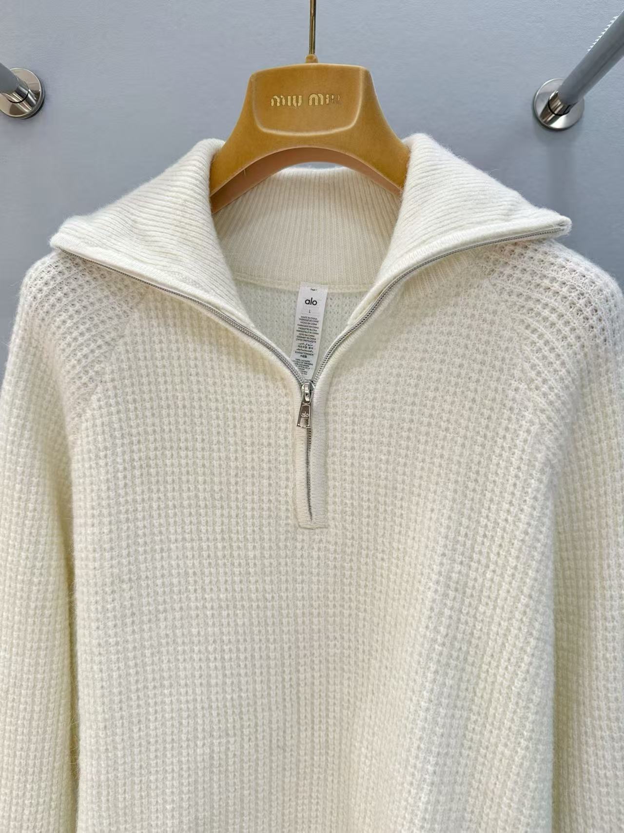 2025早秋 Alo 華夫格羊絨半拉鏈針織衫|網紅愛用,低調奢華必備!