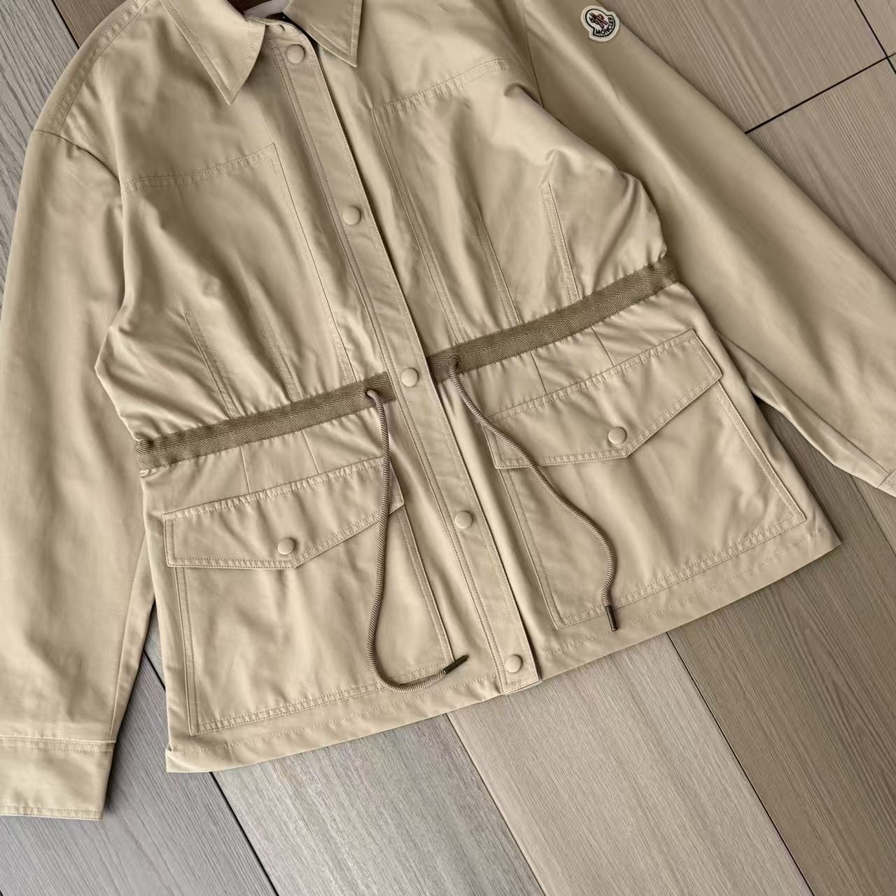 可調節設計:腰部和衣袖都設有抽繩,可以根據你的穿搭需求來調整,讓你看起來更有型。