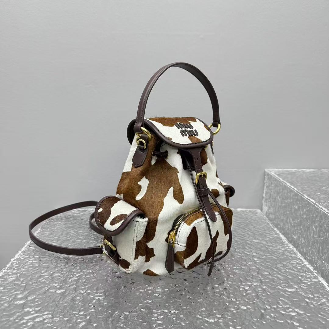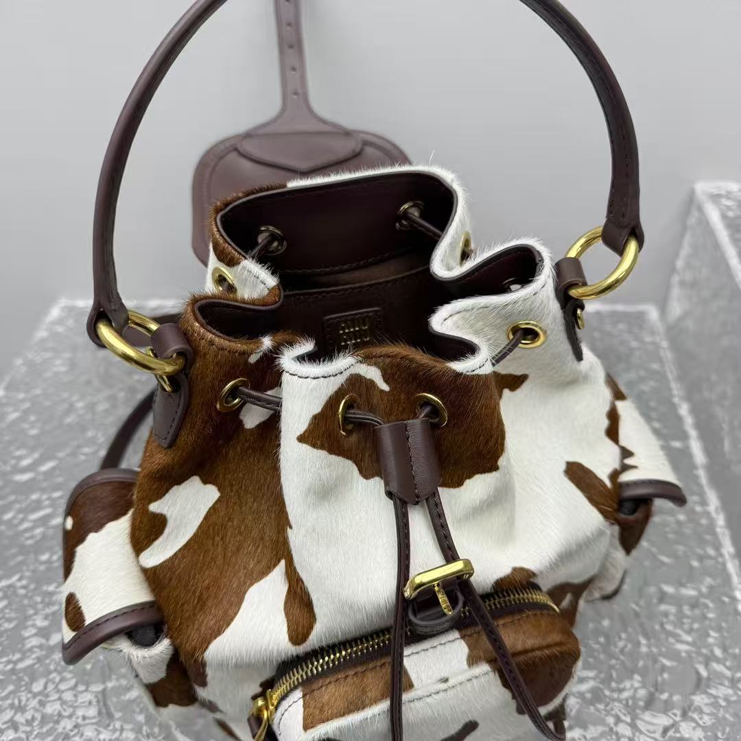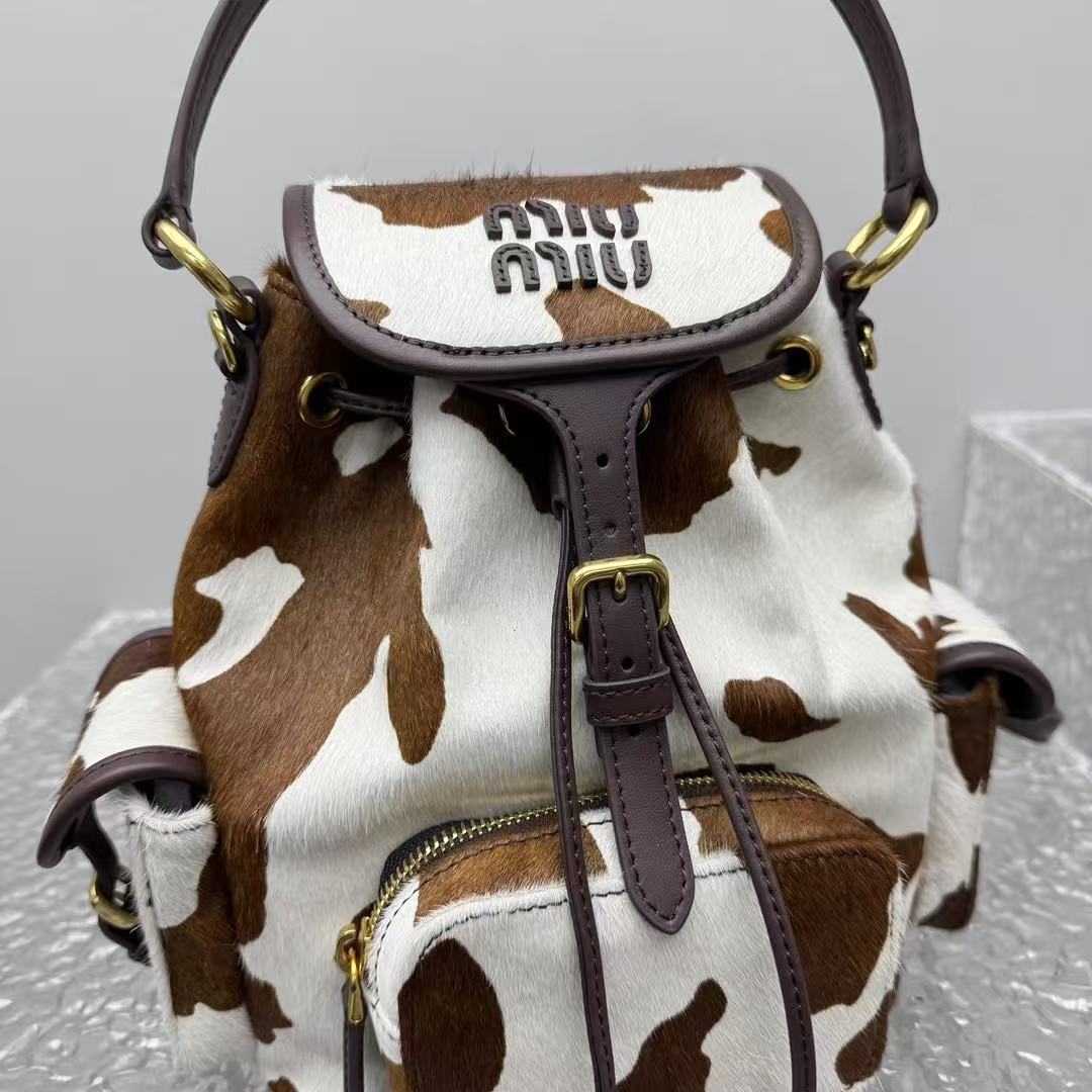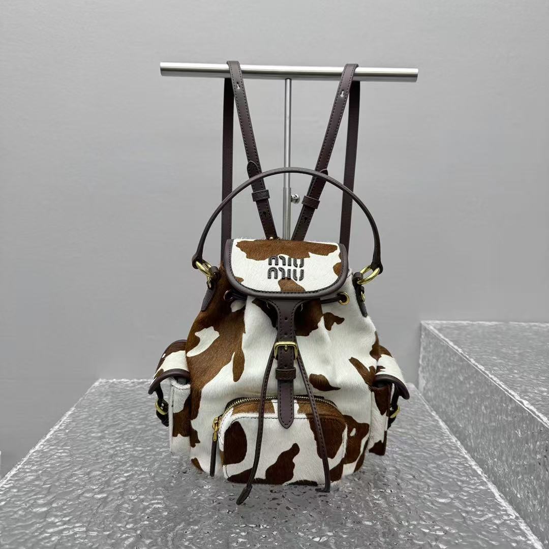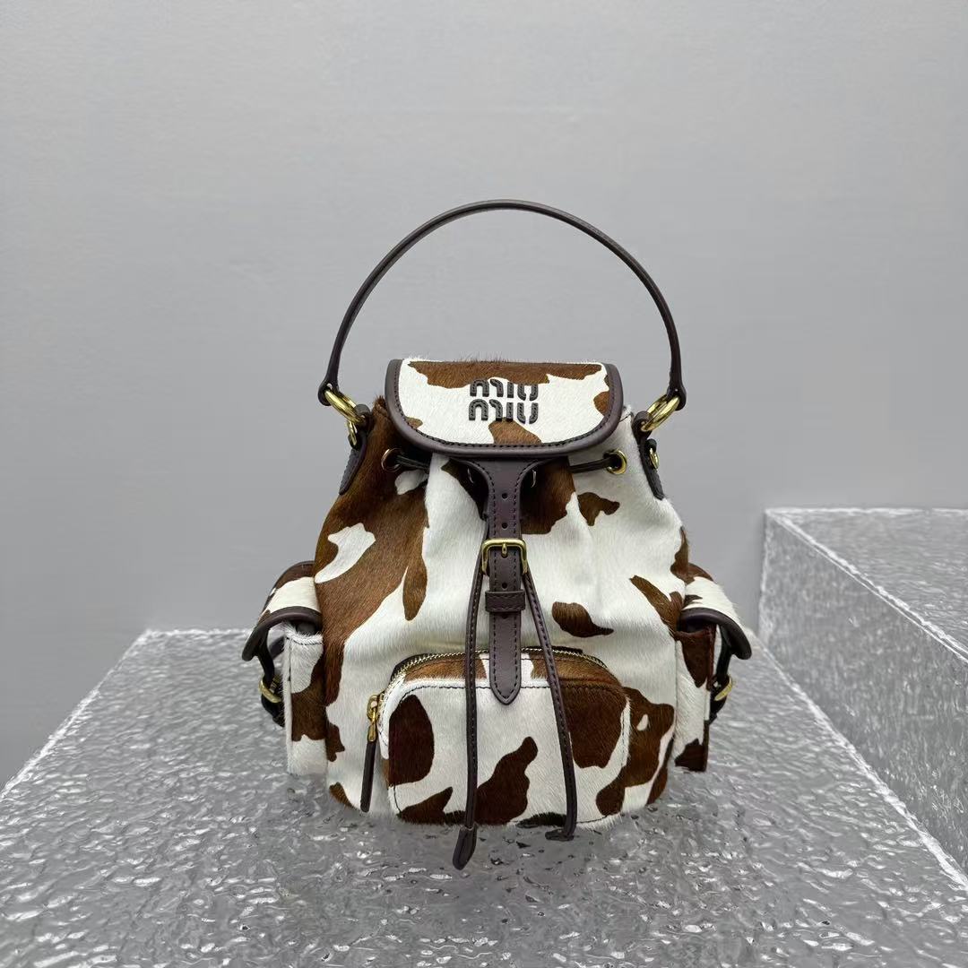 2026早春  Miu家 復古奶牛紋抽繩後背包