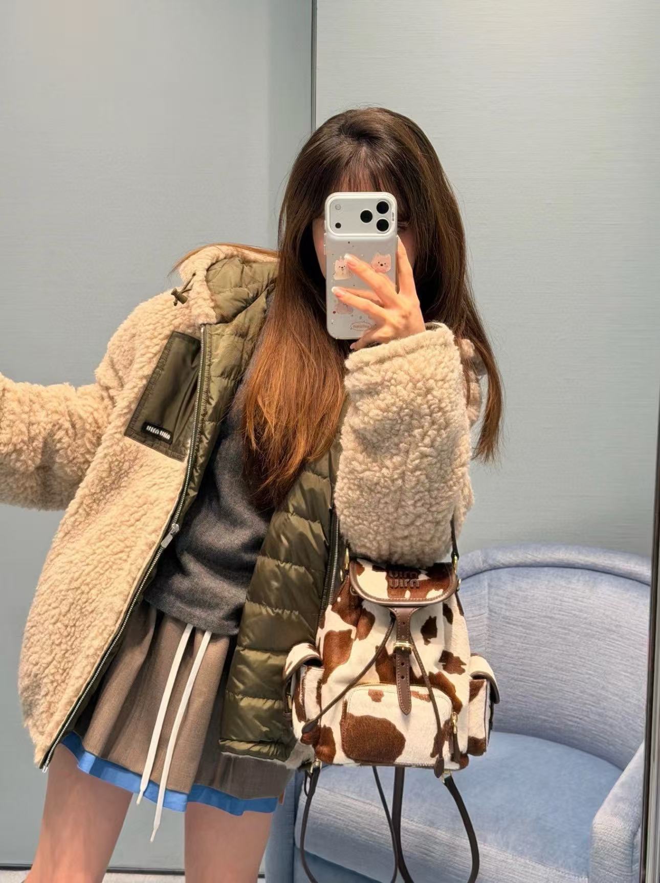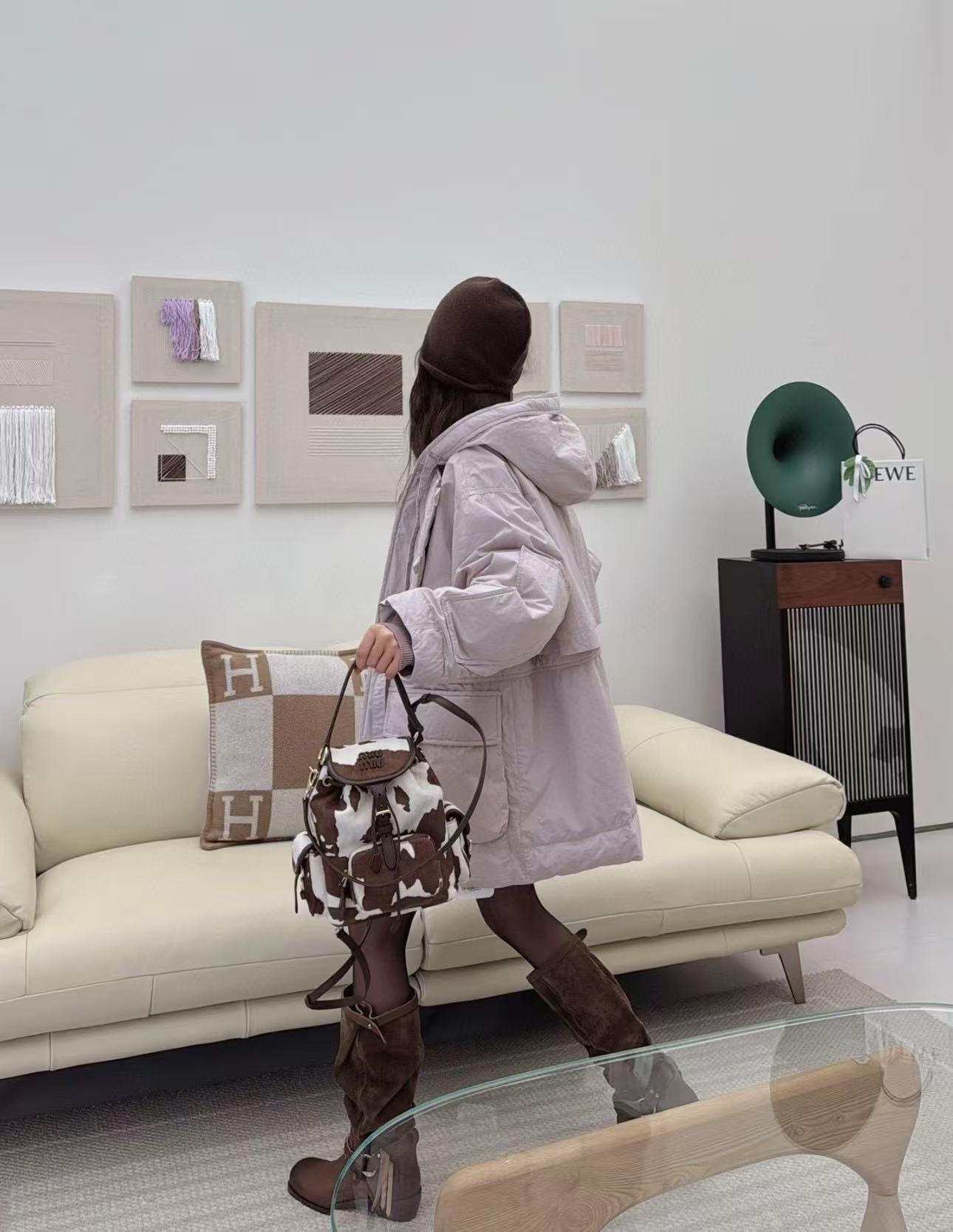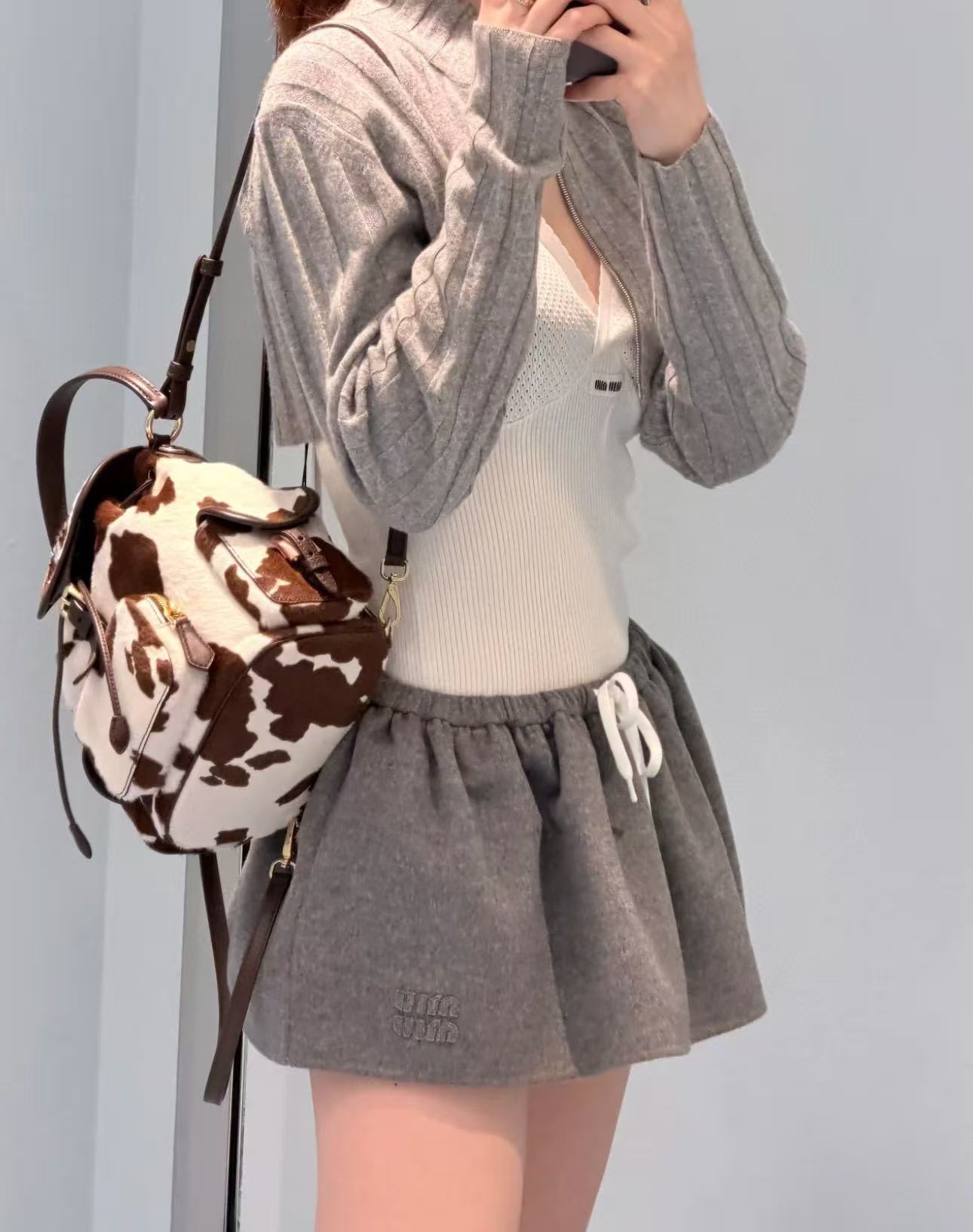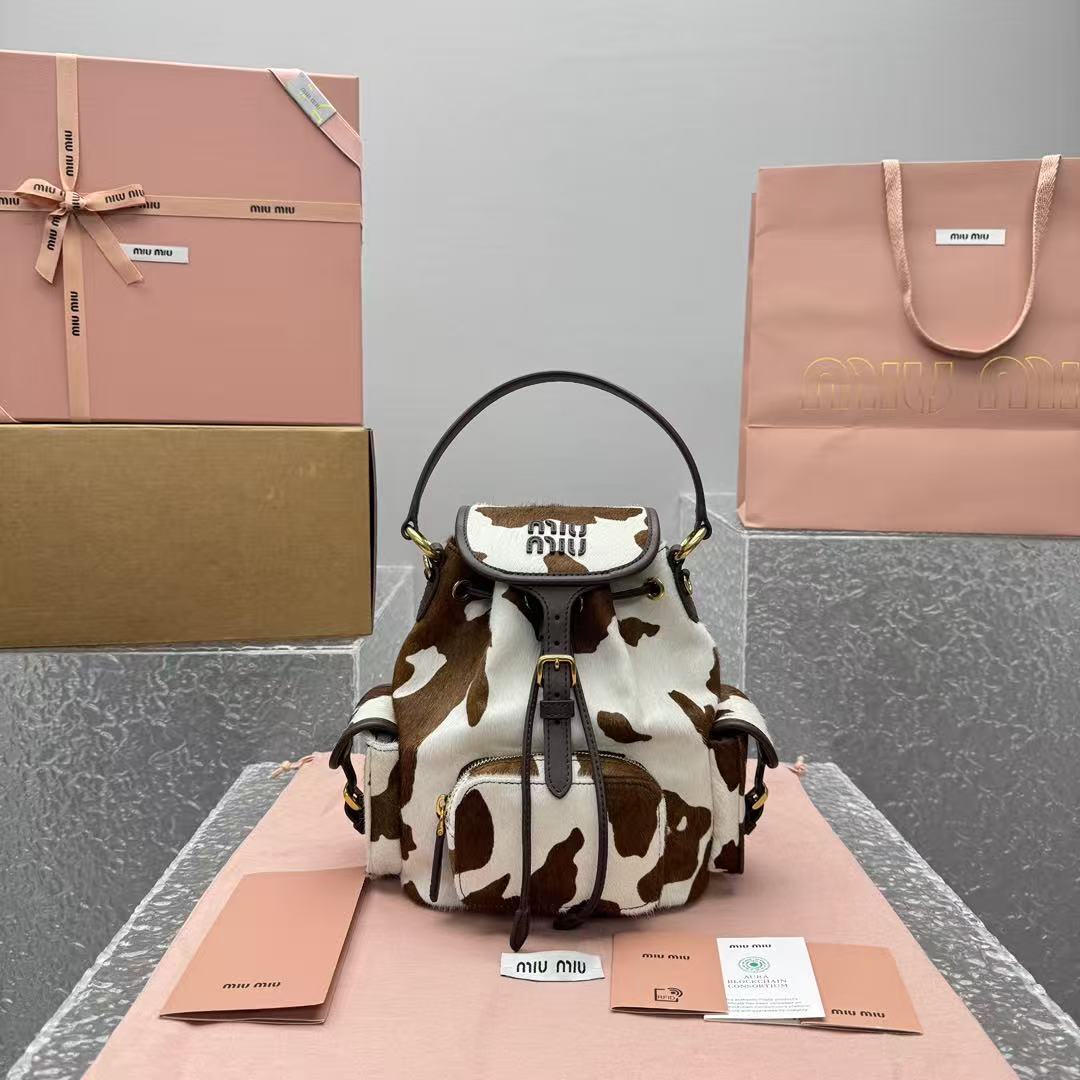2026早春  Miu家 復古奶牛紋抽繩後背包